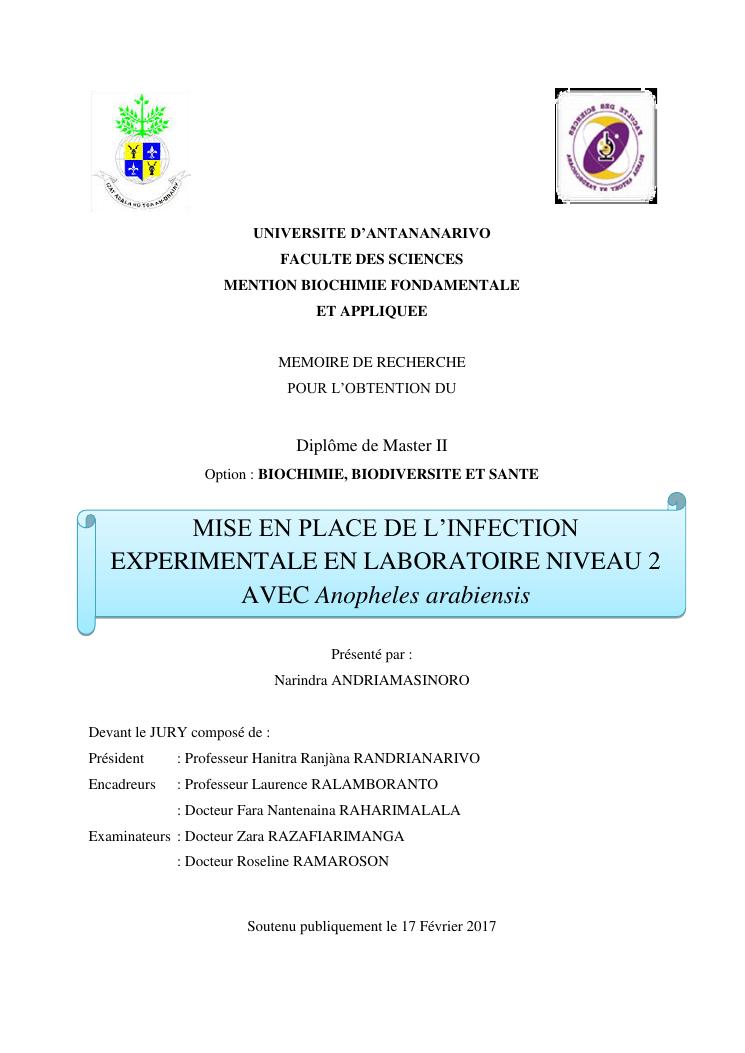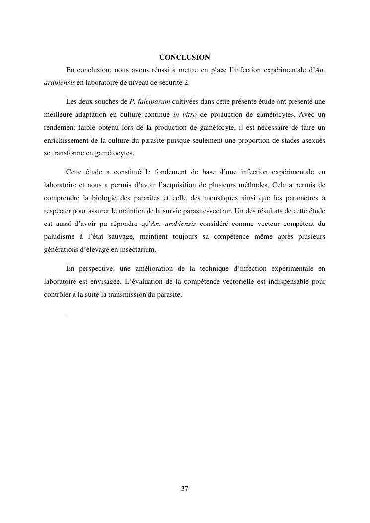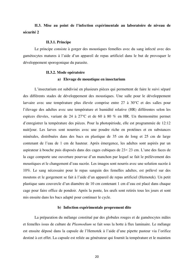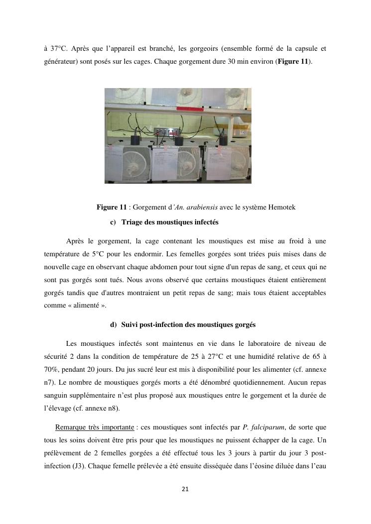 mise en place de l'infection experimentale en laboratoire niveau 2 avec anopheles arabiensis