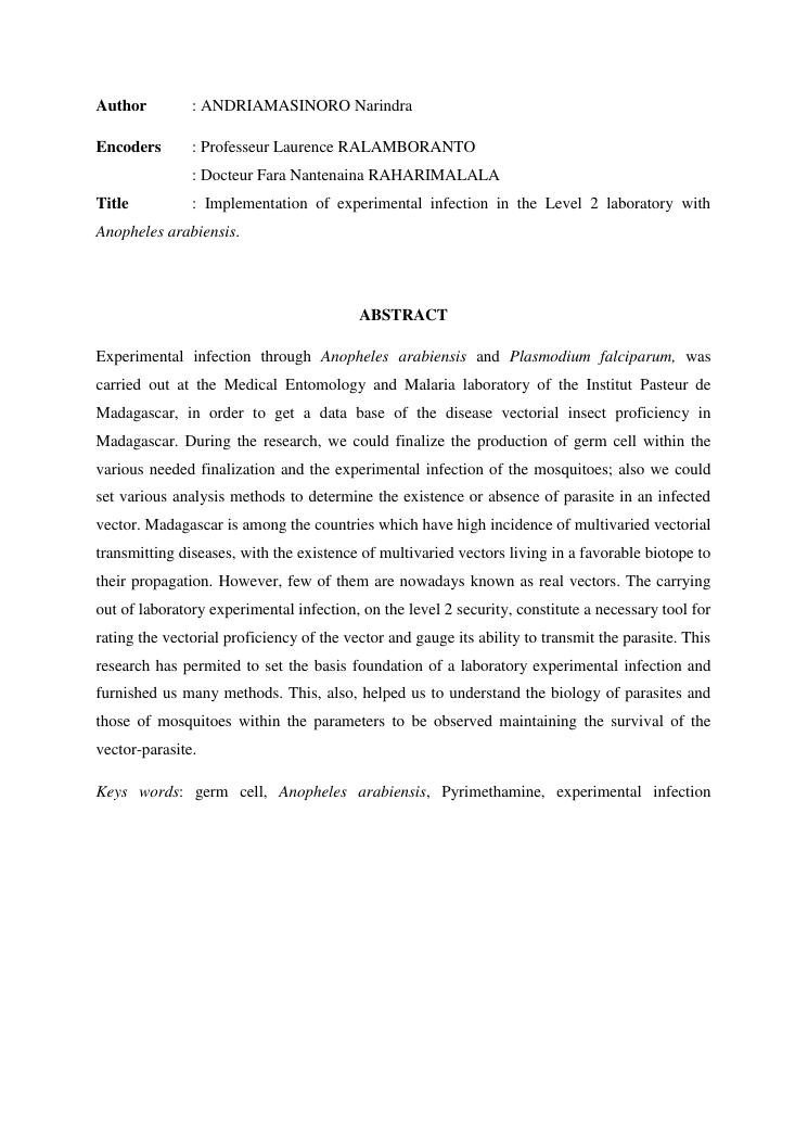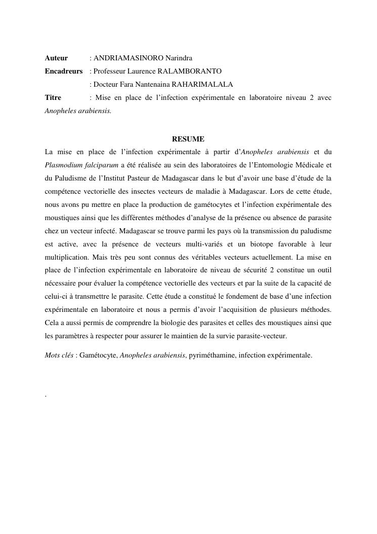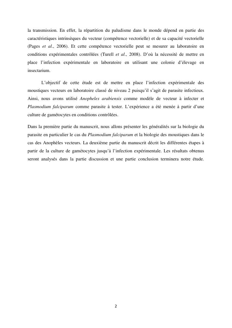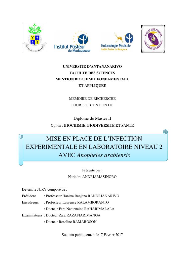 mise en place de l'infection experimentale en laboratoire niveau 2 avec anopheles arabiensis