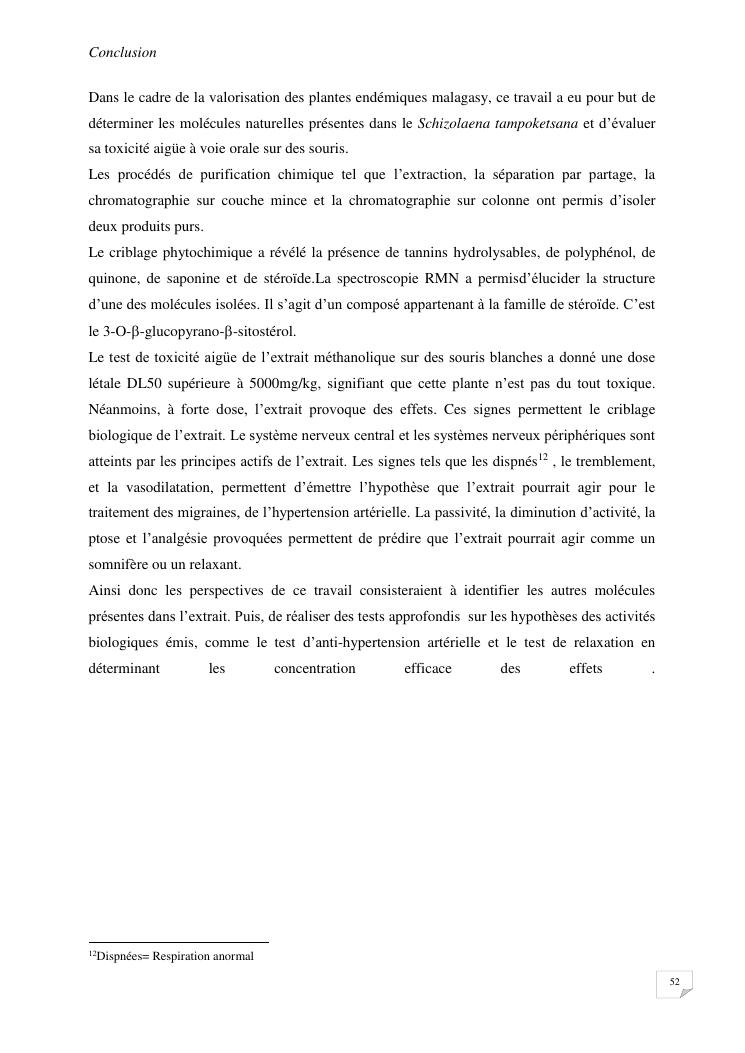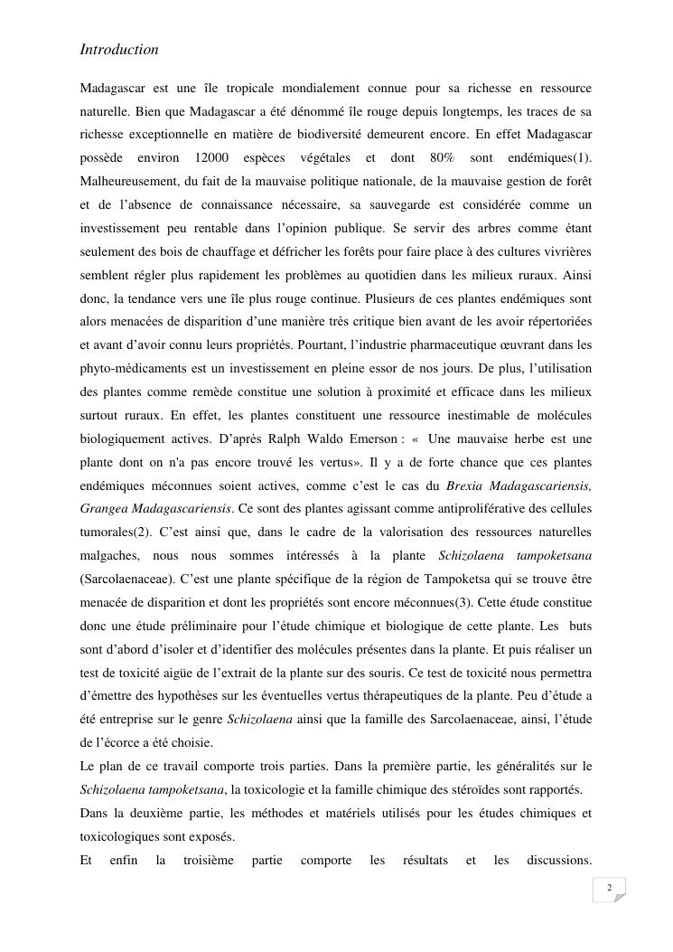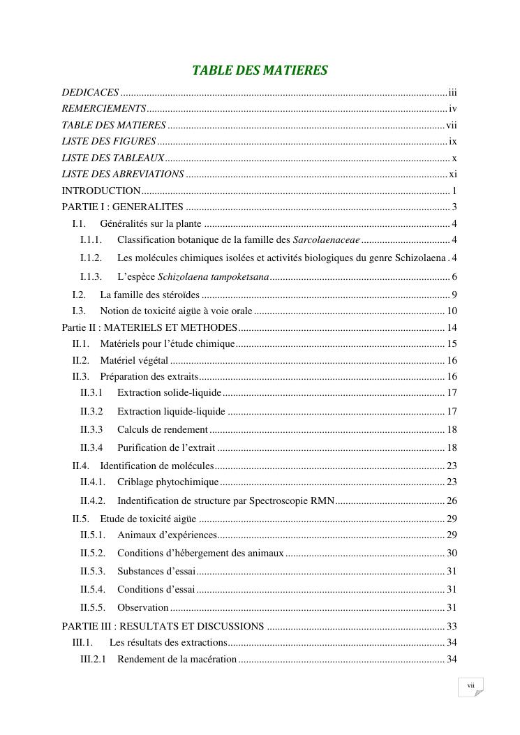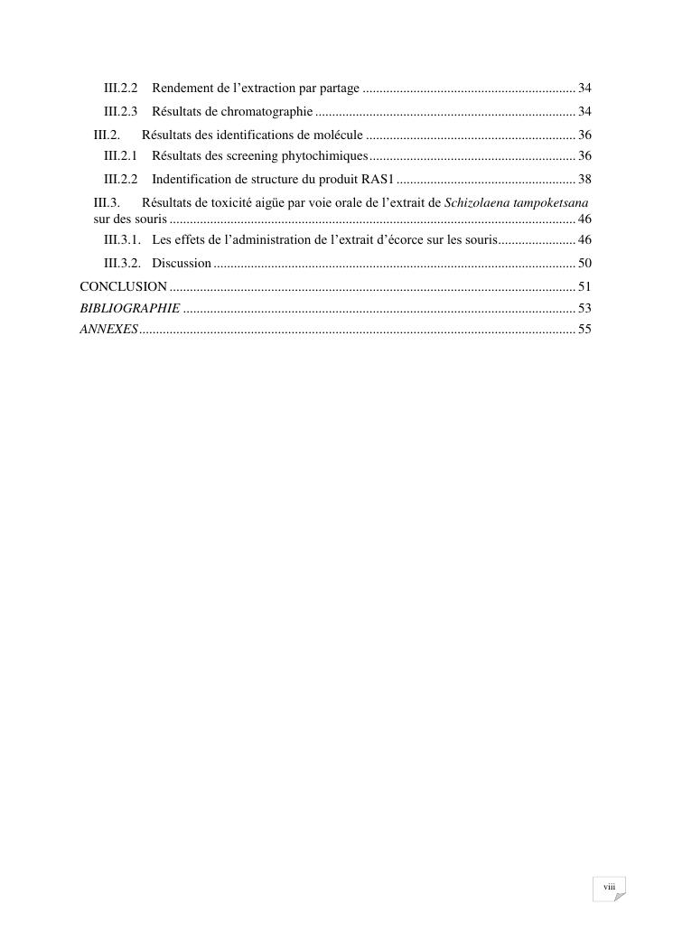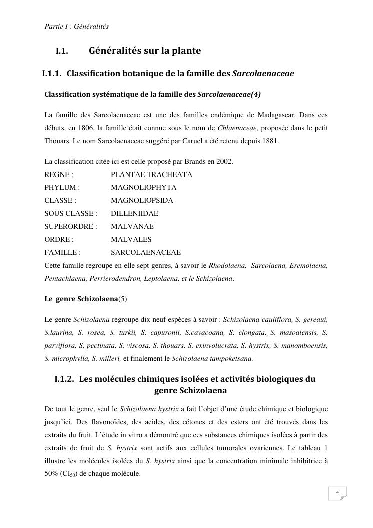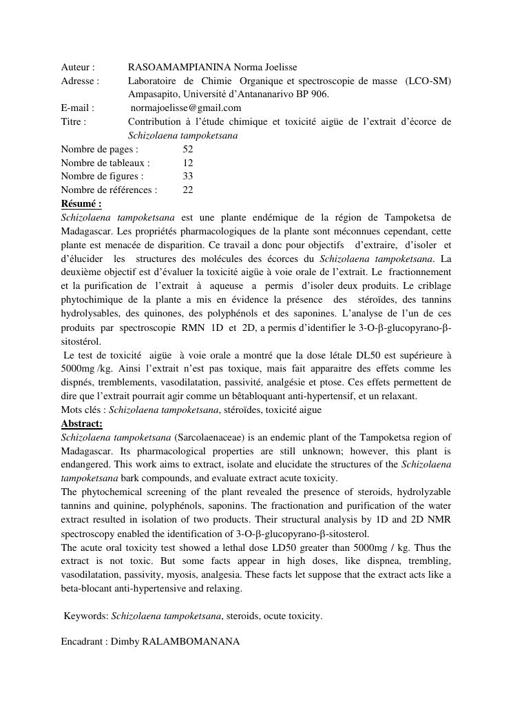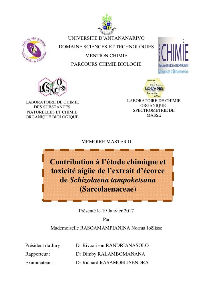 contribution à l'étude chimique et toxicité aigüe de l'extrait d'écorce de schizolaena tampoketsana (sarcolaenaceae)