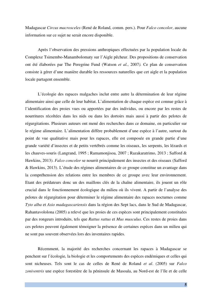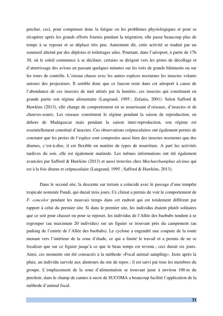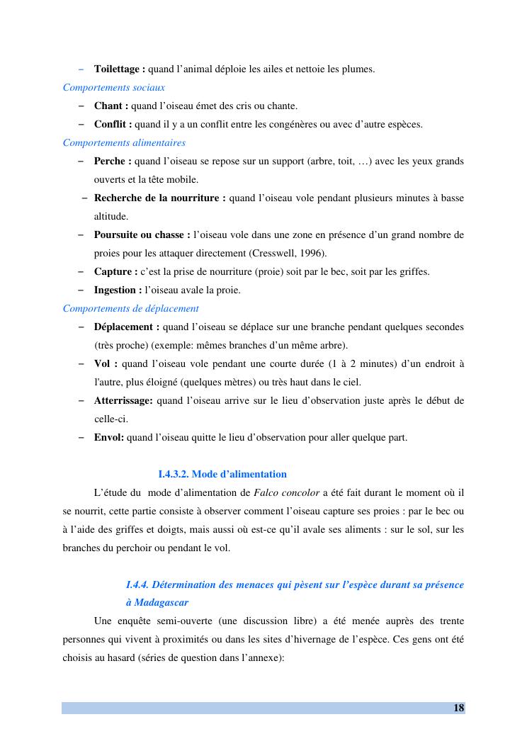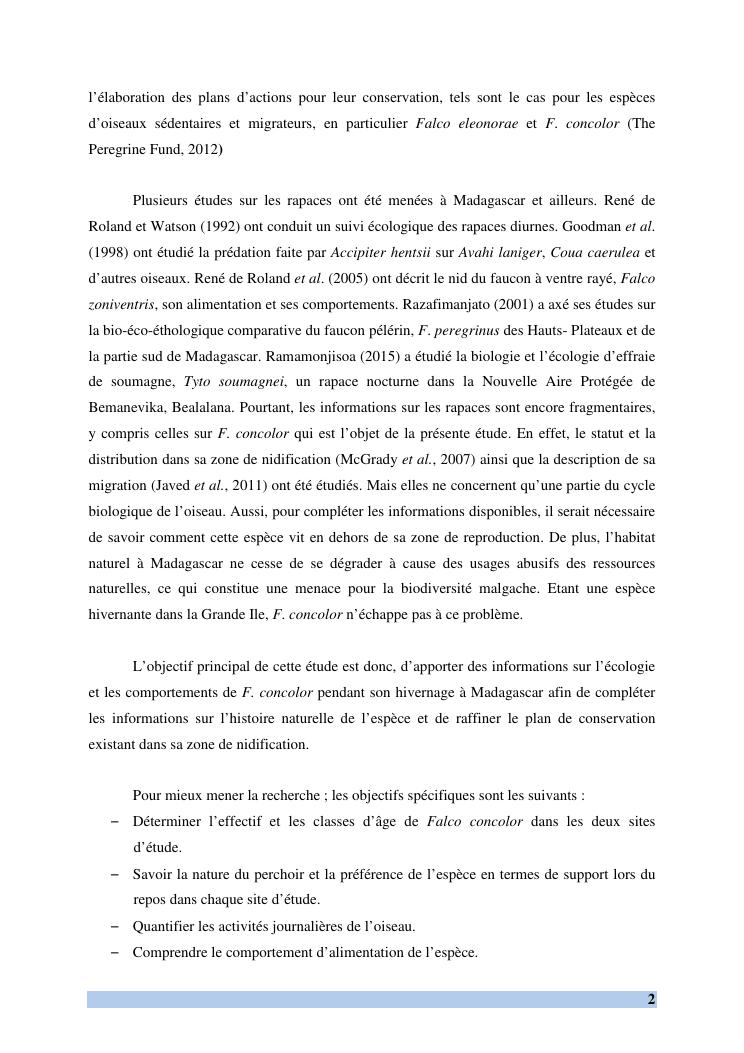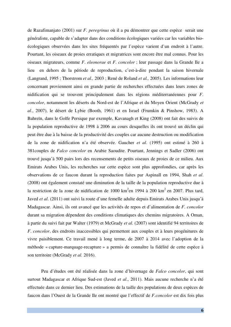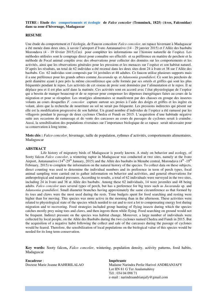 etude des comportements et ecologie de falco concolor (temminck, 1825) (aves, falconidae) dans sa zone d'hivernage, madagascar