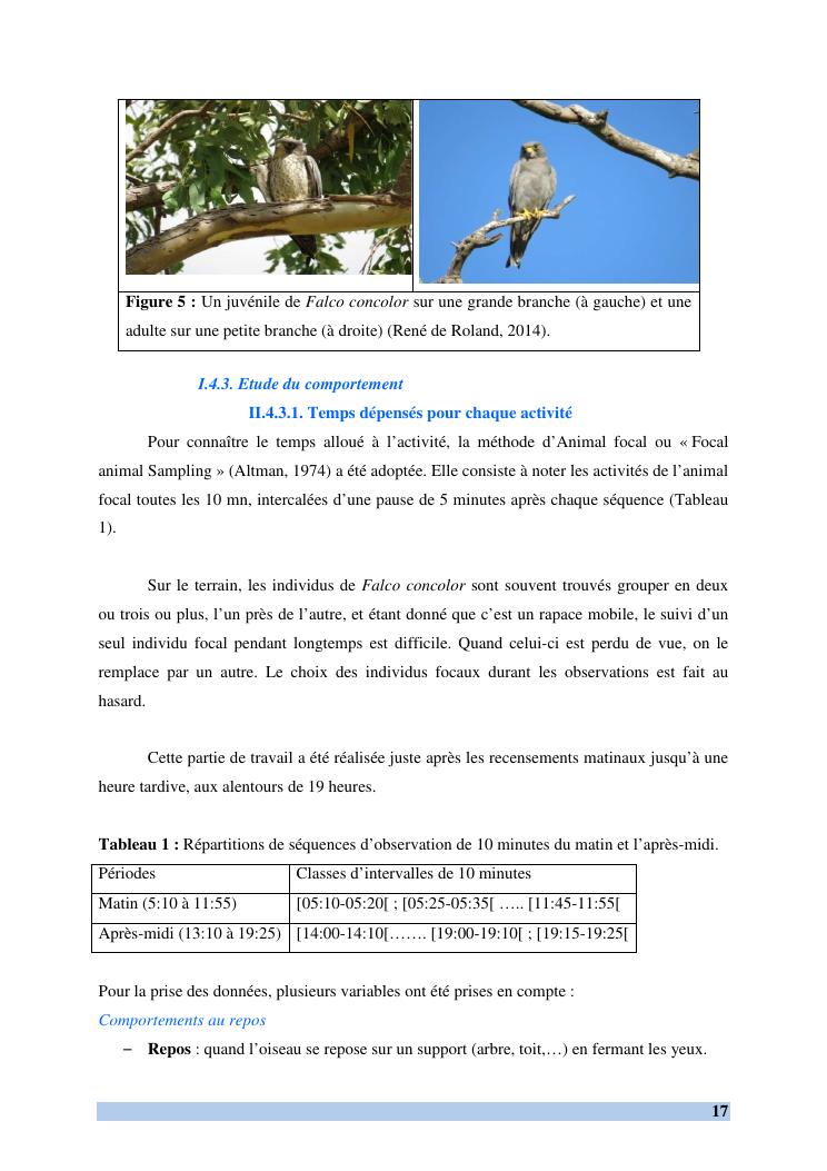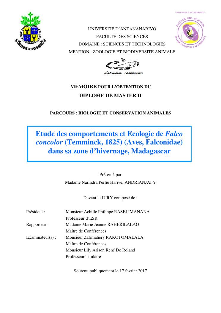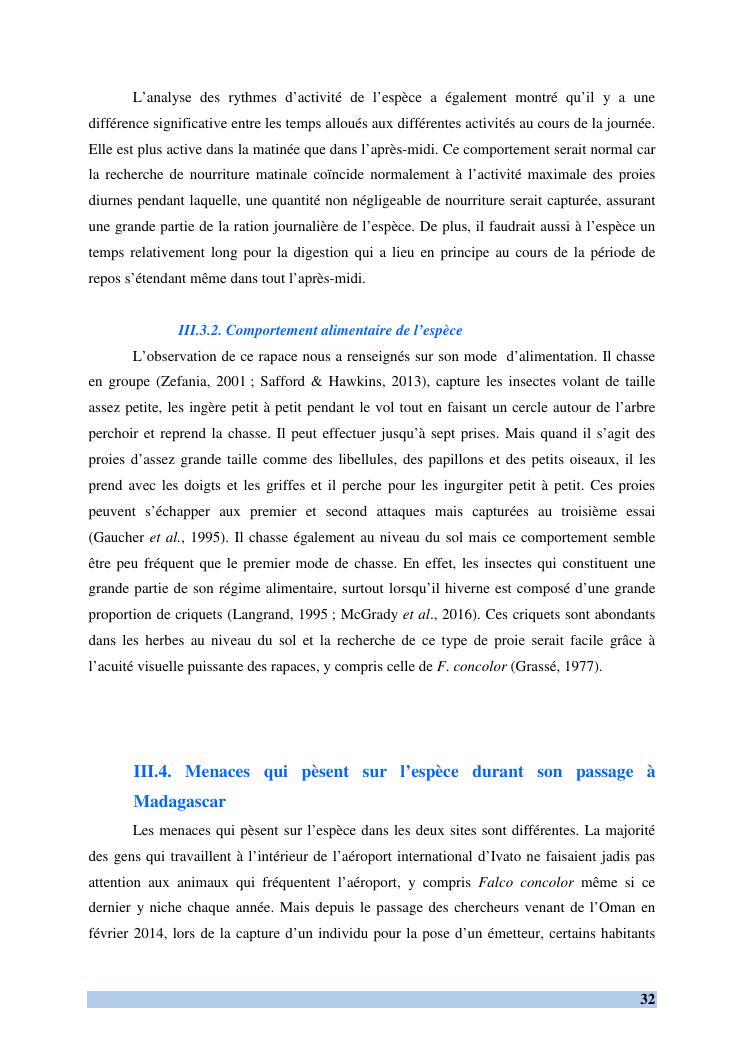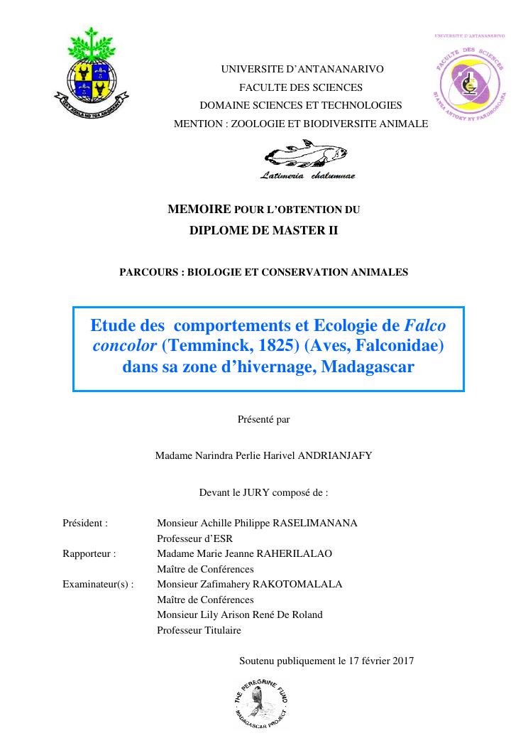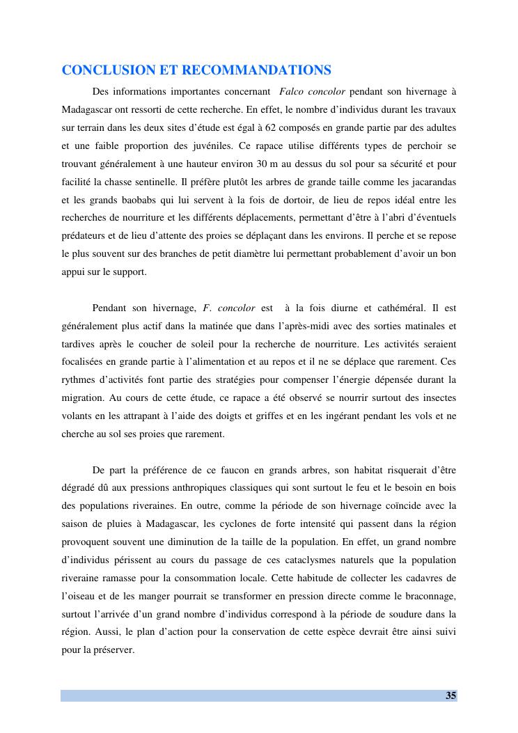 etude des comportements et ecologie de falco concolor (temminck, 1825) (aves, falconidae) dans sa zone d'hivernage, madagascar