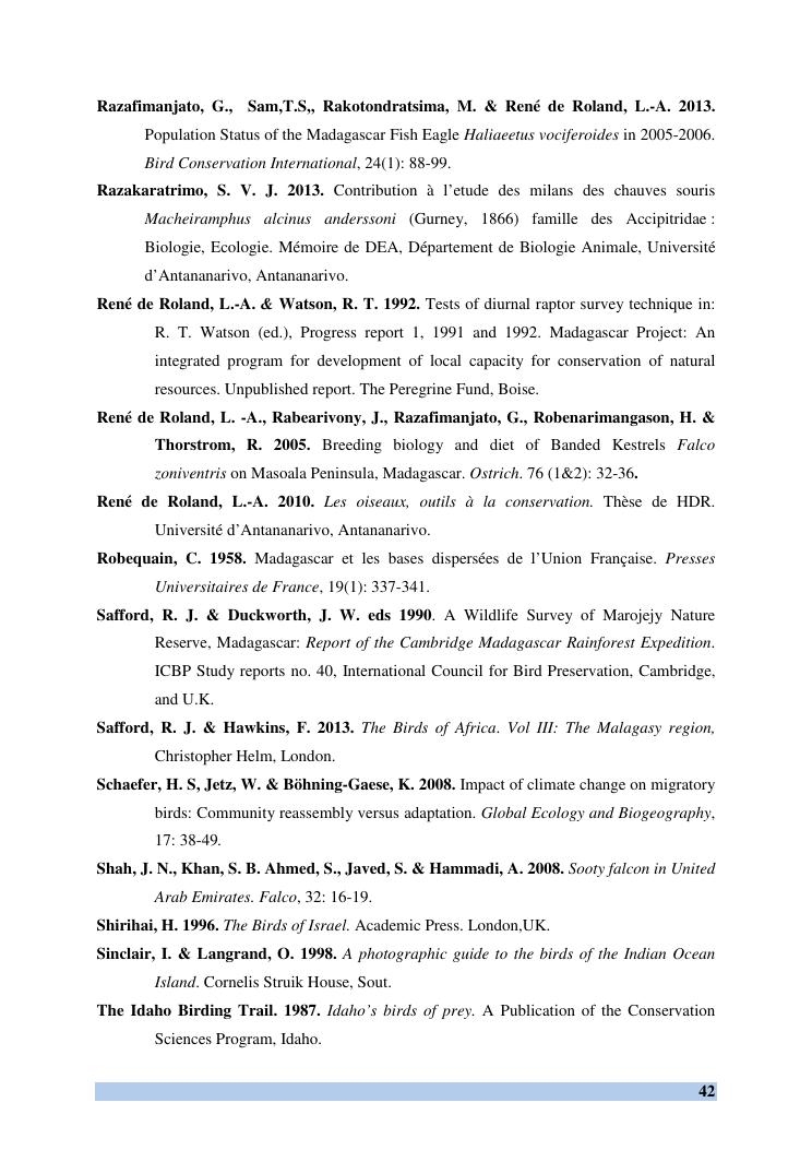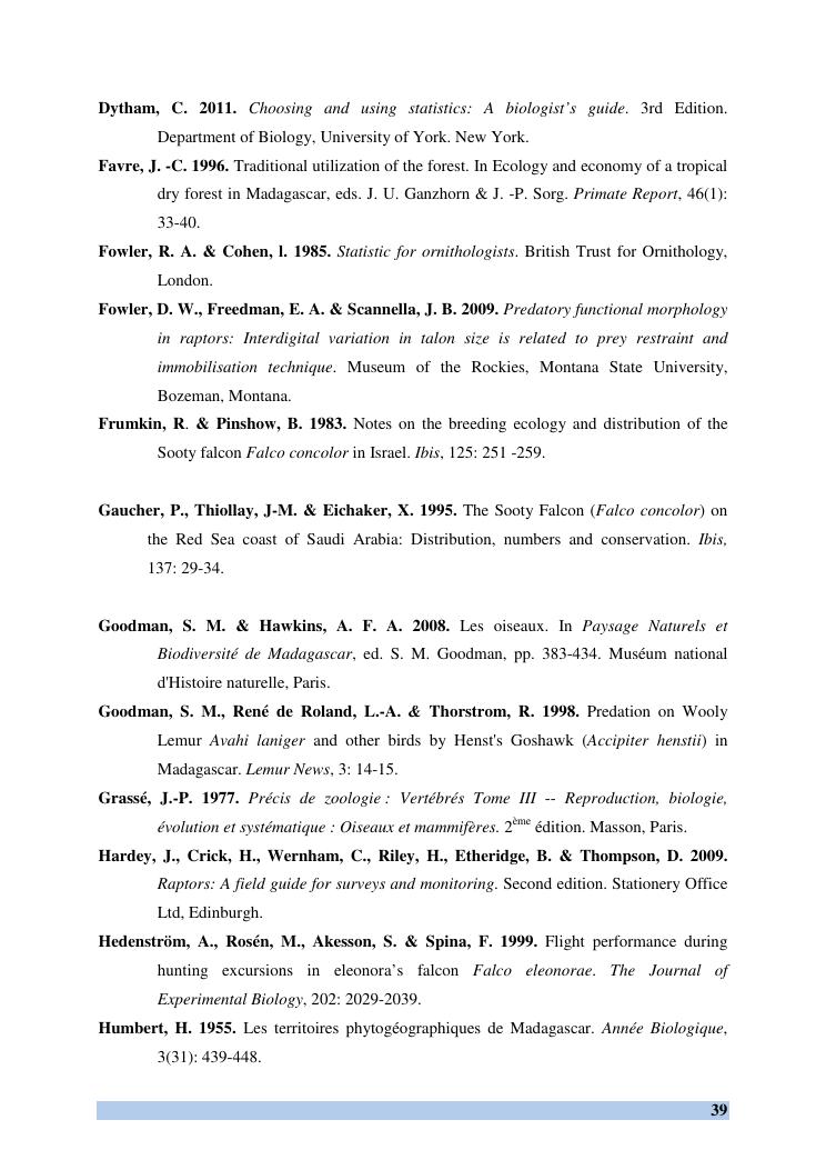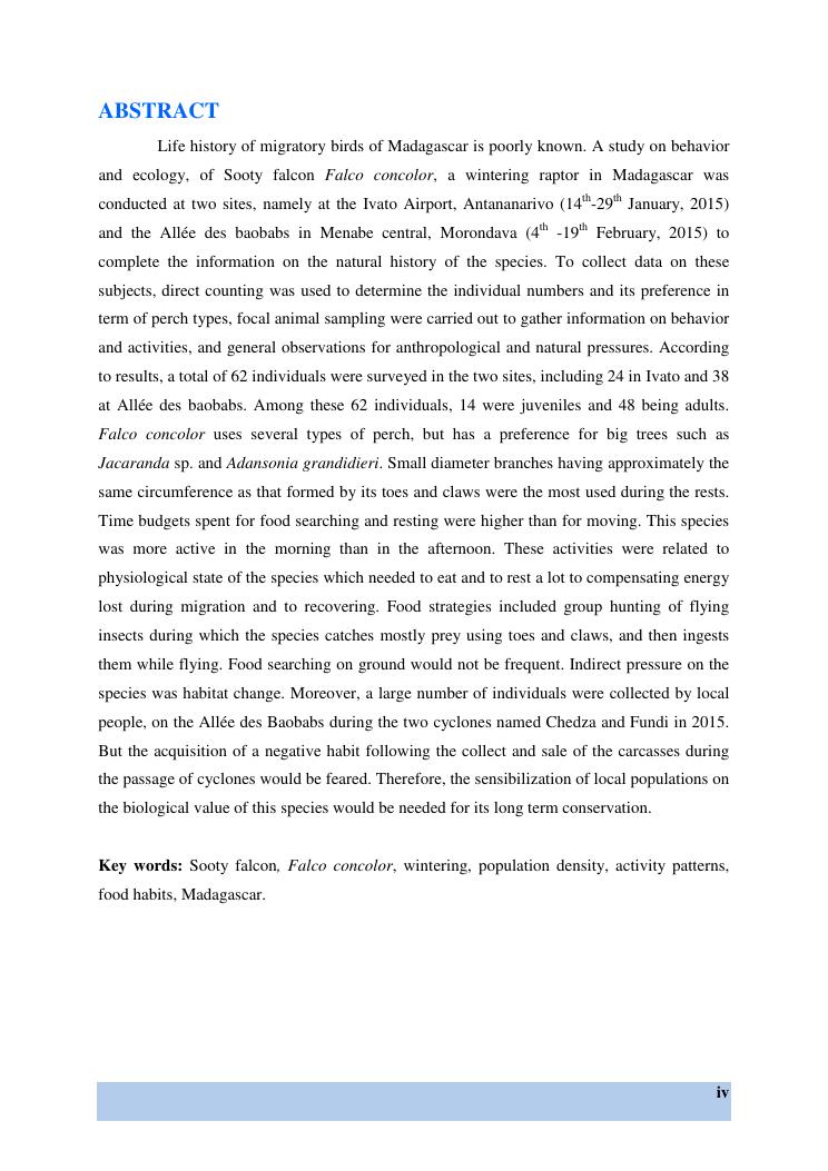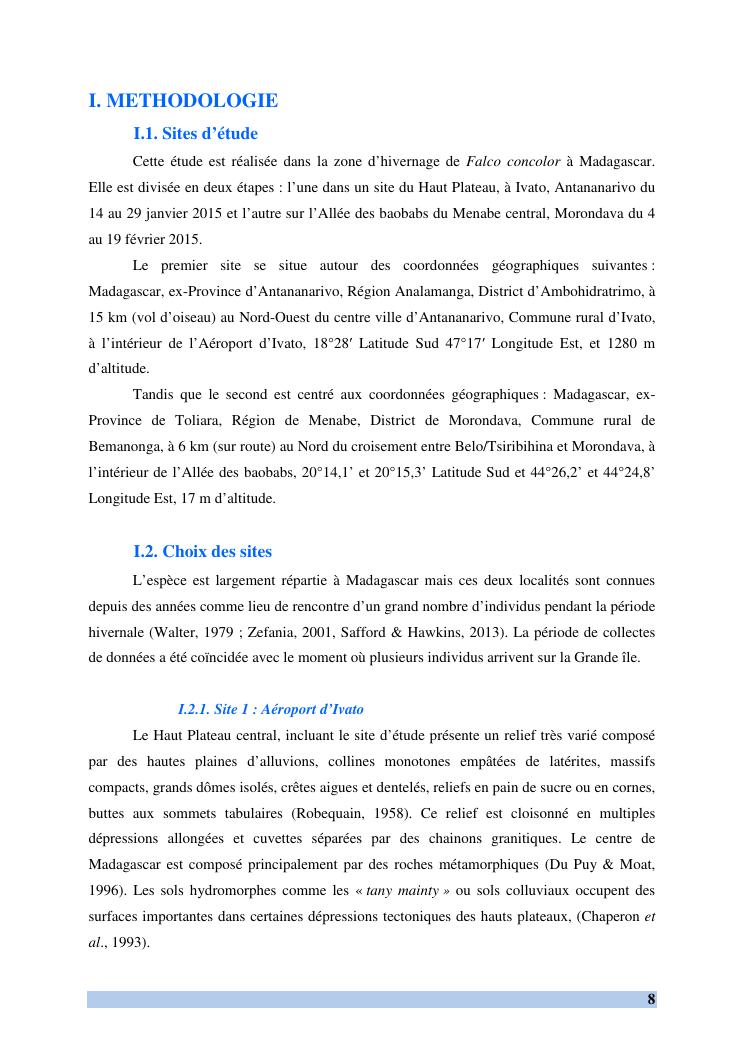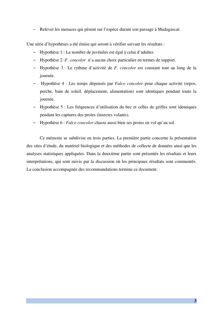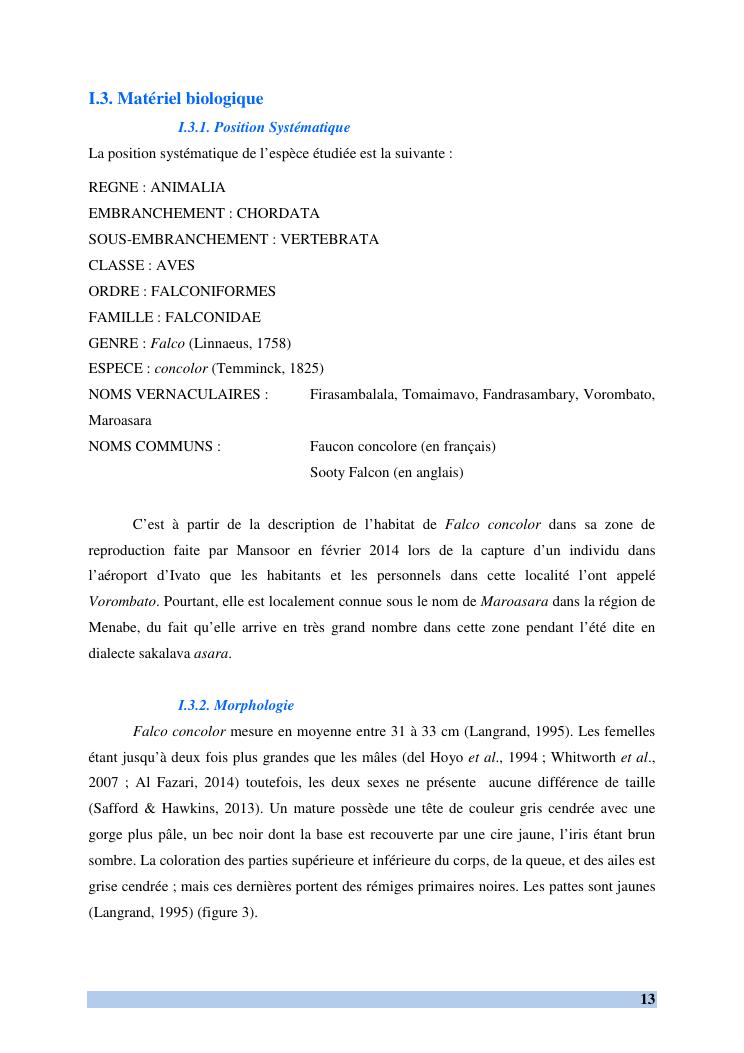 etude des comportements et ecologie de falco concolor (temminck, 1825) (aves, falconidae) dans sa zone d'hivernage, madagascar