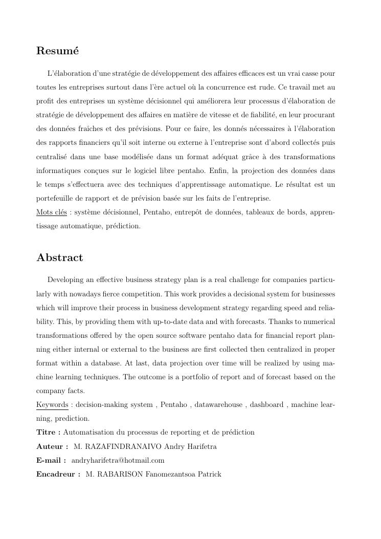 automatisation du processus de reporting et de prédiction