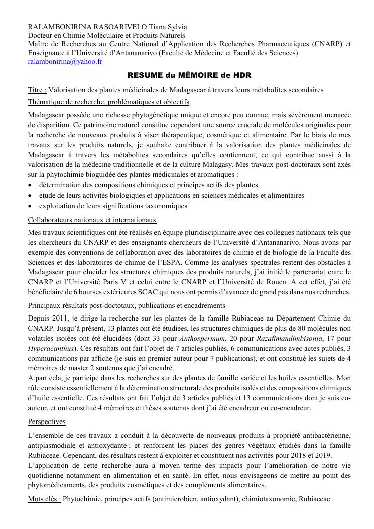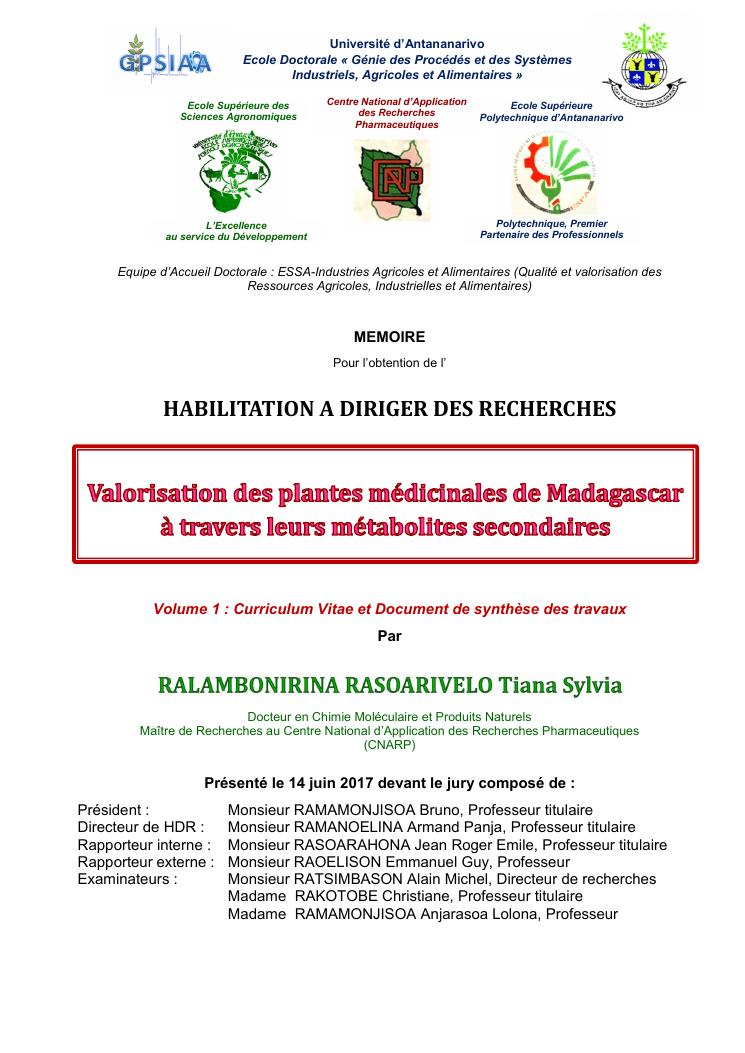 valorisation des plantes médicinales de madagascar à travers leurs métabolites secondaires