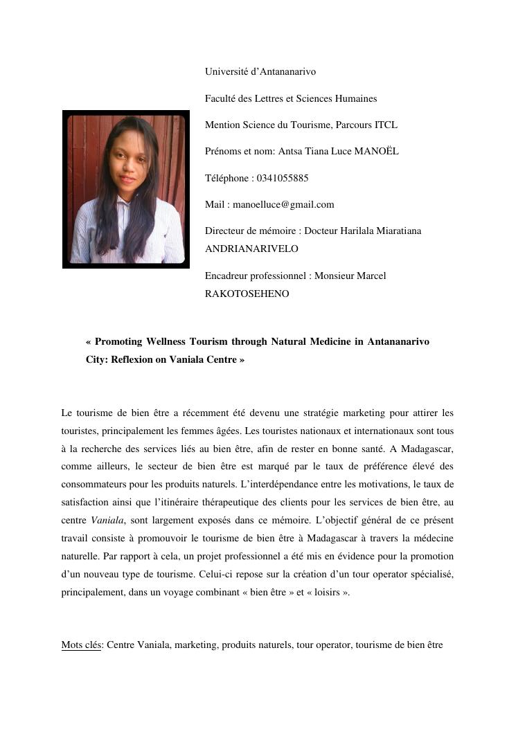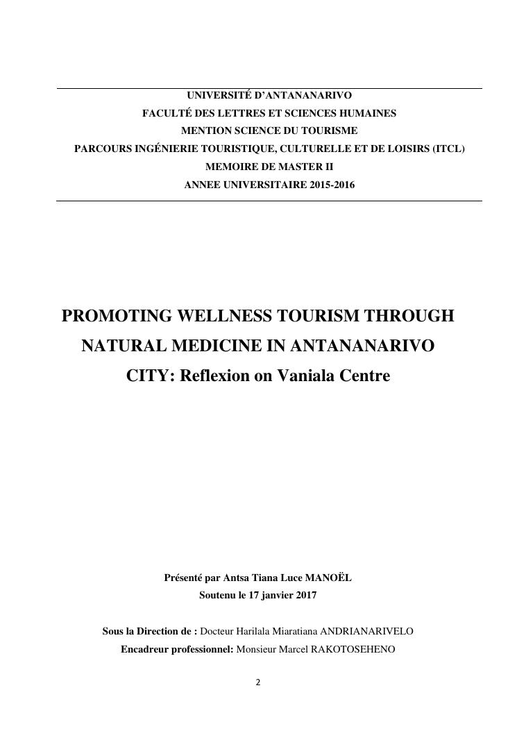 promoting wellness tourism through natural medicine in antananarivo city: reflexion on vaniala centre