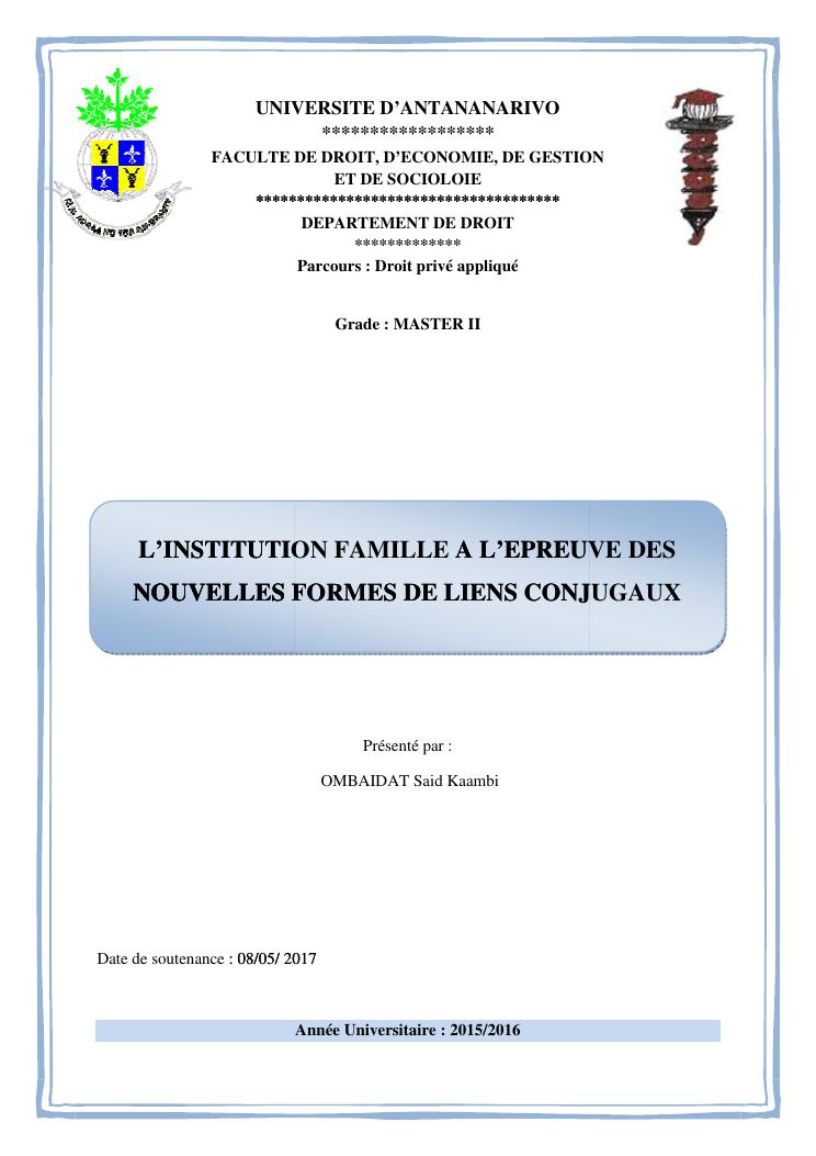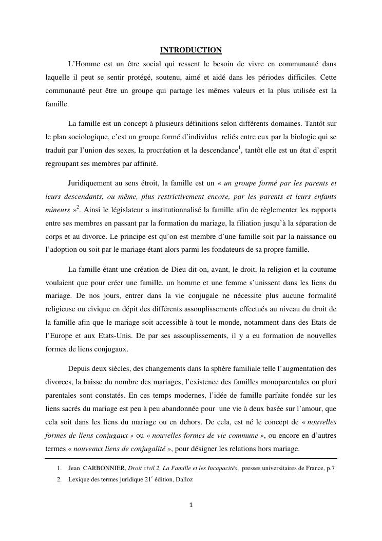 l'institution famille a l'epreuve des nouvelles formes de liens conjugaux
