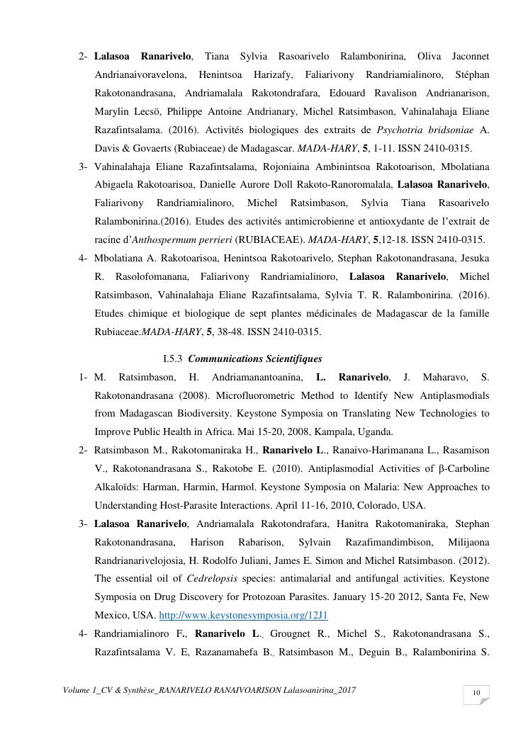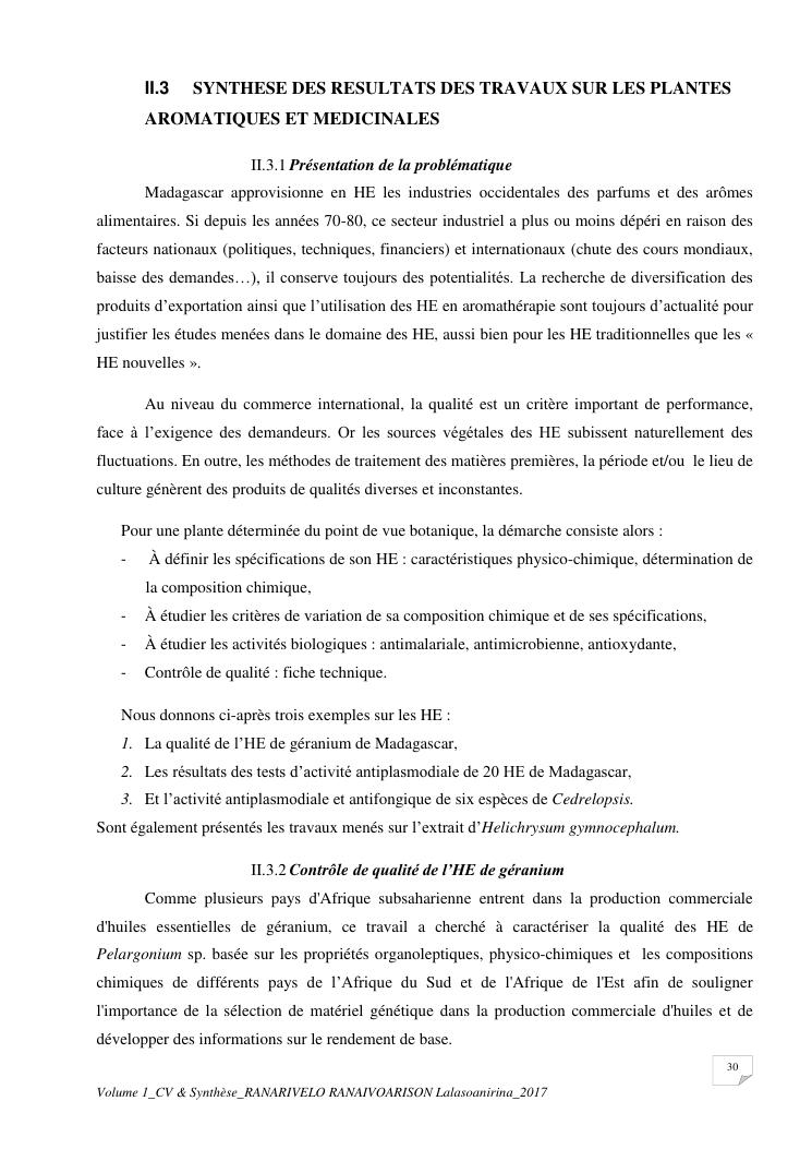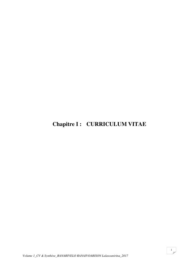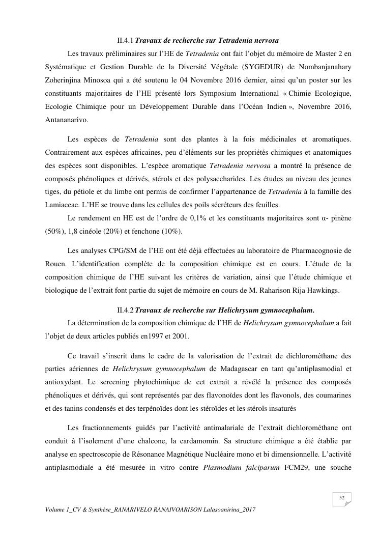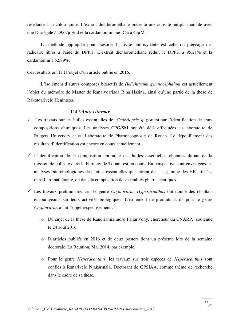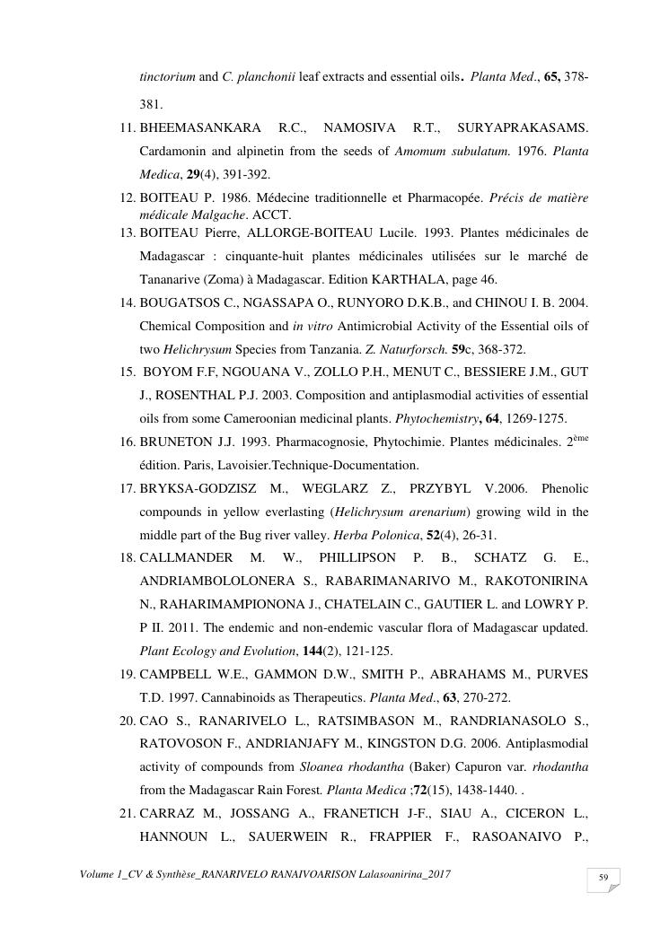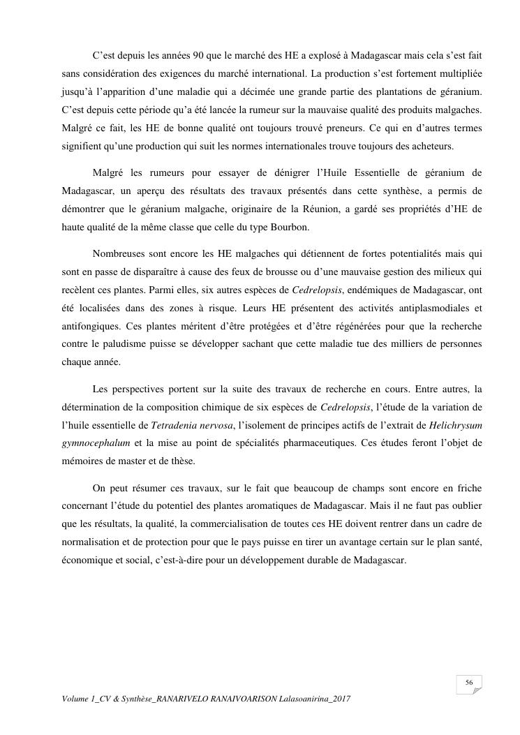 etudes chimiques et biologiques de plantes médicinales de madagascar à intérêt économique. volume 1 : curriculum vitae et document de synthese