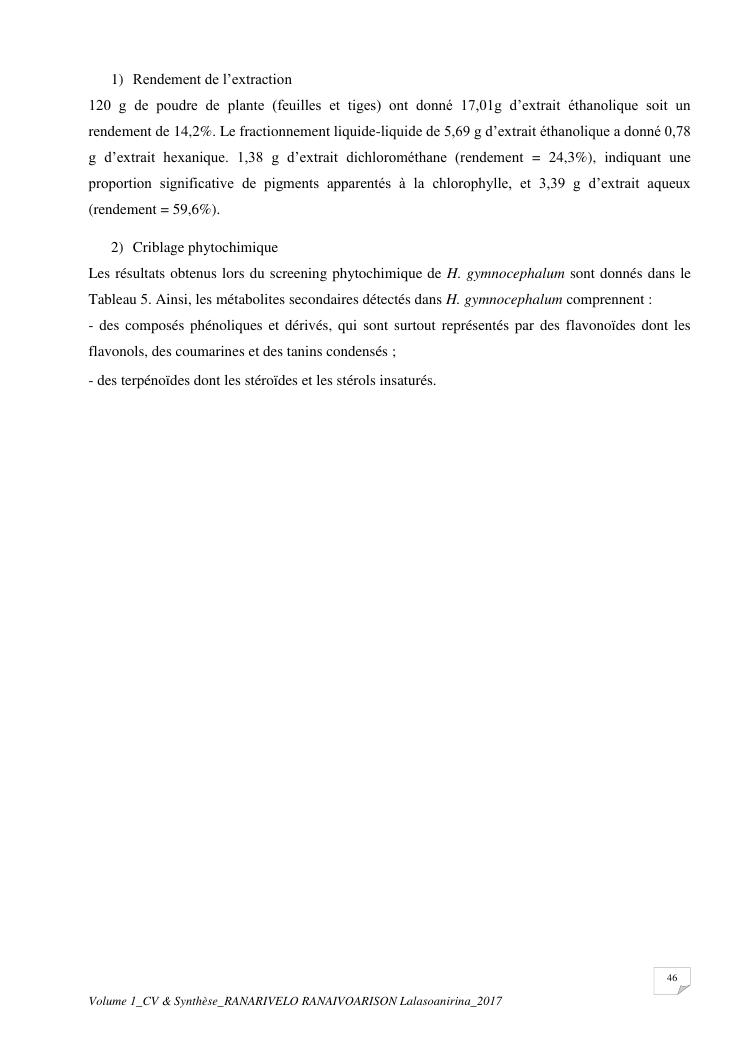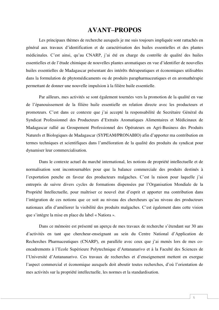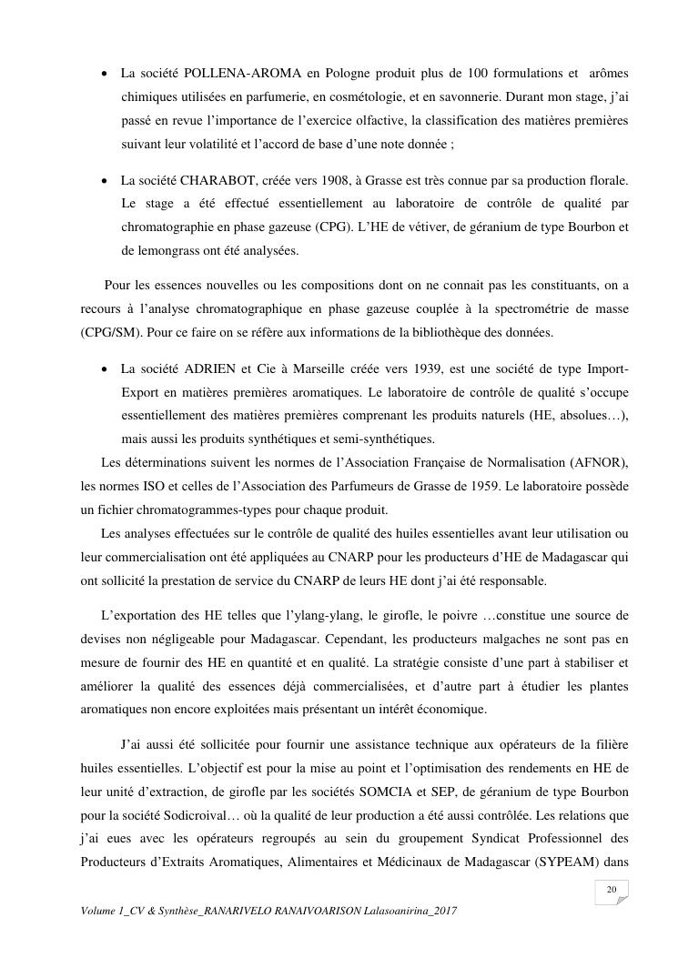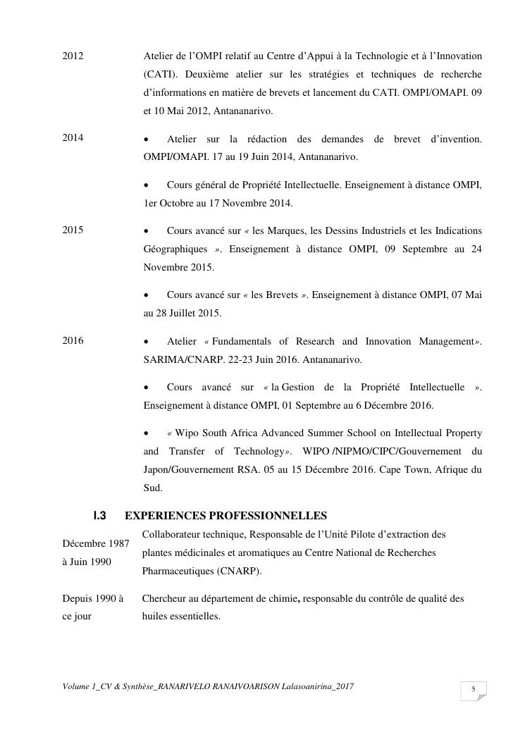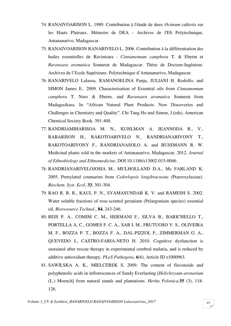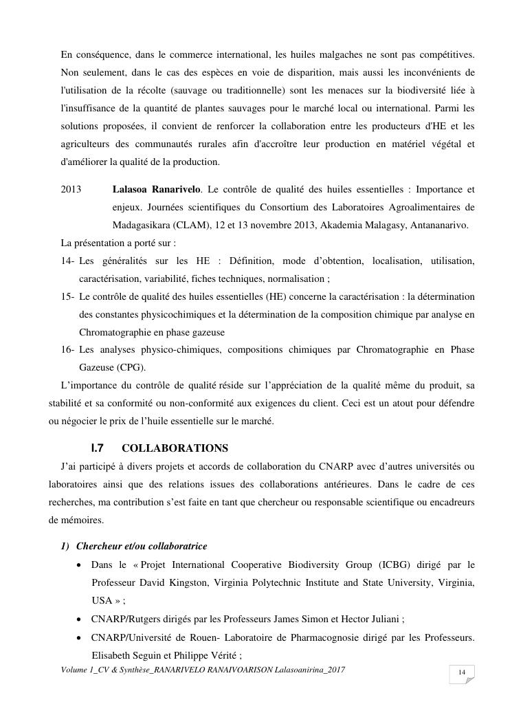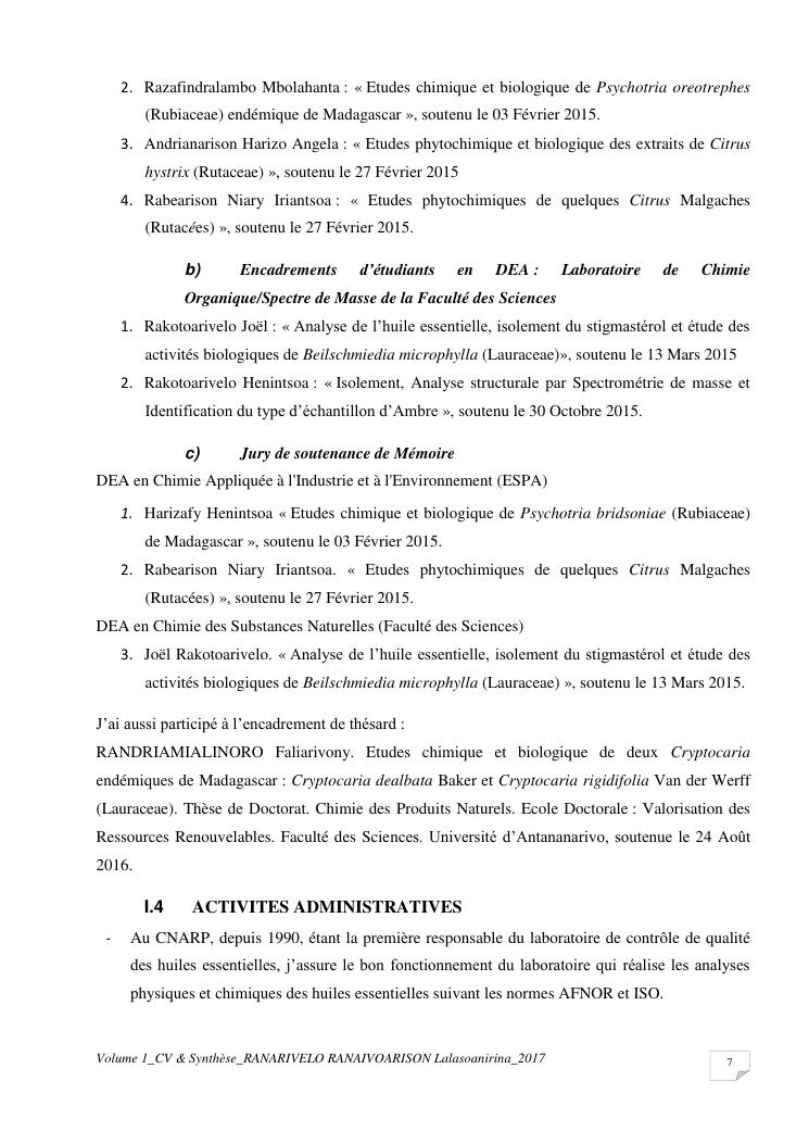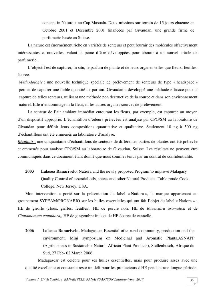 etudes chimiques et biologiques de plantes médicinales de madagascar à intérêt économique. volume 1 : curriculum vitae et document de synthese