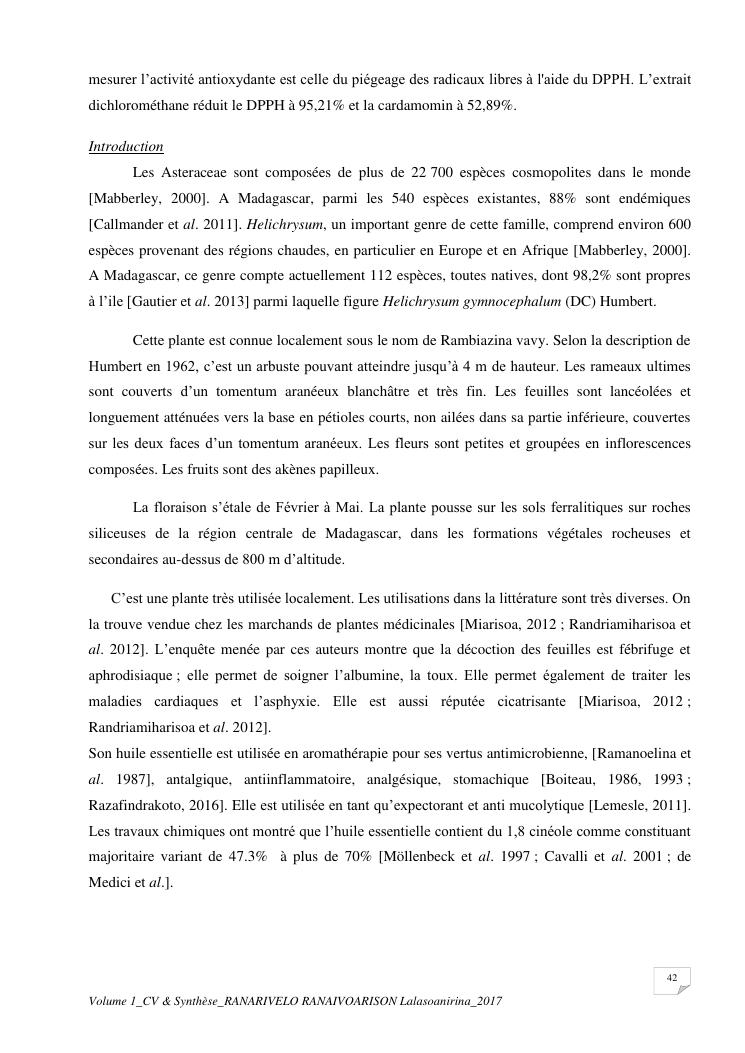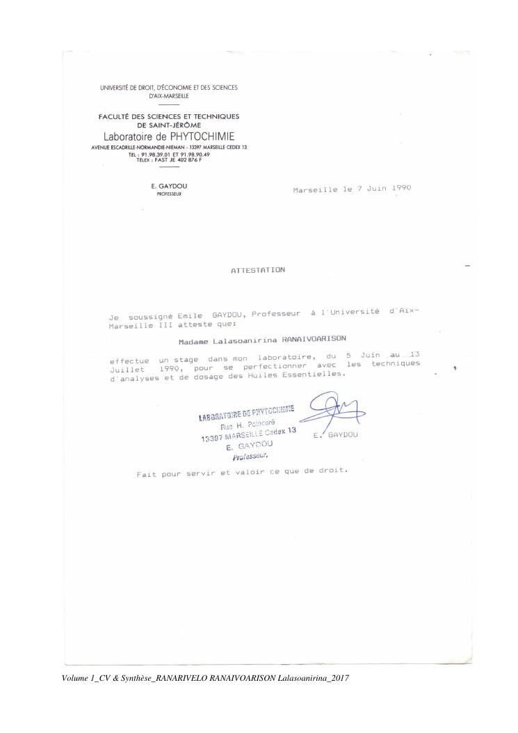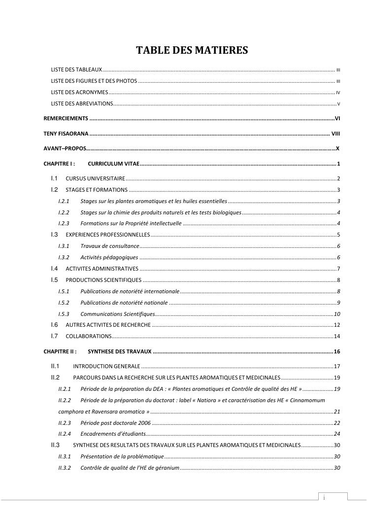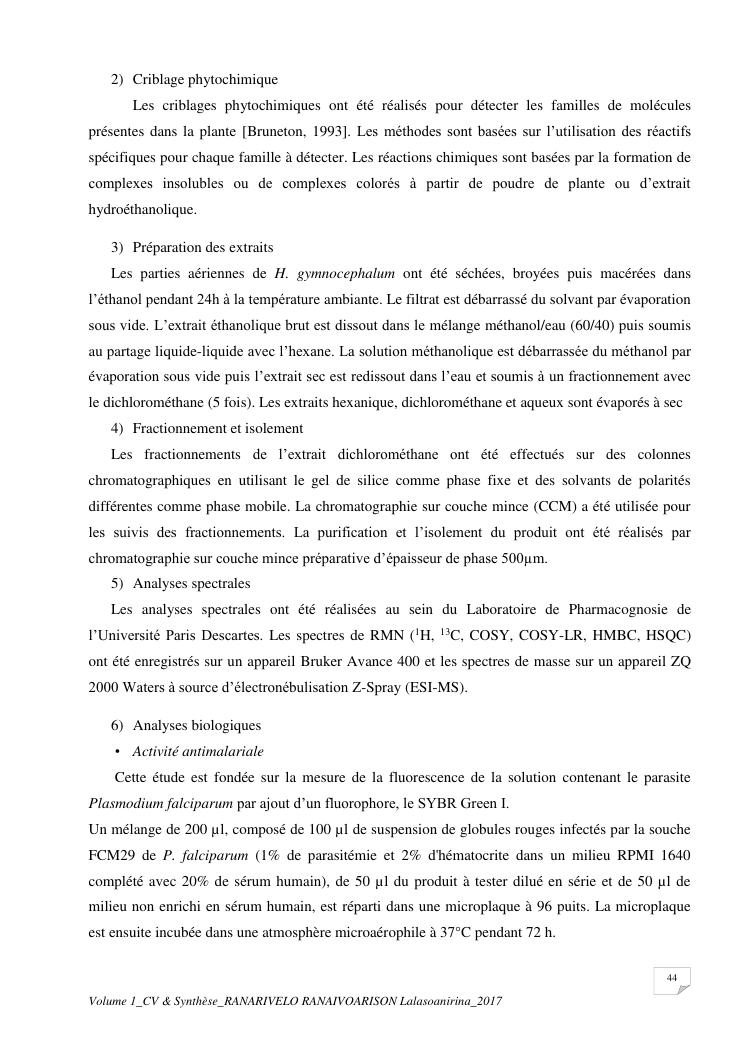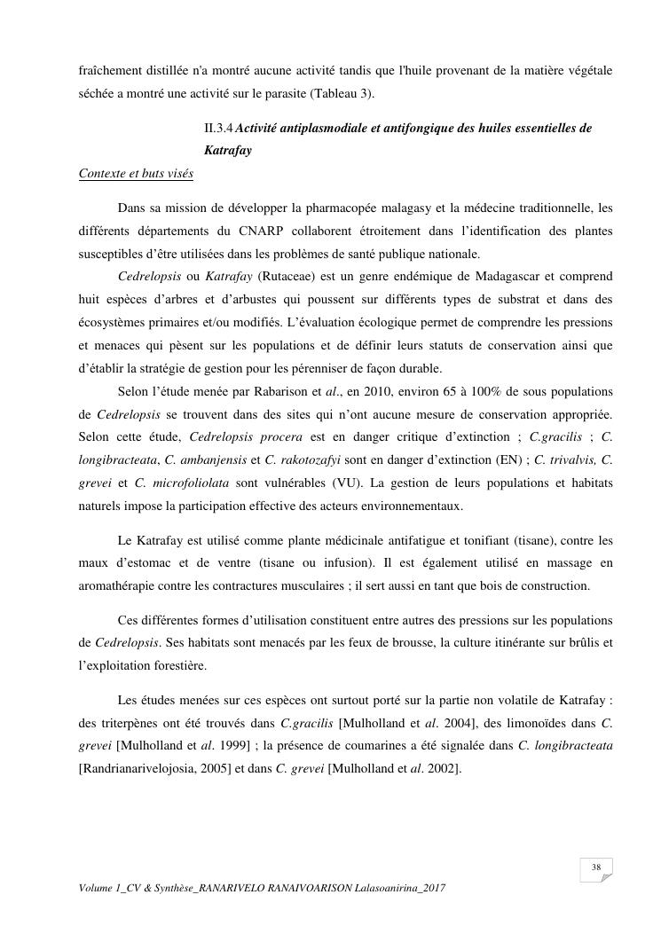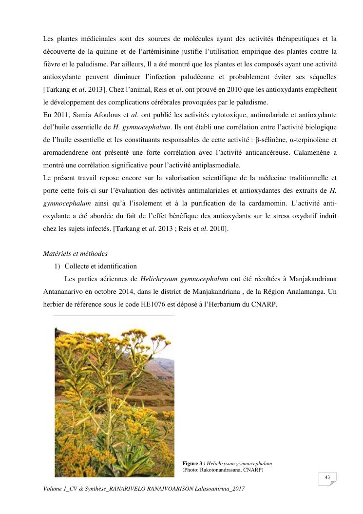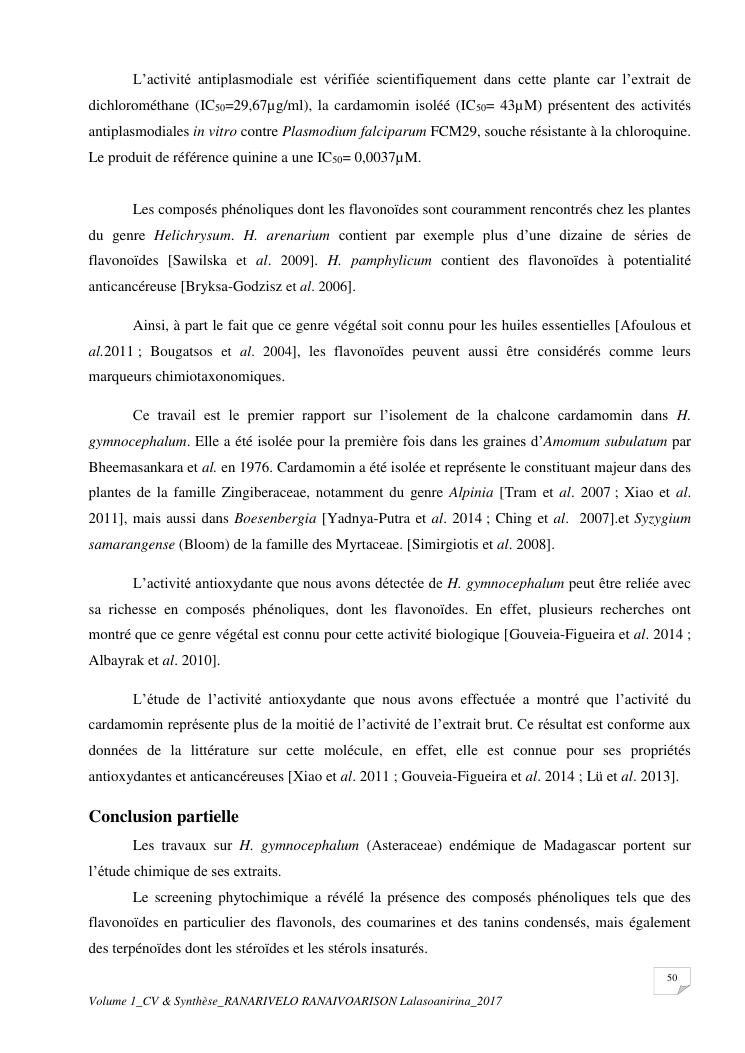 etudes chimiques et biologiques de plantes médicinales de madagascar à intérêt économique. volume 1 : curriculum vitae et document de synthese