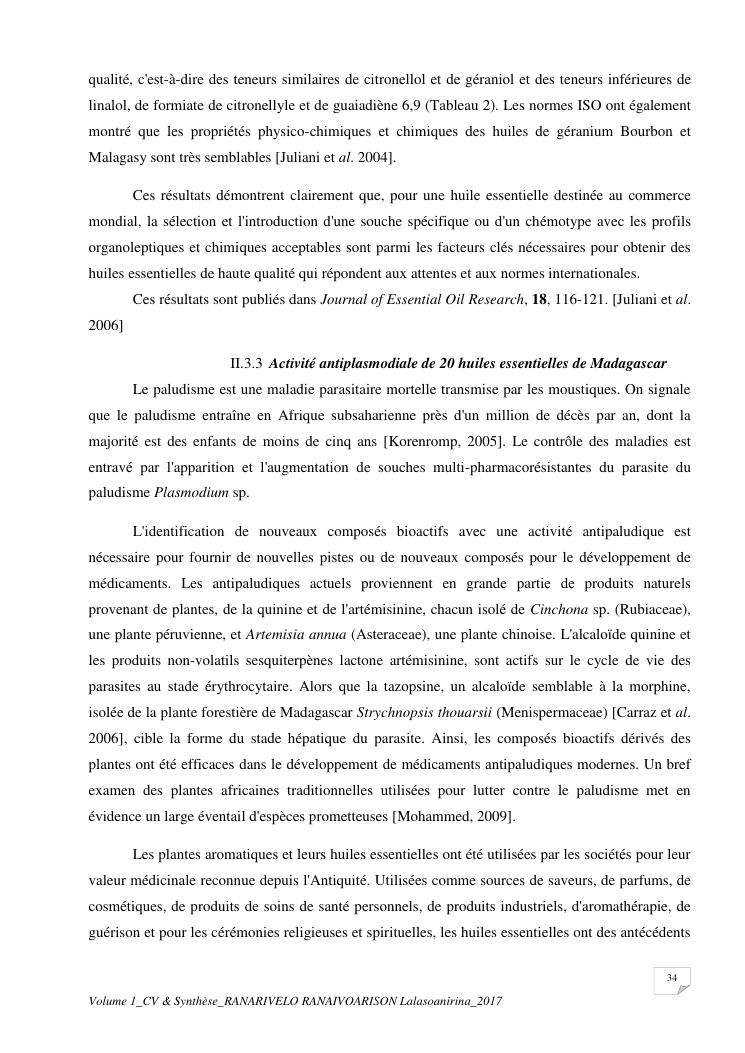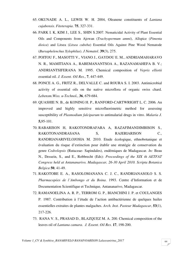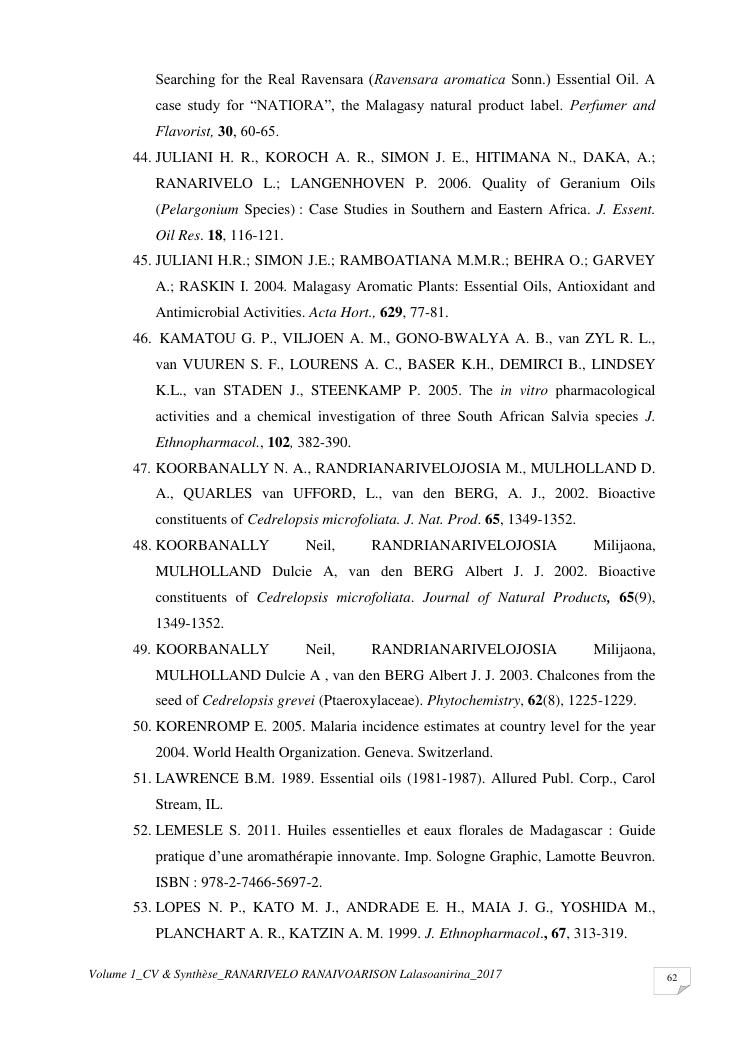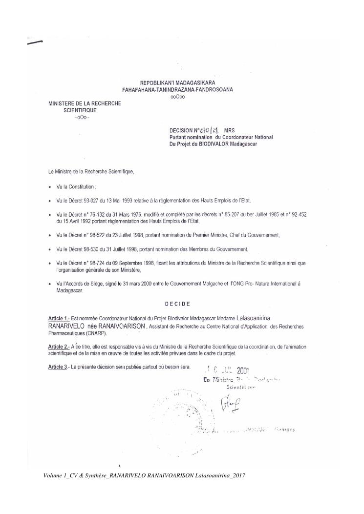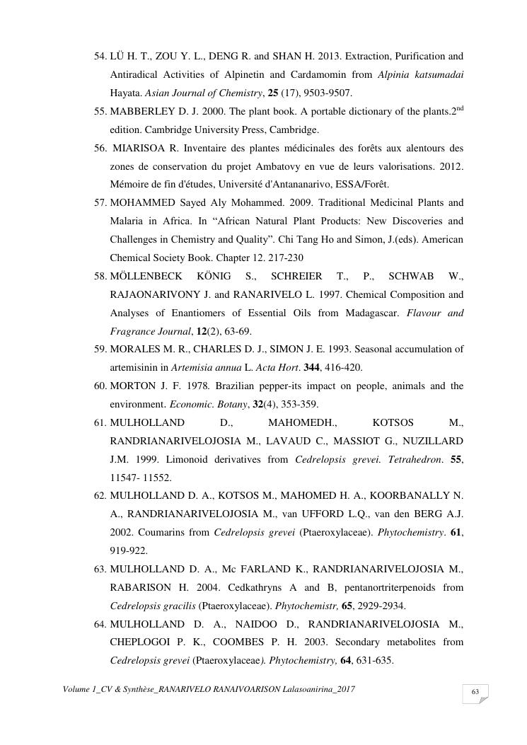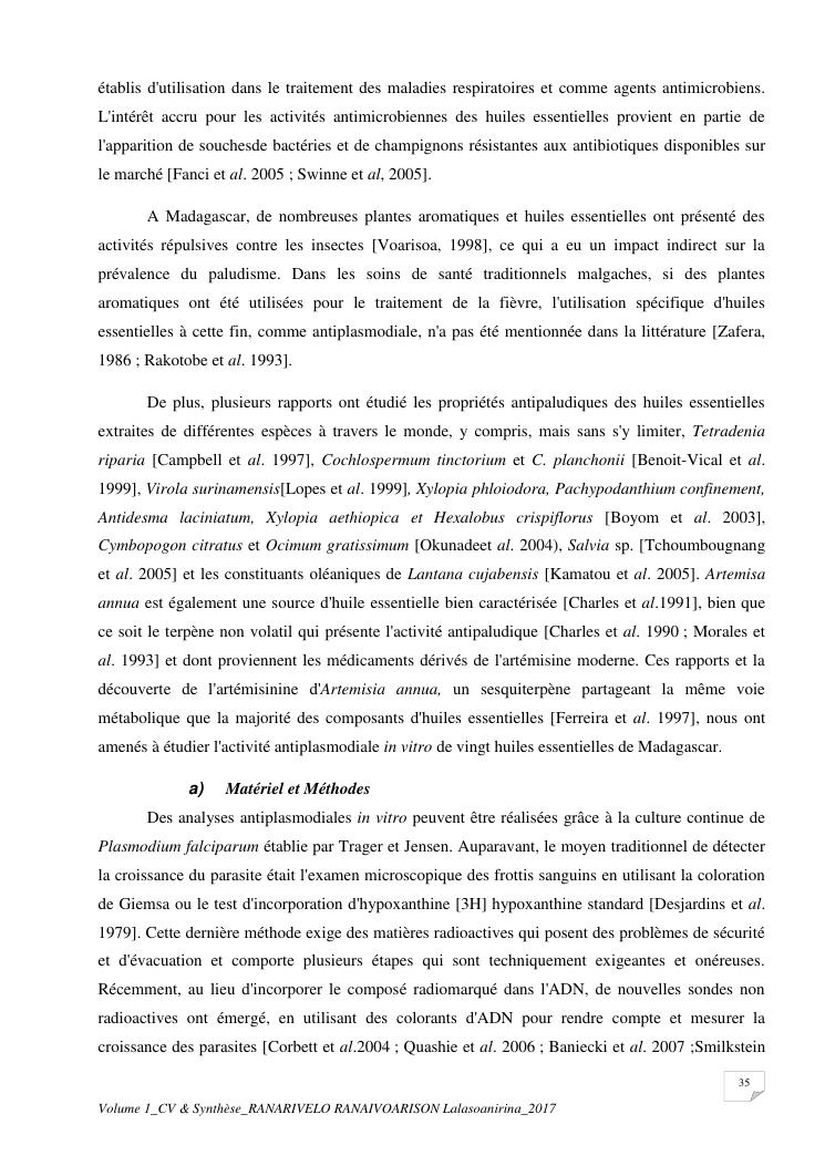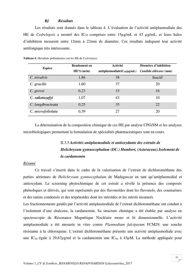 etudes chimiques et biologiques de plantes médicinales de madagascar à intérêt économique. volume 1 : curriculum vitae et document de synthese