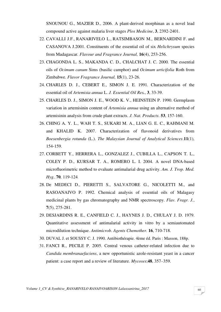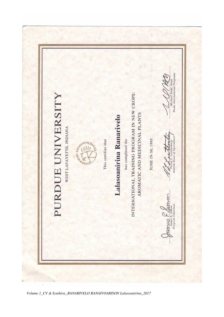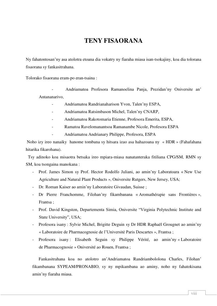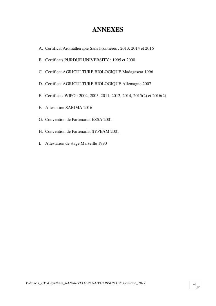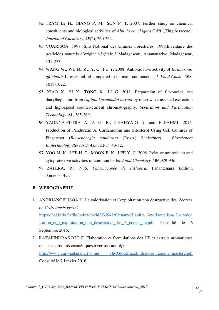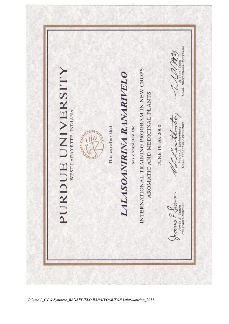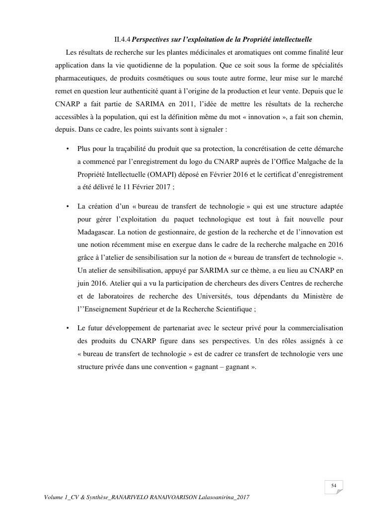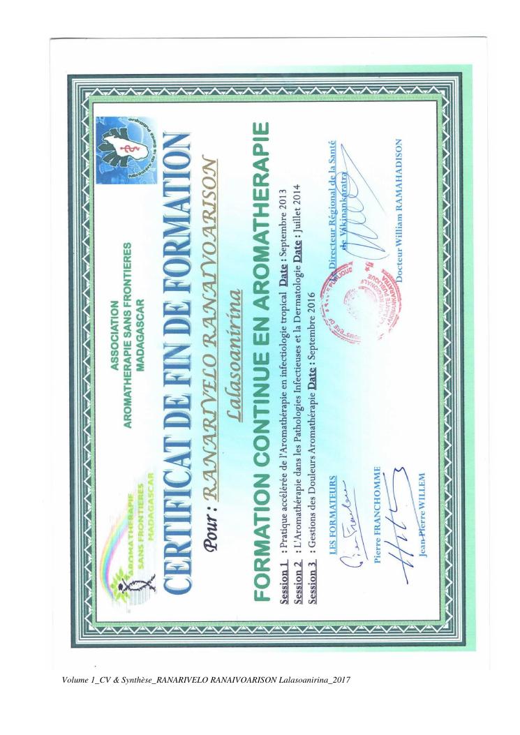 etudes chimiques et biologiques de plantes médicinales de madagascar à intérêt économique. volume 1 : curriculum vitae et document de synthese