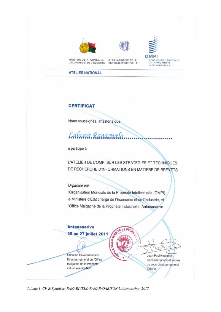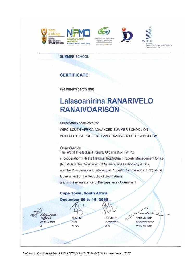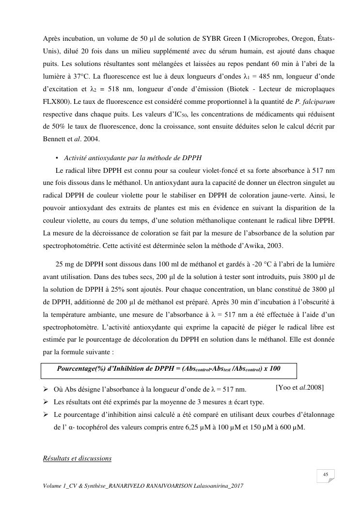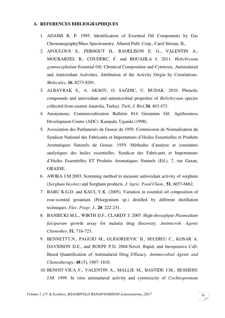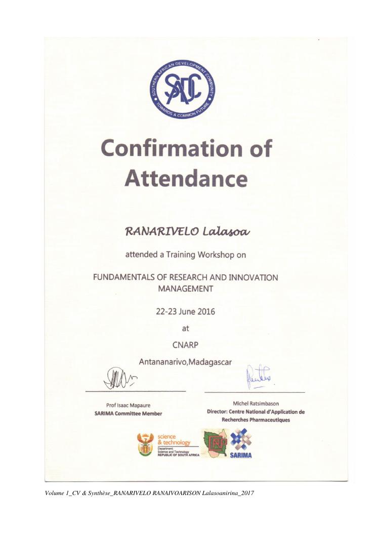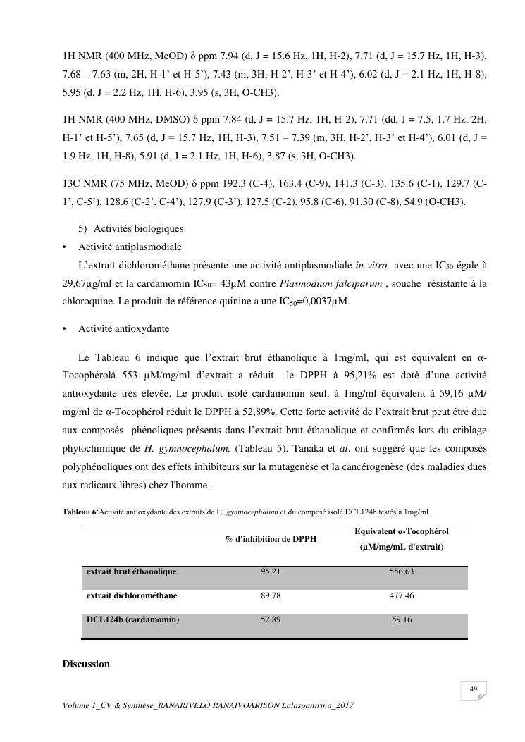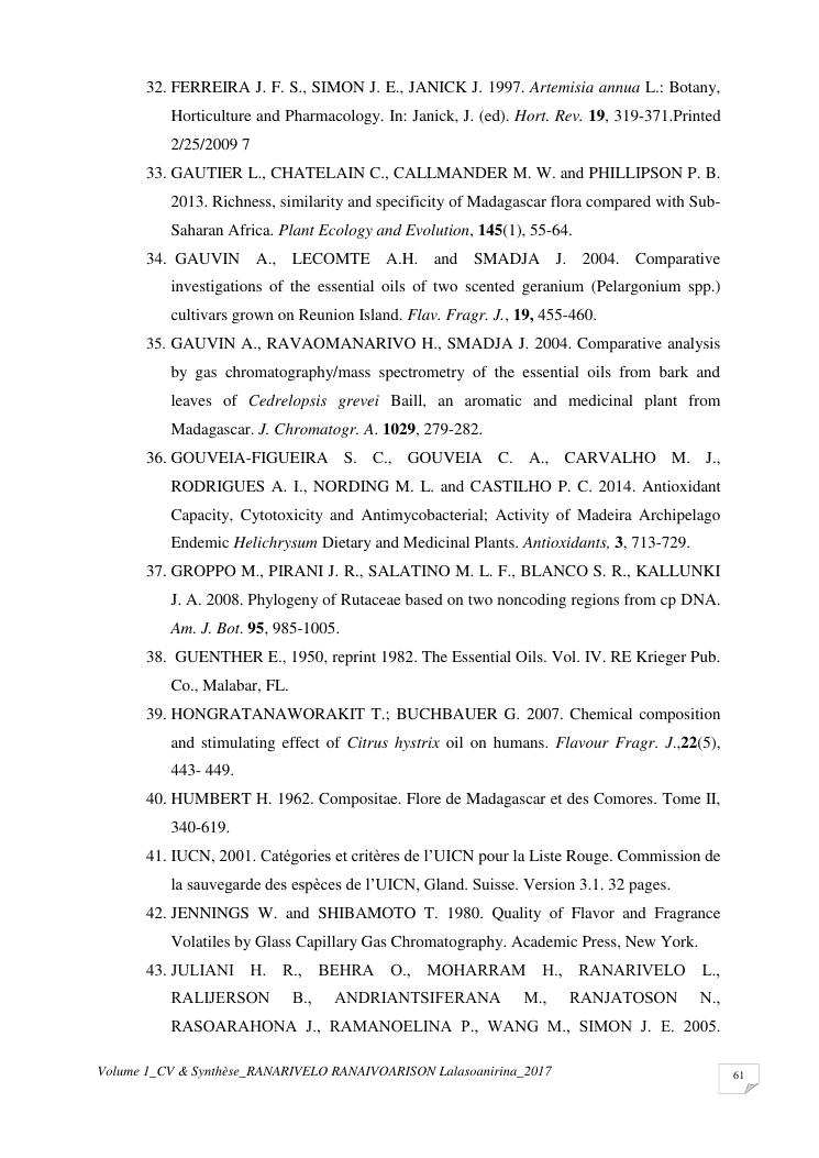 etudes chimiques et biologiques de plantes médicinales de madagascar à intérêt économique. volume 1 : curriculum vitae et document de synthese