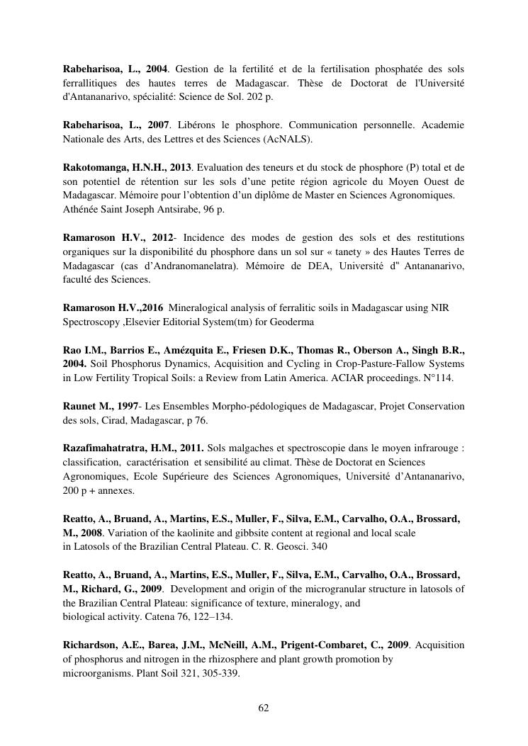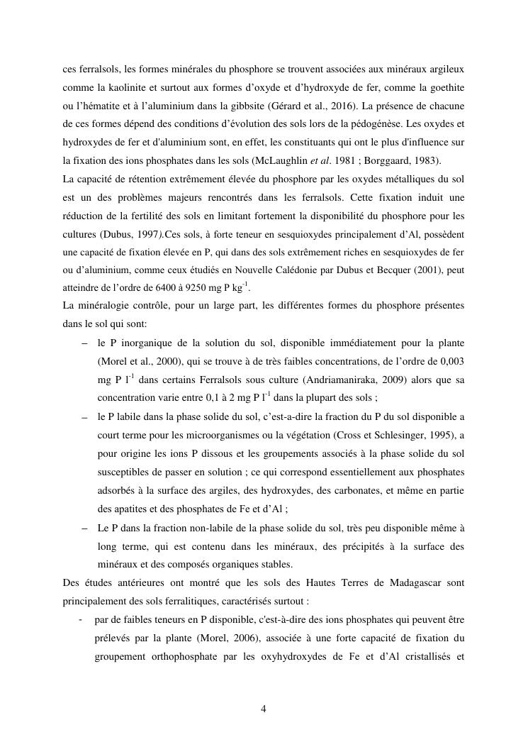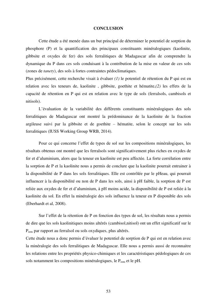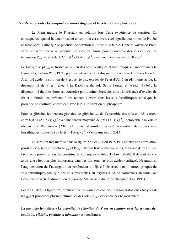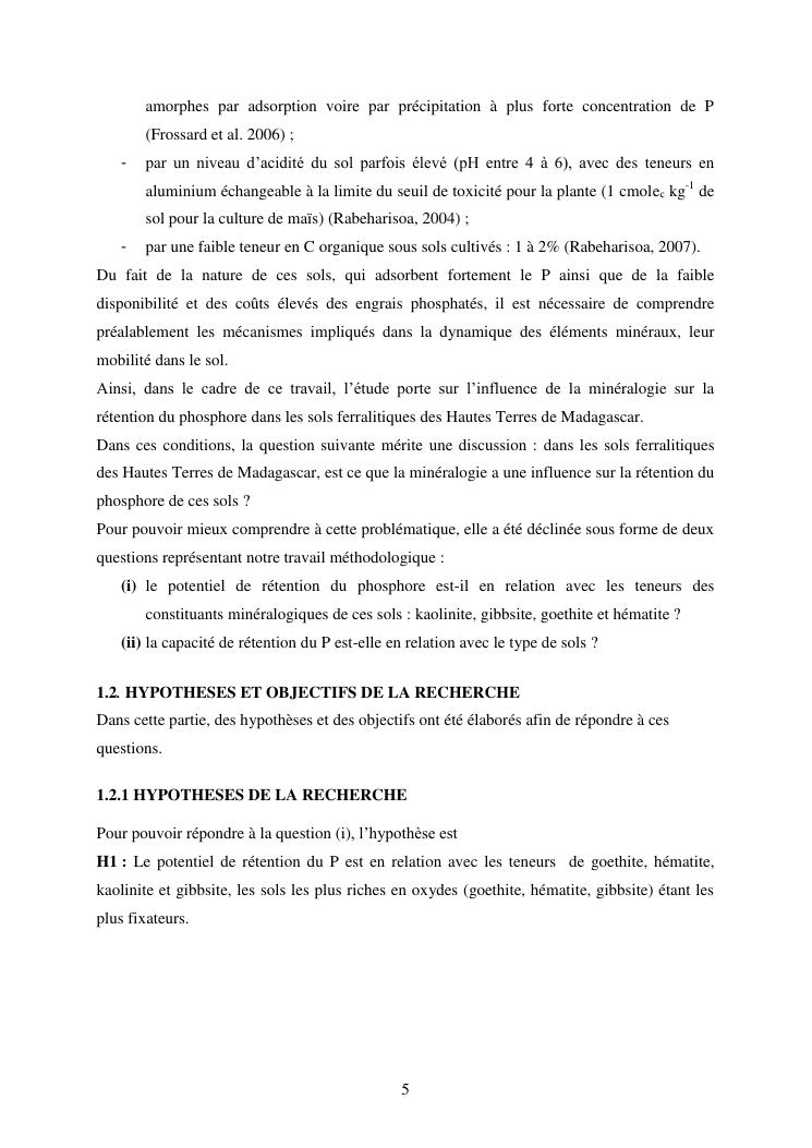 influence de la minéralogie sur la rétention du phosphore dans les sols ferrallitiques des hautes terres de madagascar