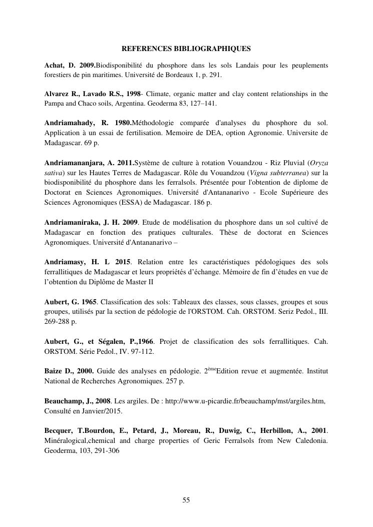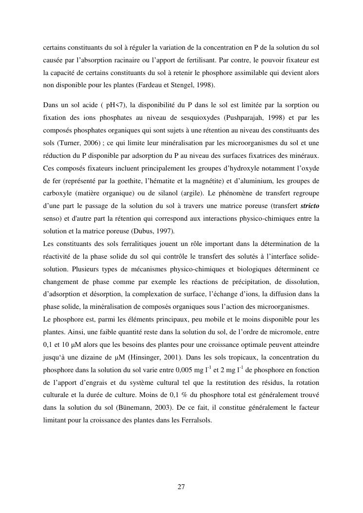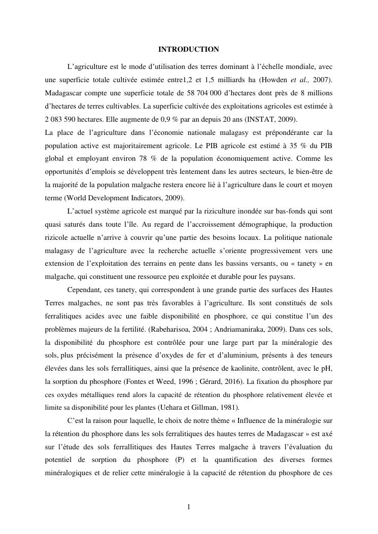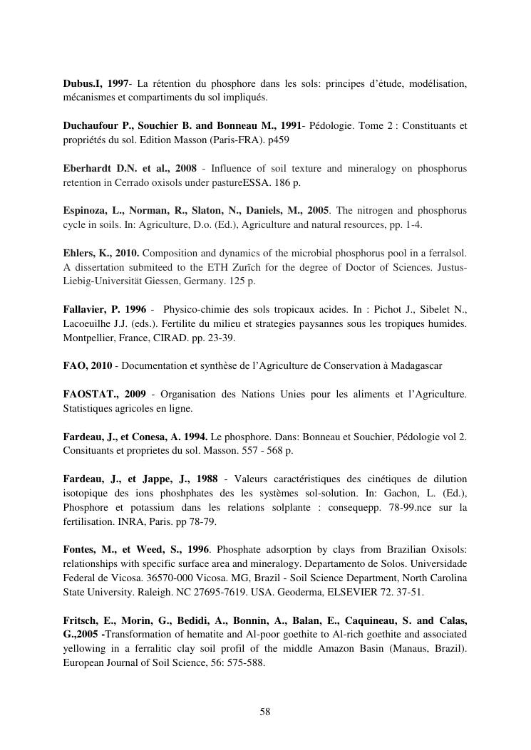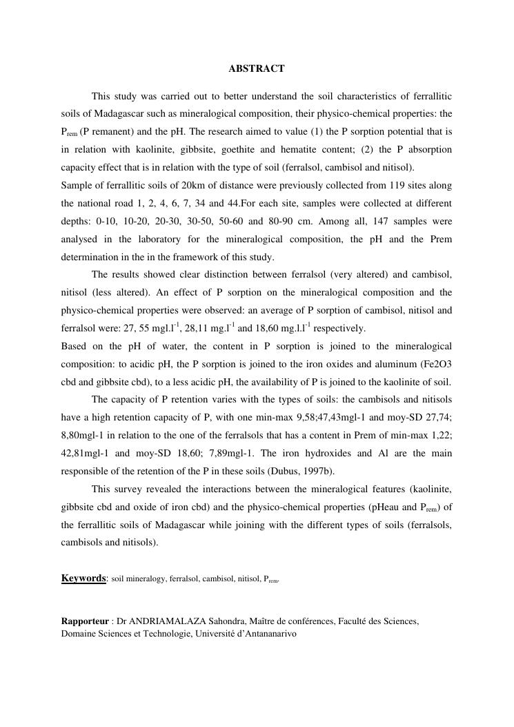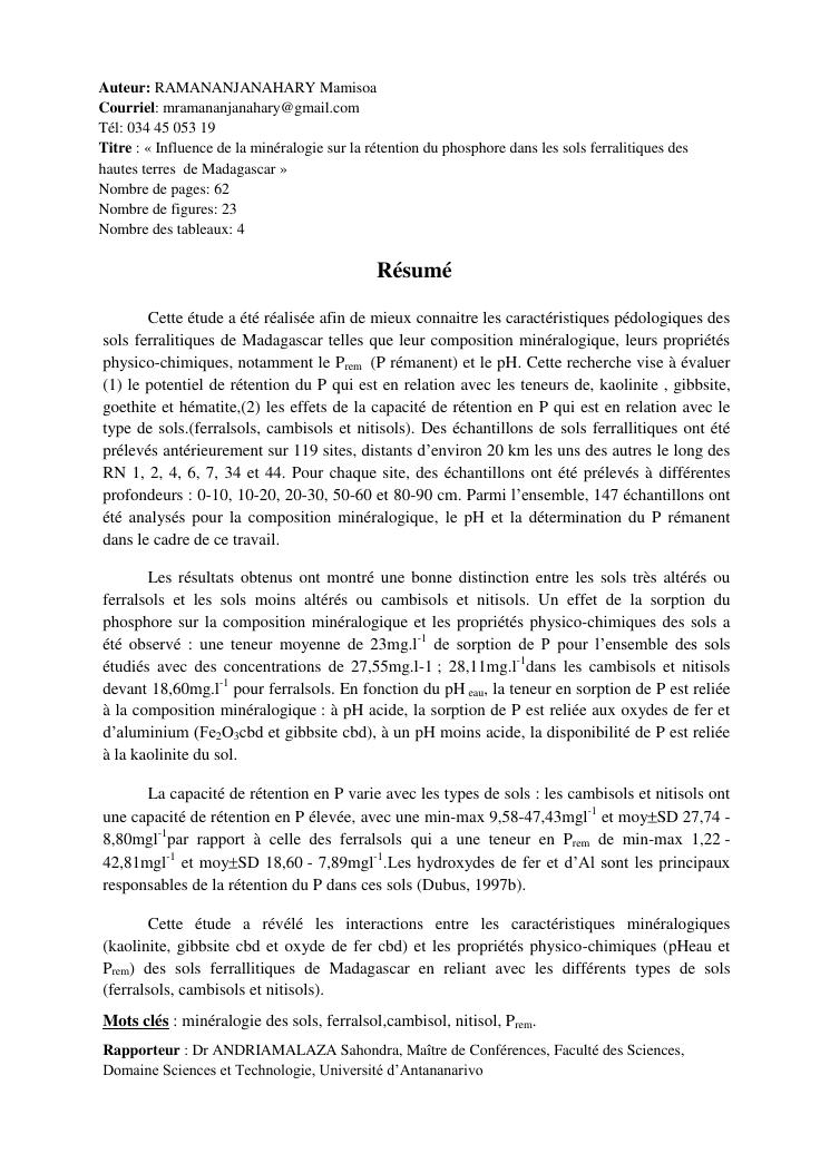 influence de la minéralogie sur la rétention du phosphore dans les sols ferrallitiques des hautes terres de madagascar