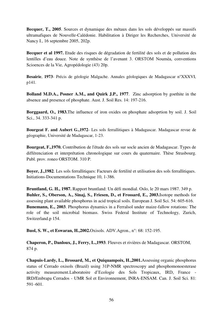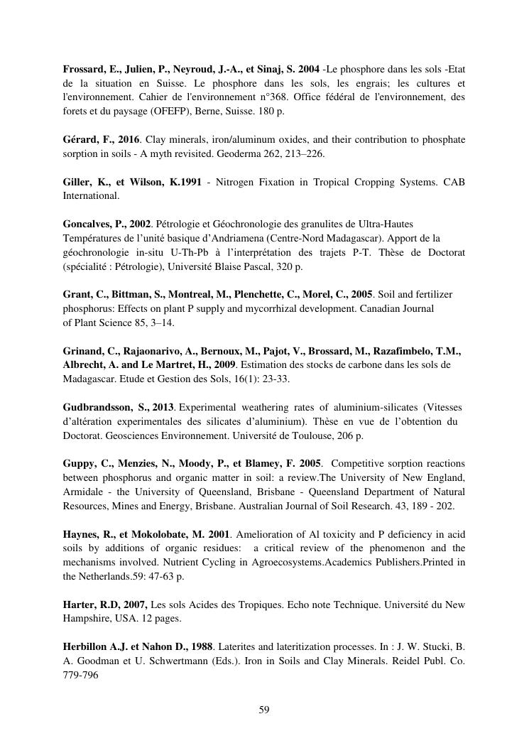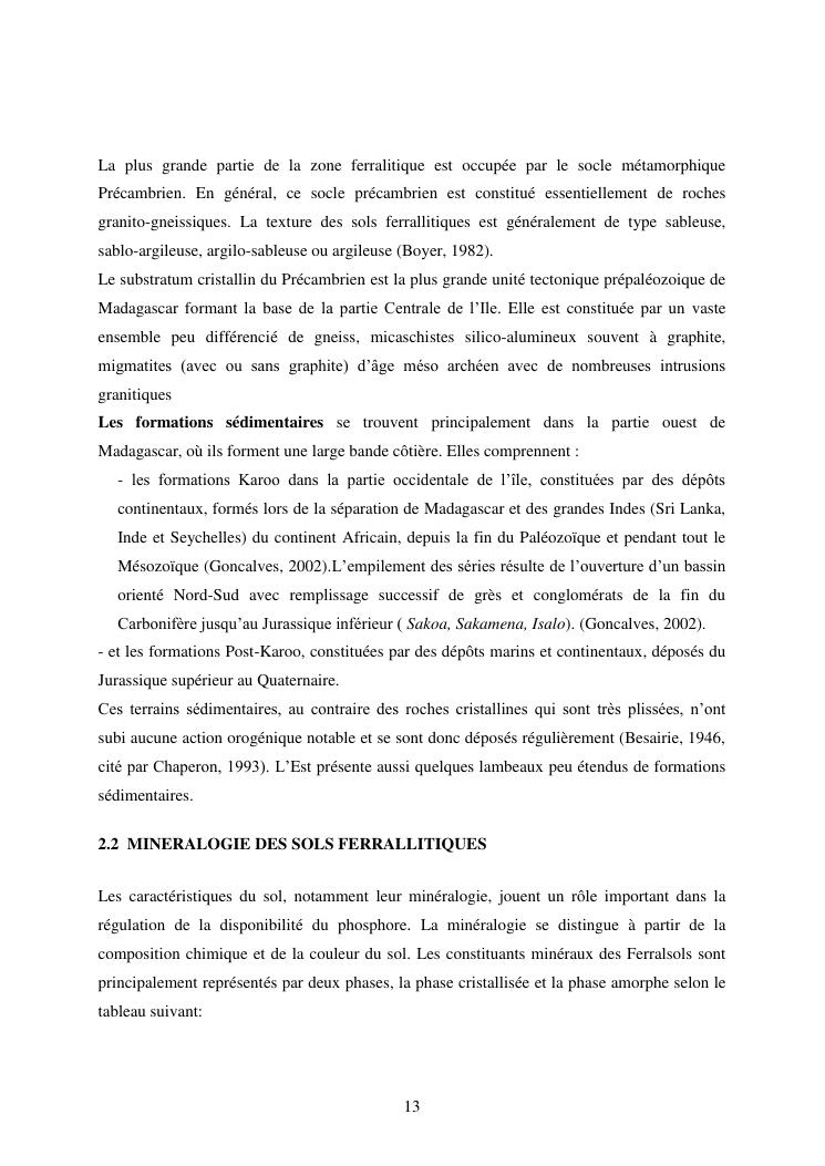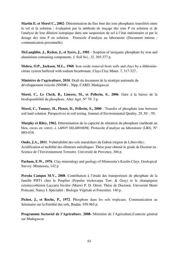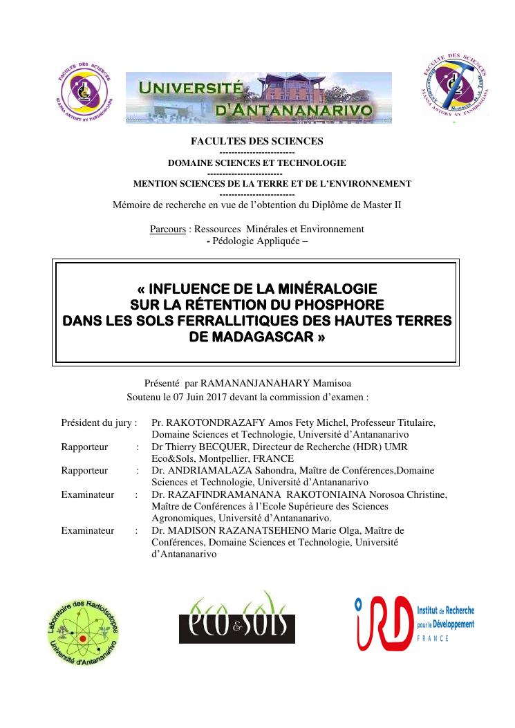 influence de la minéralogie sur la rétention du phosphore dans les sols ferrallitiques des hautes terres de madagascar