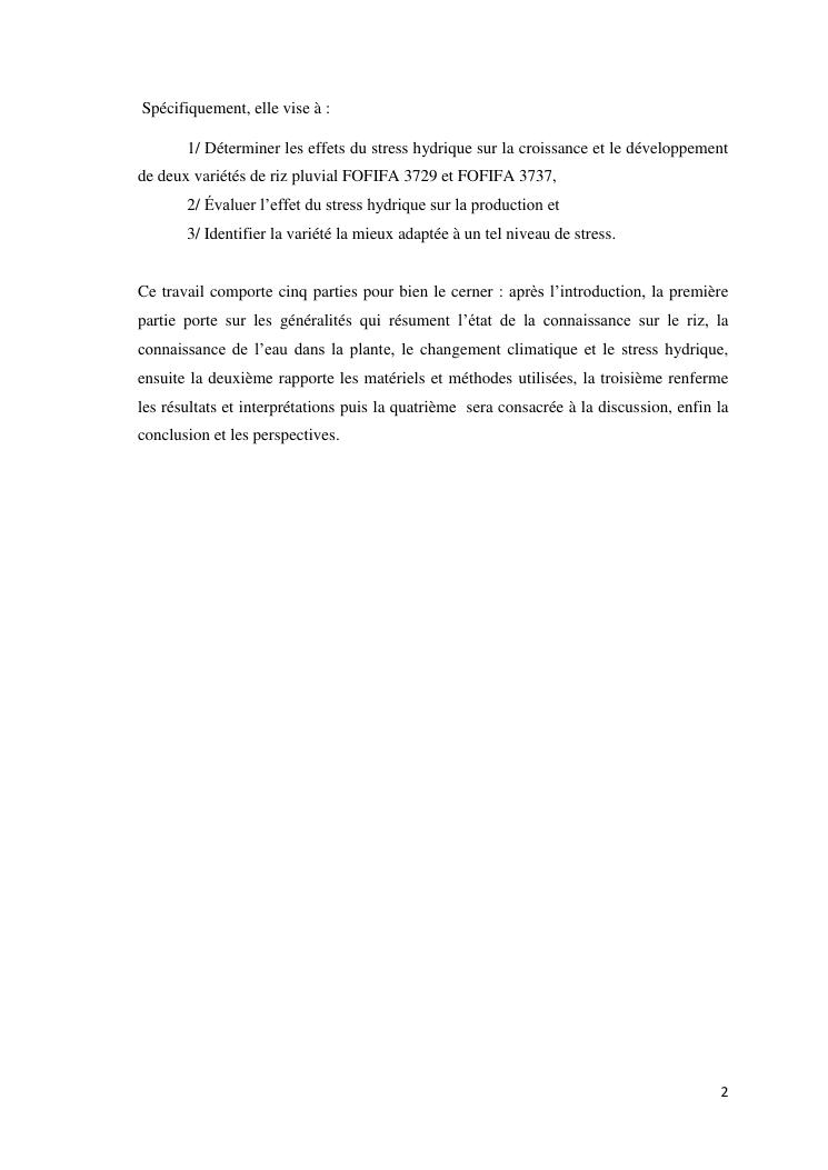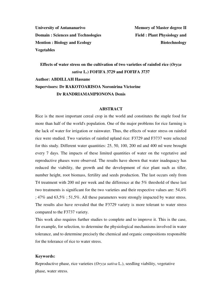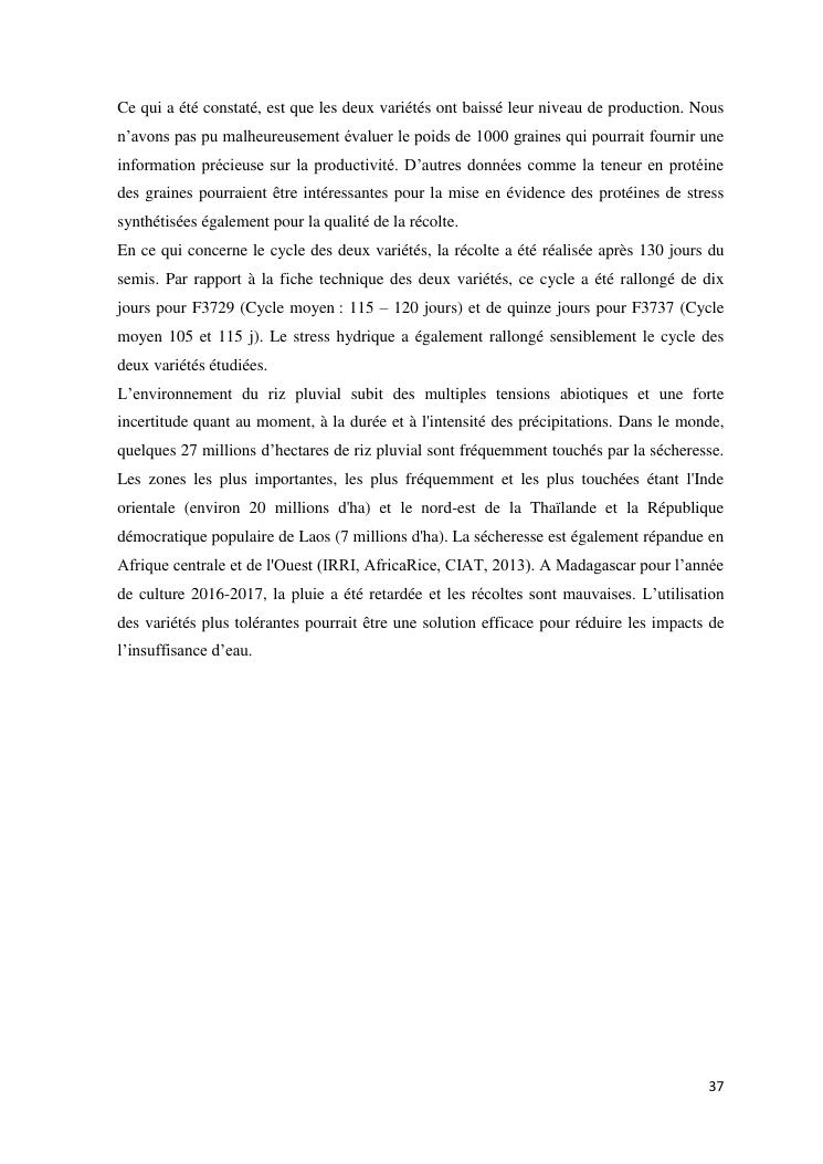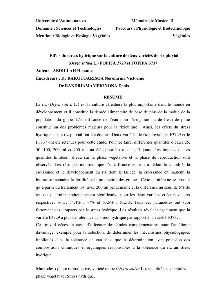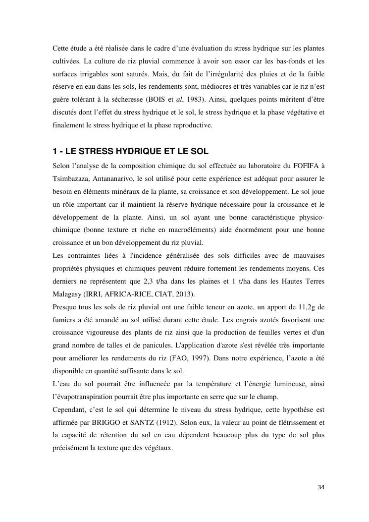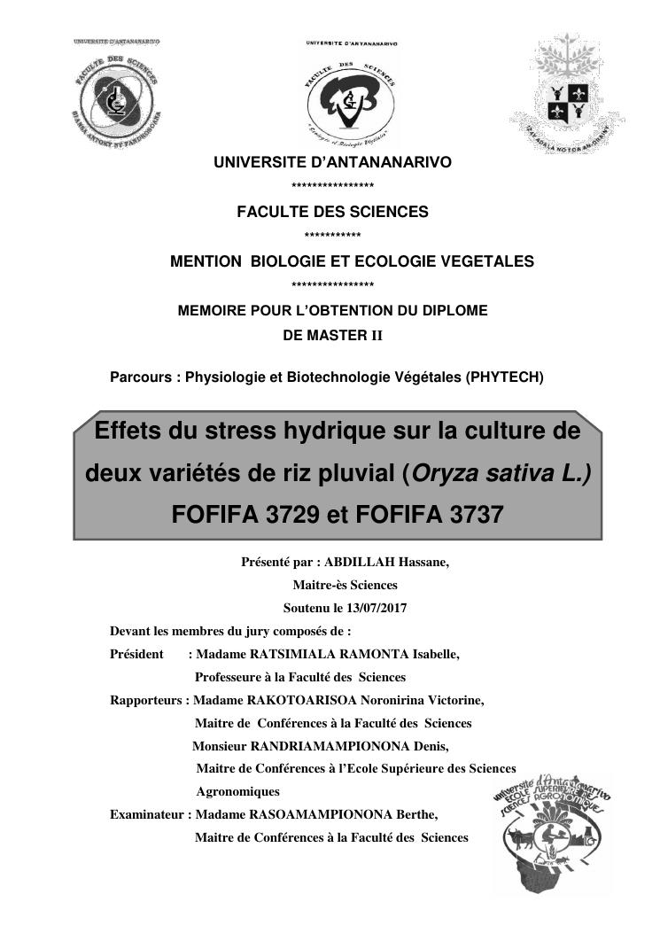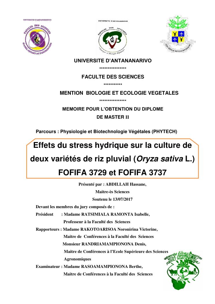 effets du stress hydrique sur la culture de deux variétés de riz pluvial (oryza sativa l.) fofifa 3729 et fofifa 3737