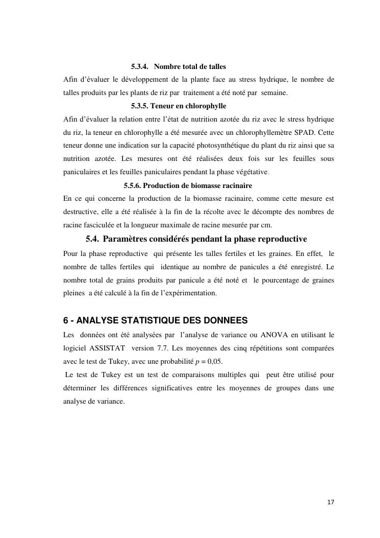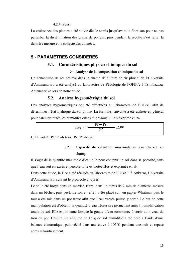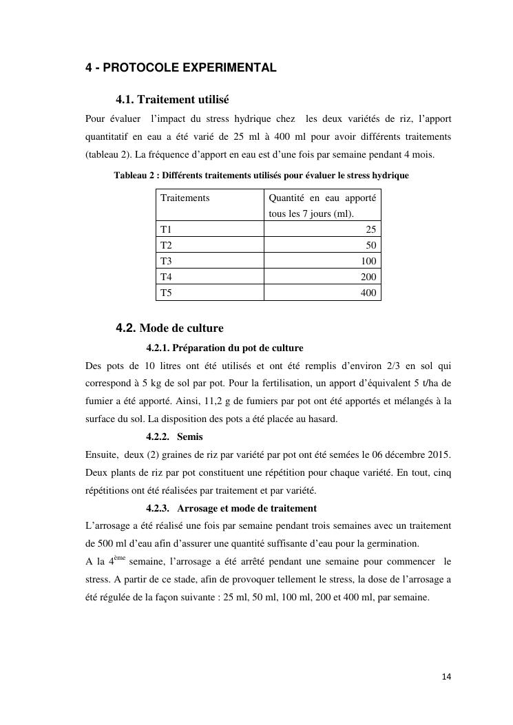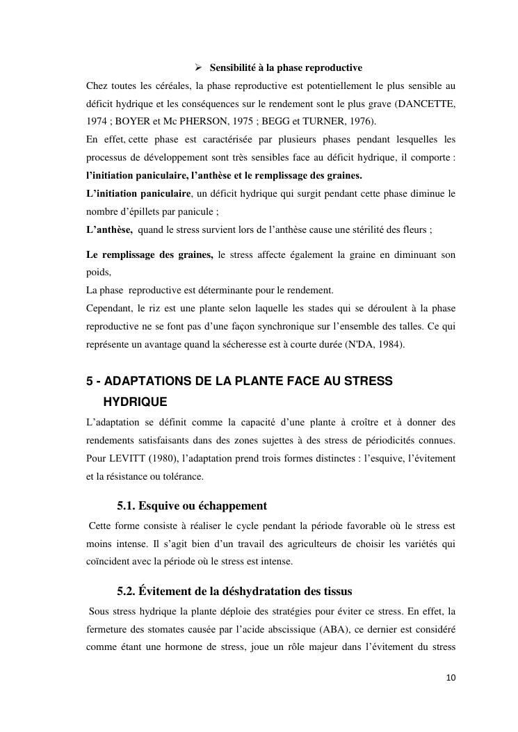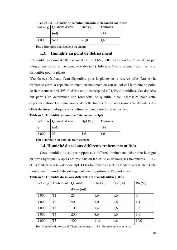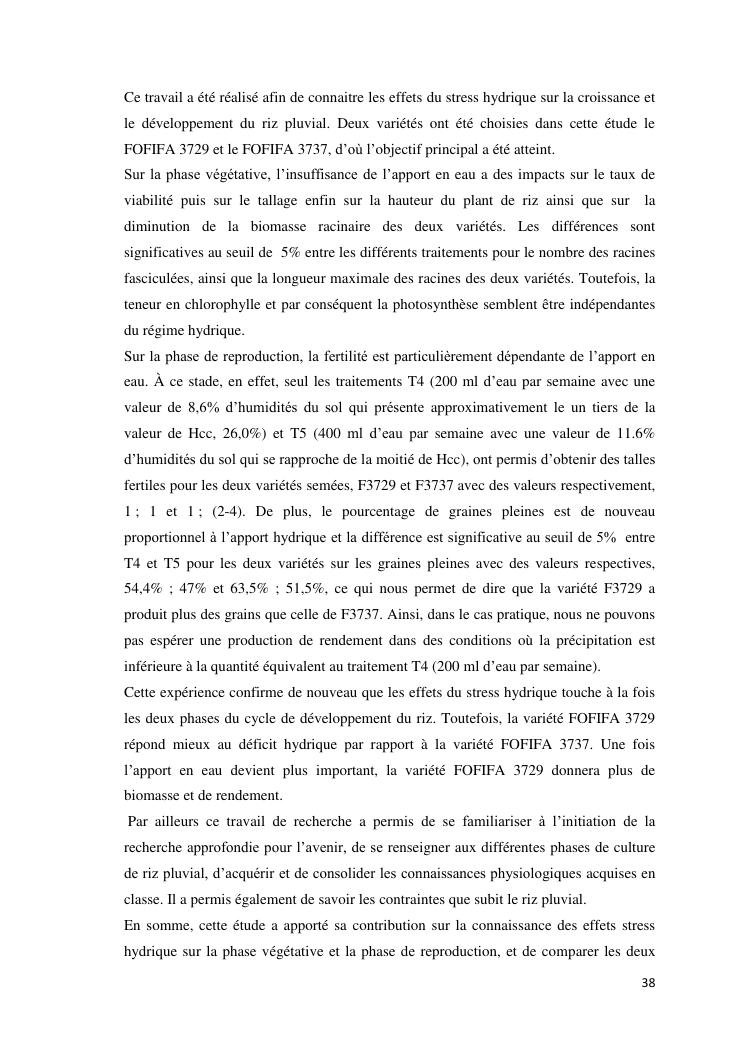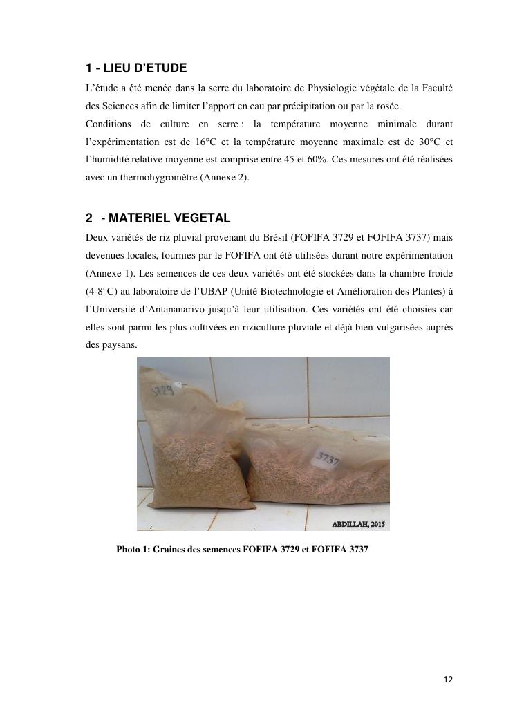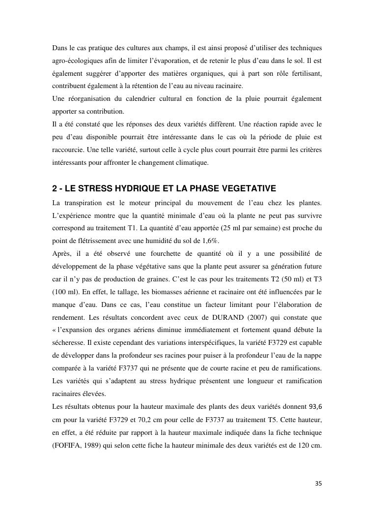 effets du stress hydrique sur la culture de deux variétés de riz pluvial (oryza sativa l.) fofifa 3729 et fofifa 3737