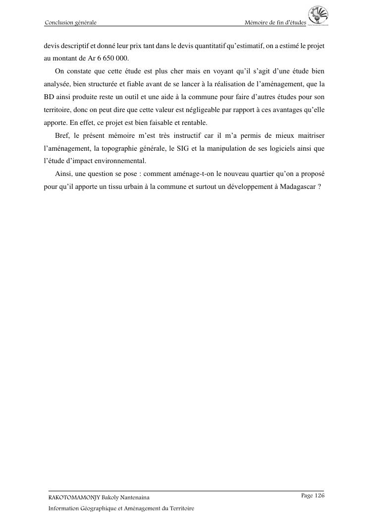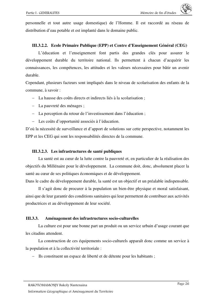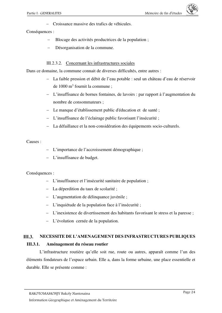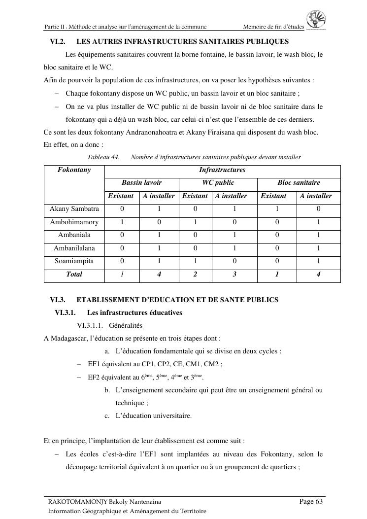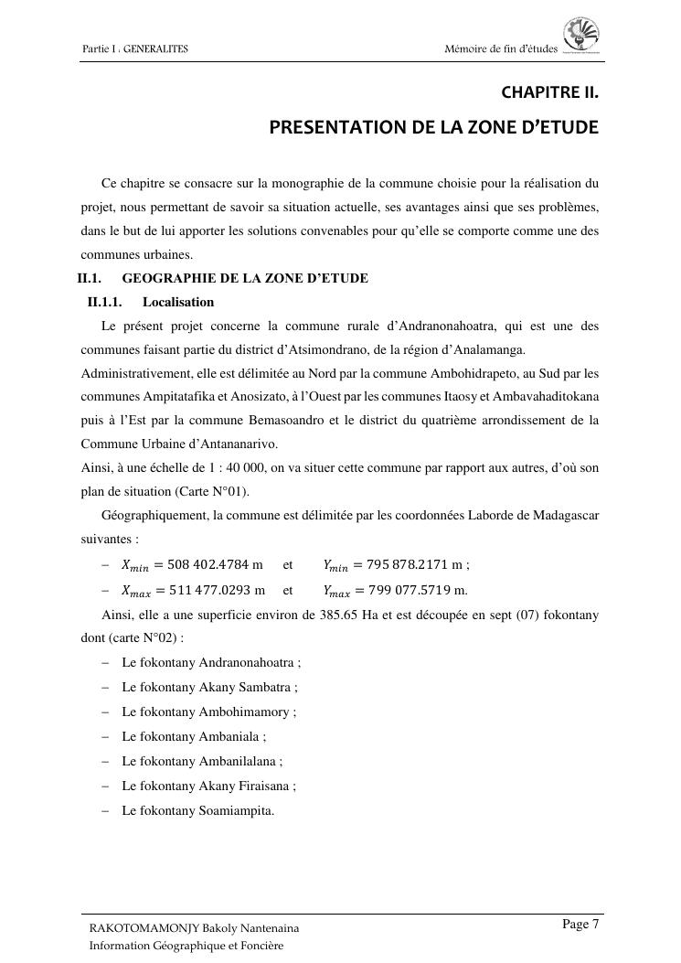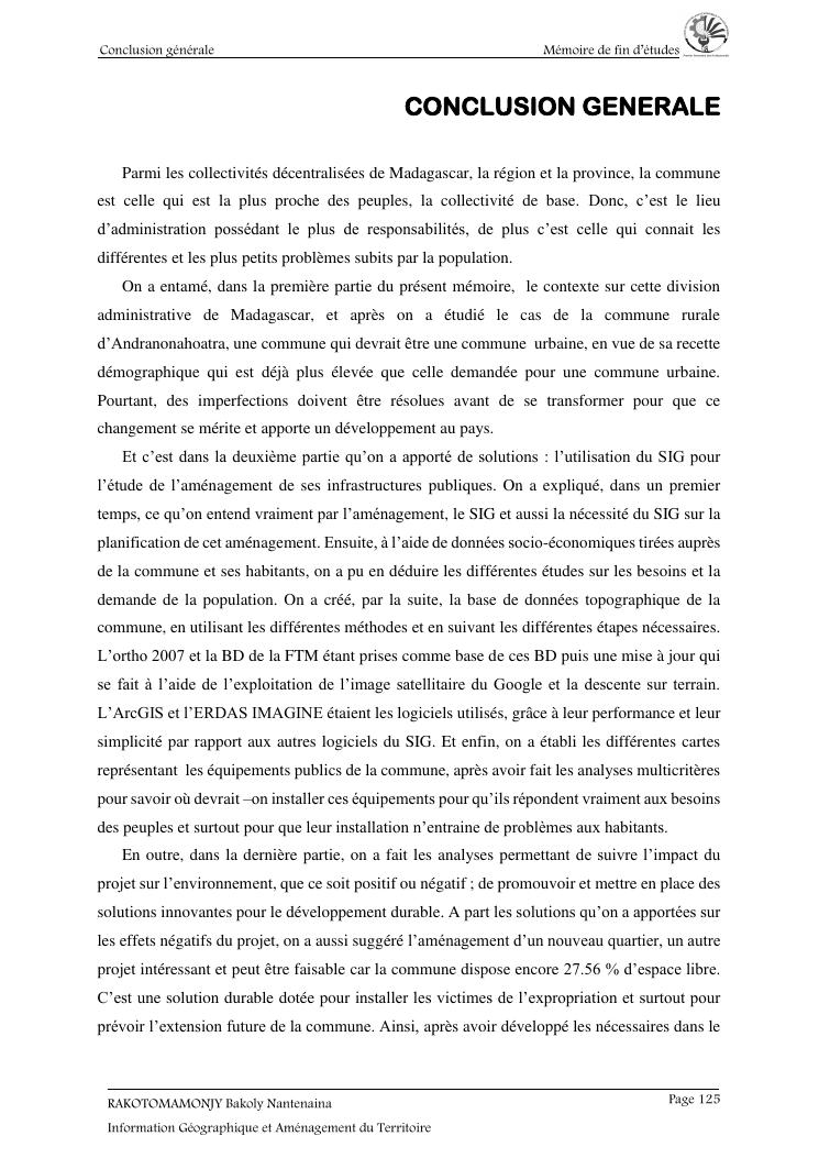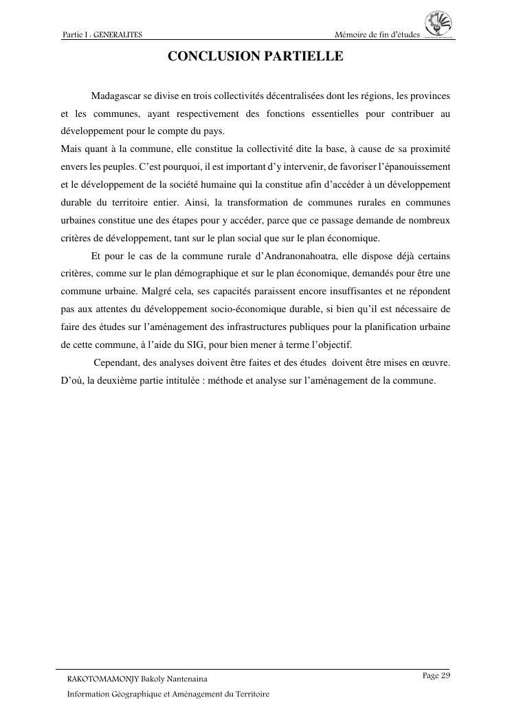 etude de l'amenagement des infrastructures publiques d'une commune rurale pour son passage en commune urbaine, a l'aide du systeme d'information geographique. cas de la commune rurale d'andranonahoatra
