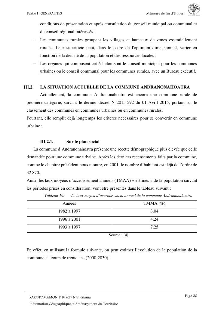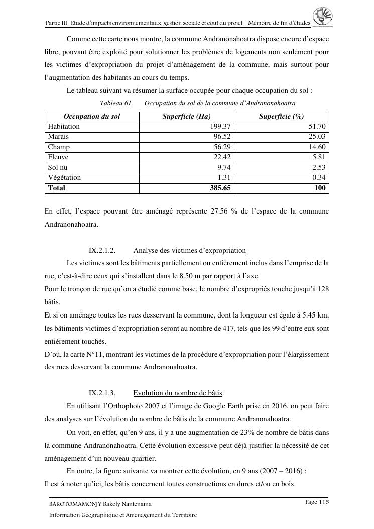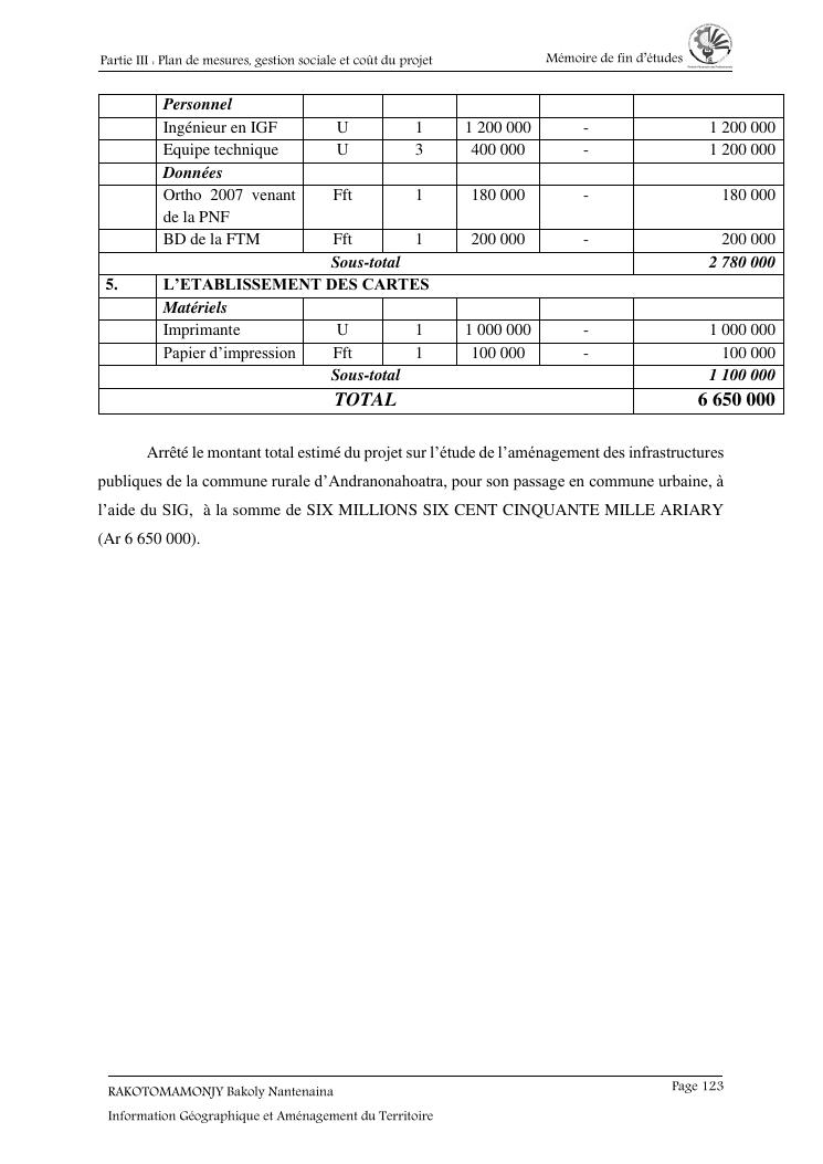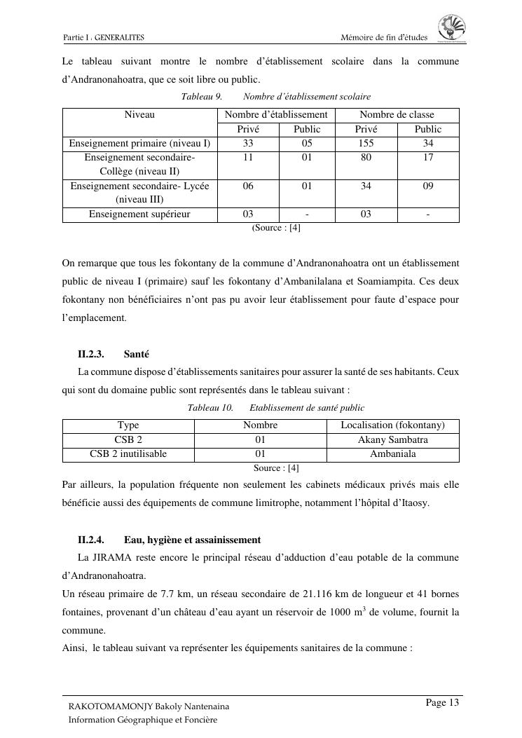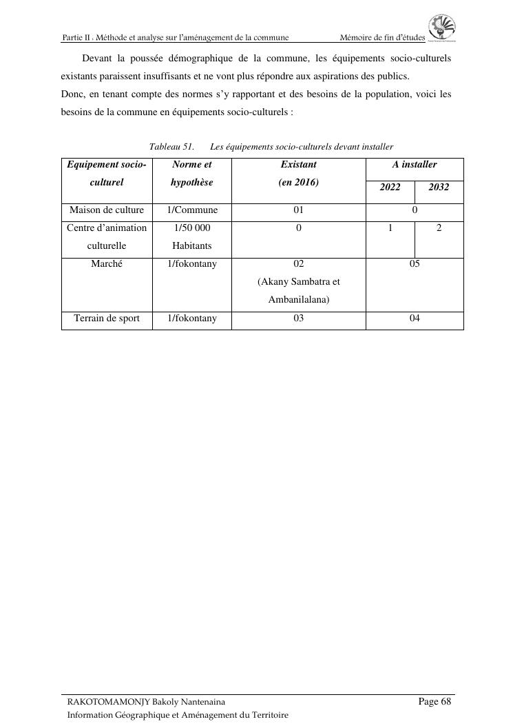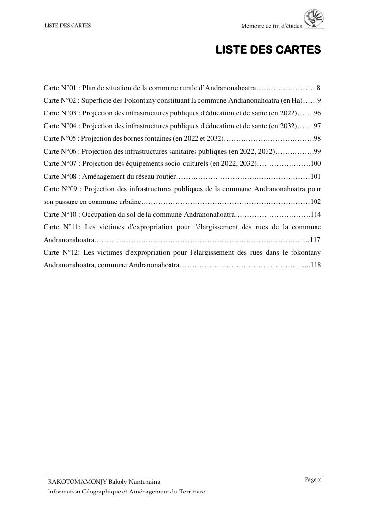 etude de l'amenagement des infrastructures publiques d'une commune rurale pour son passage en commune urbaine, a l'aide du systeme d'information geographique. cas de la commune rurale d'andranonahoatra