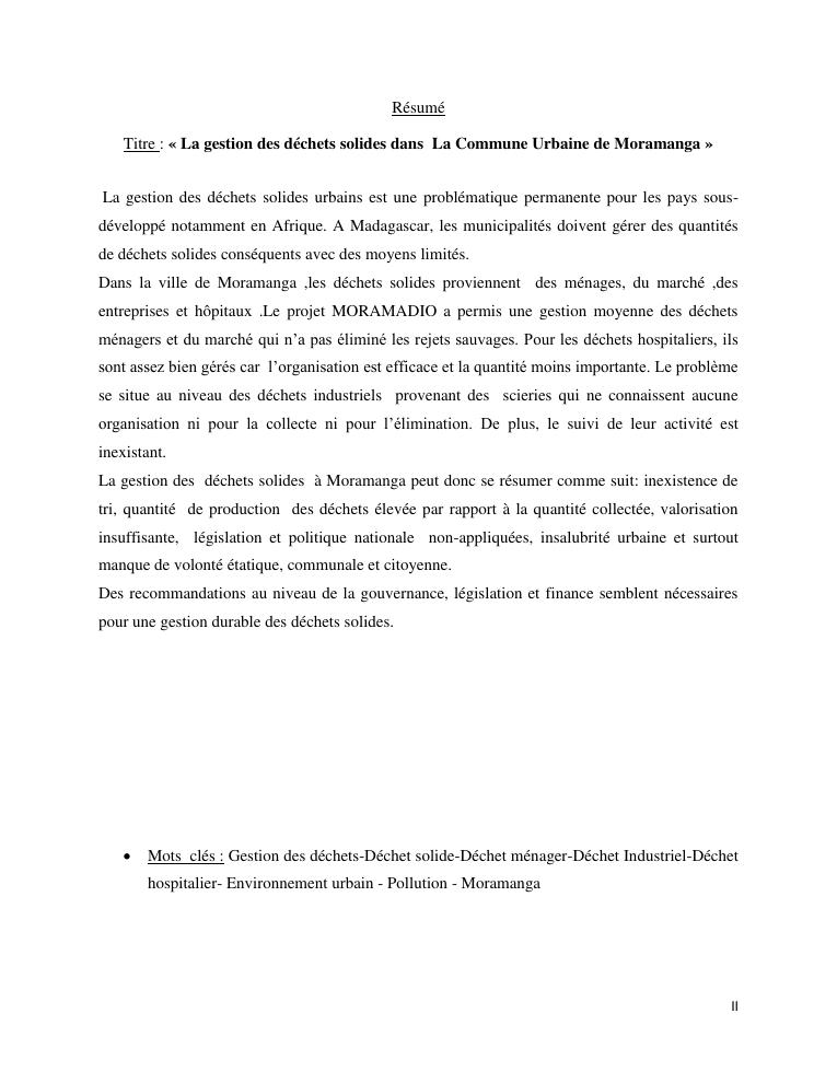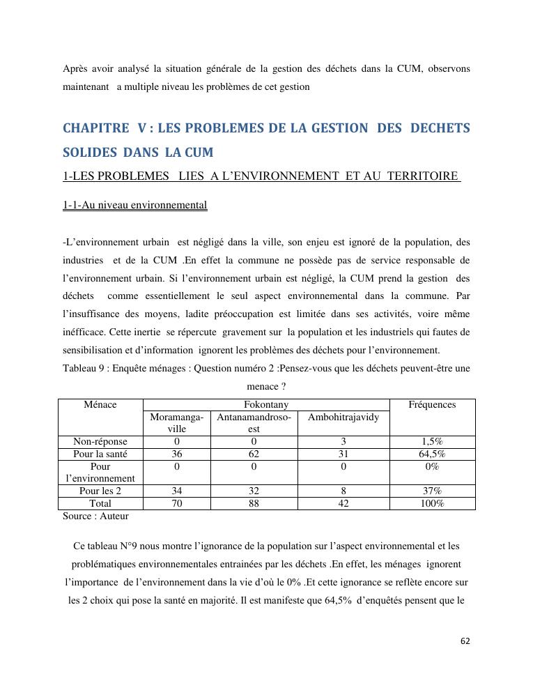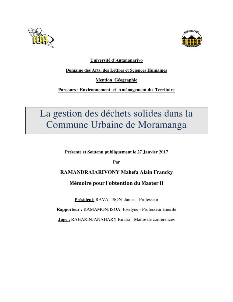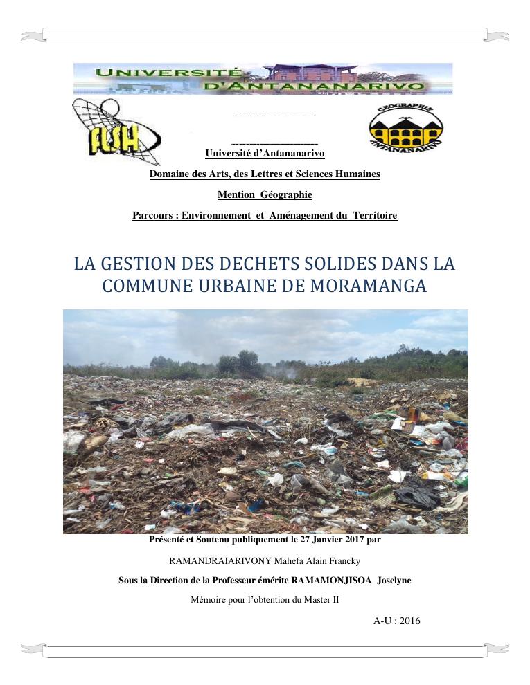 la gestion des dechets solides dans la commune urbaine de moramanga