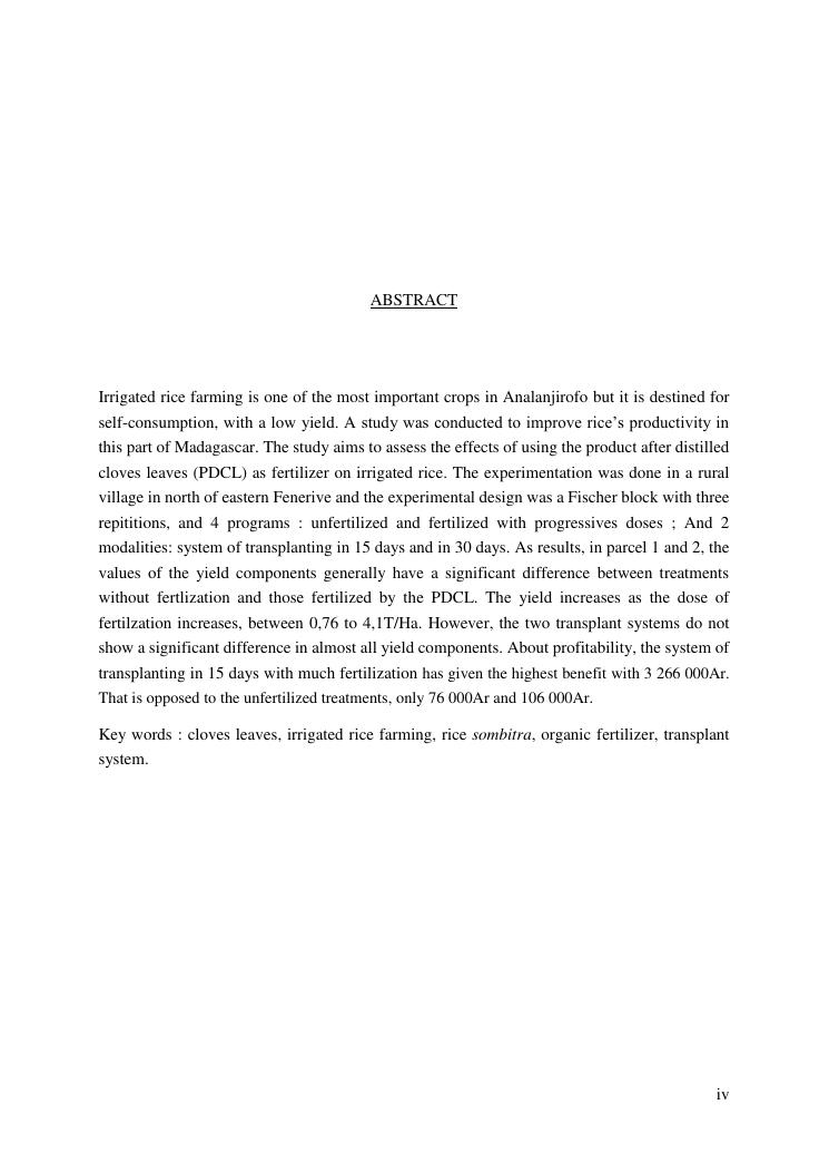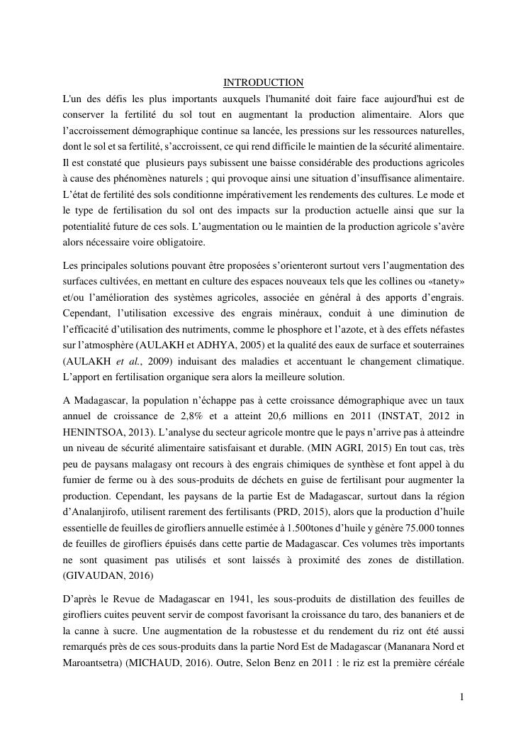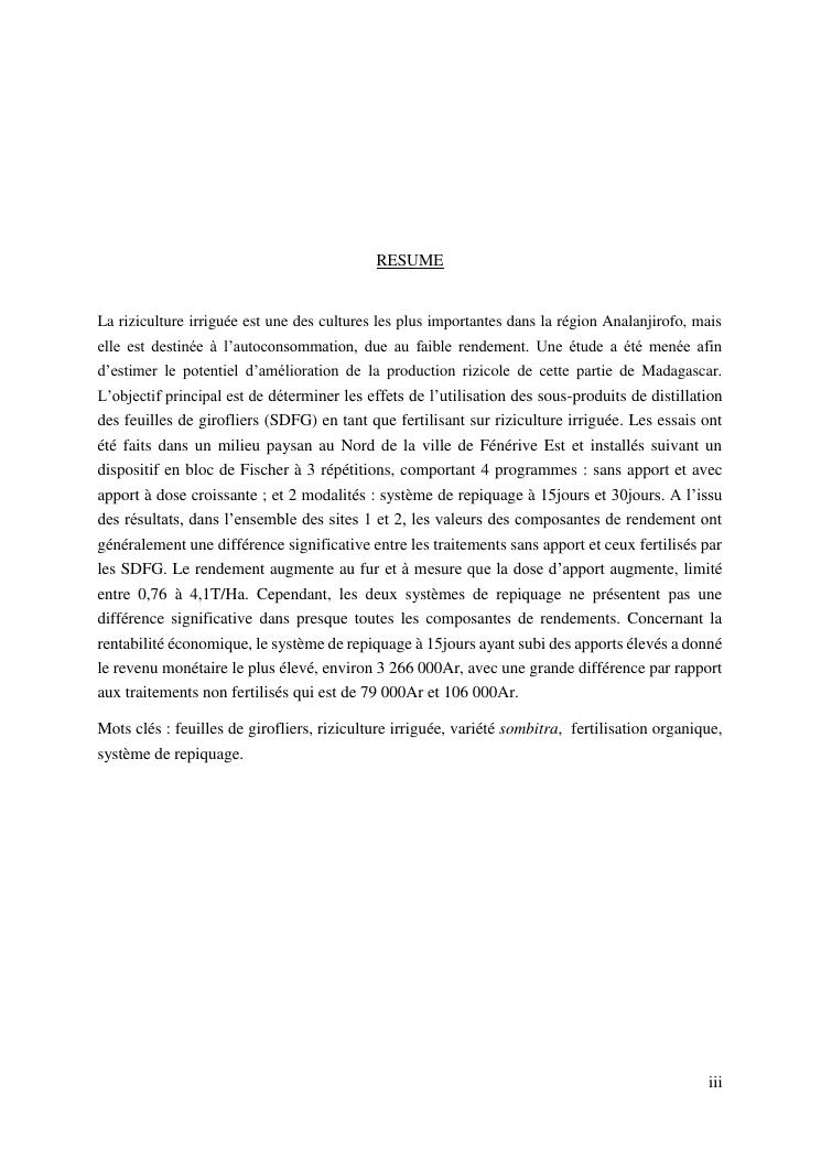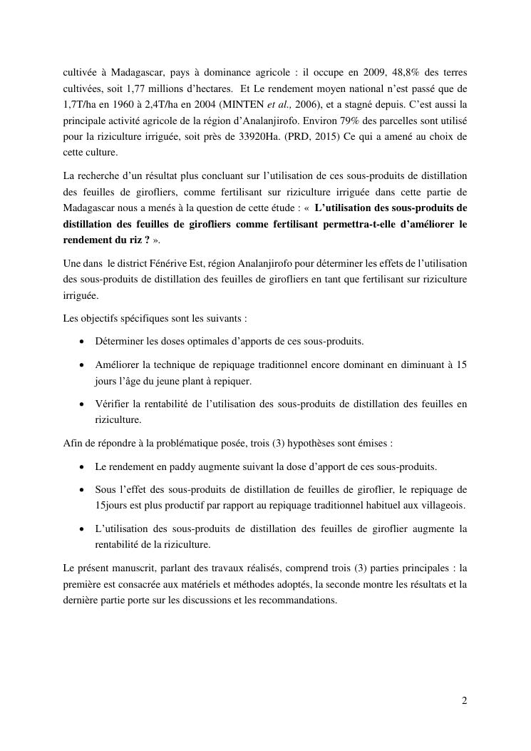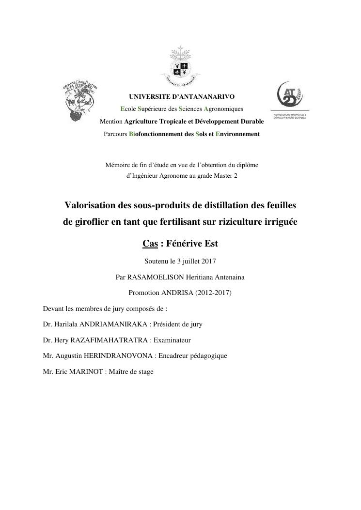 valorisation des sous-produits de distillation des feuilles de giroflier en tant que fertilisant sur riziculture irriguée cas : fénérive est