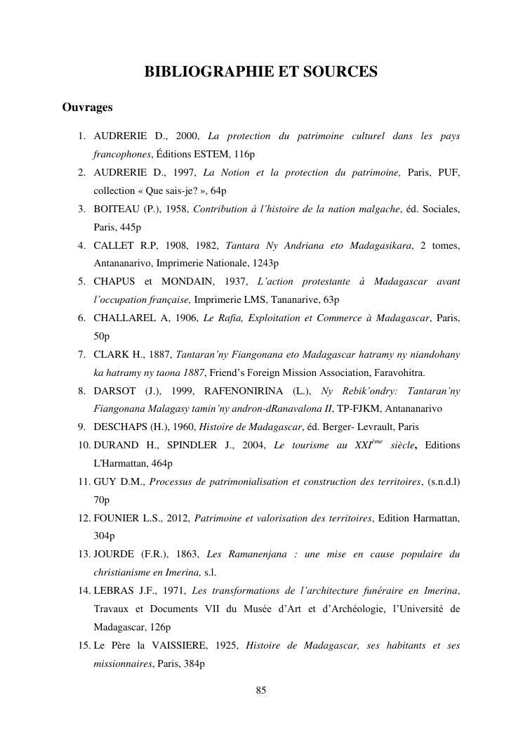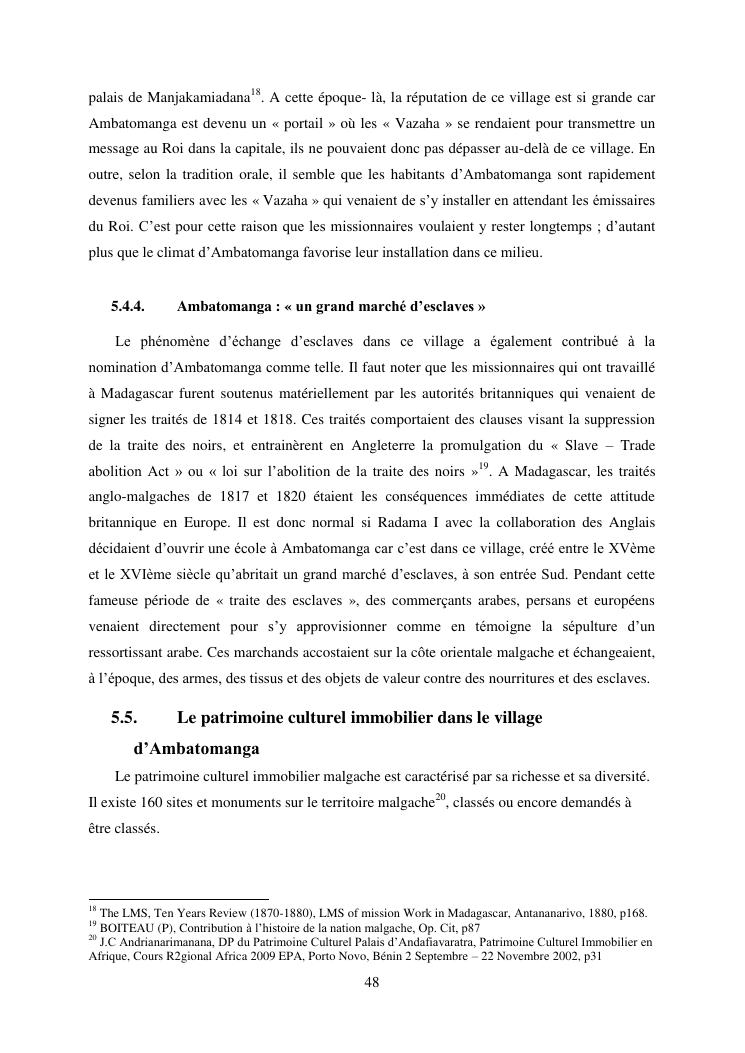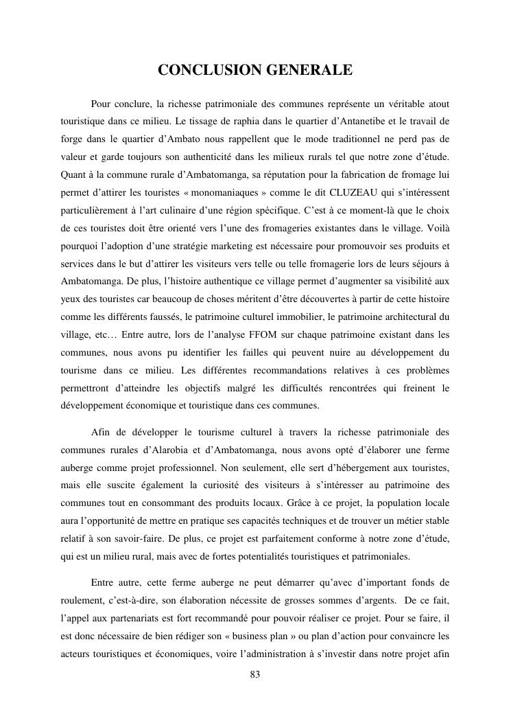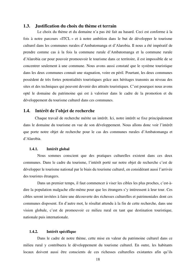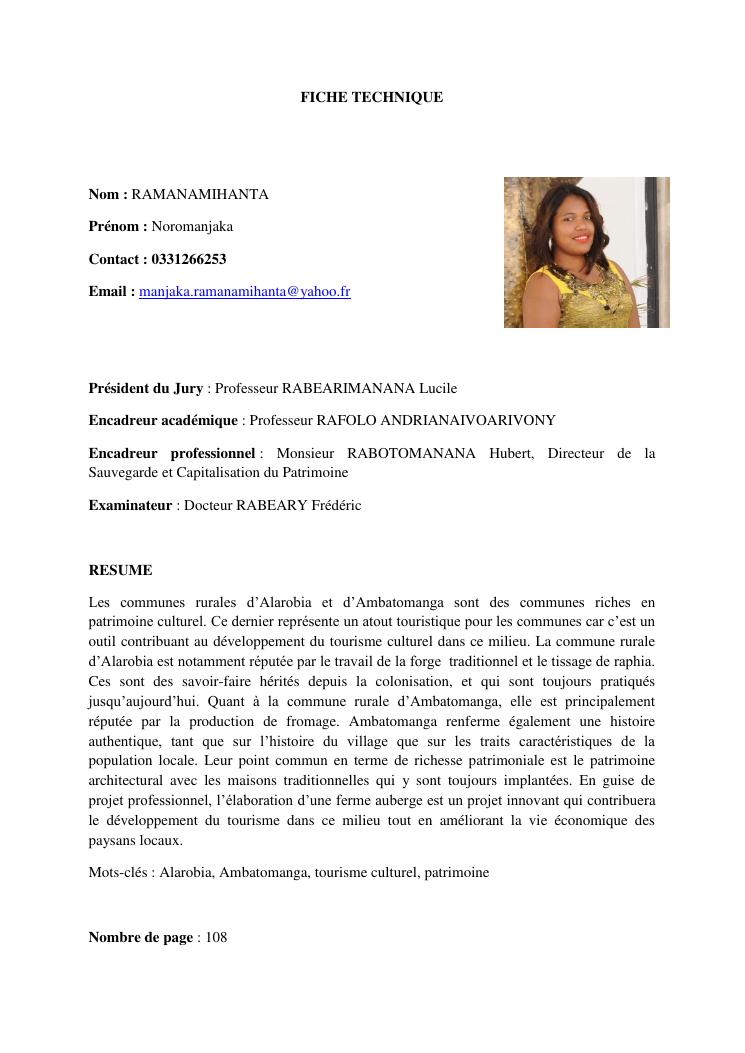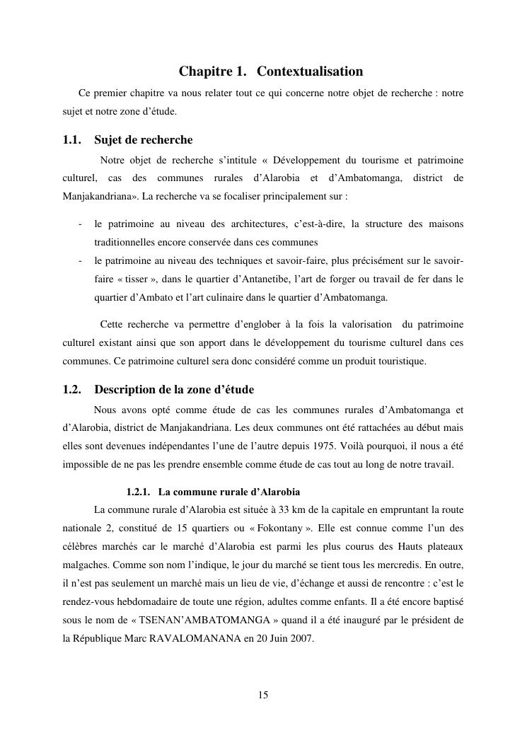 developpement du tourisme et patrimoine culturel : cas des communes rurales d'alarobia et d'ambatomanga
