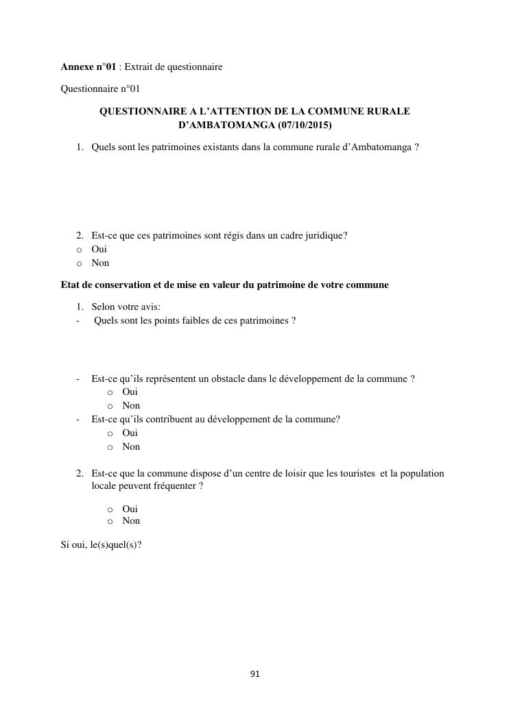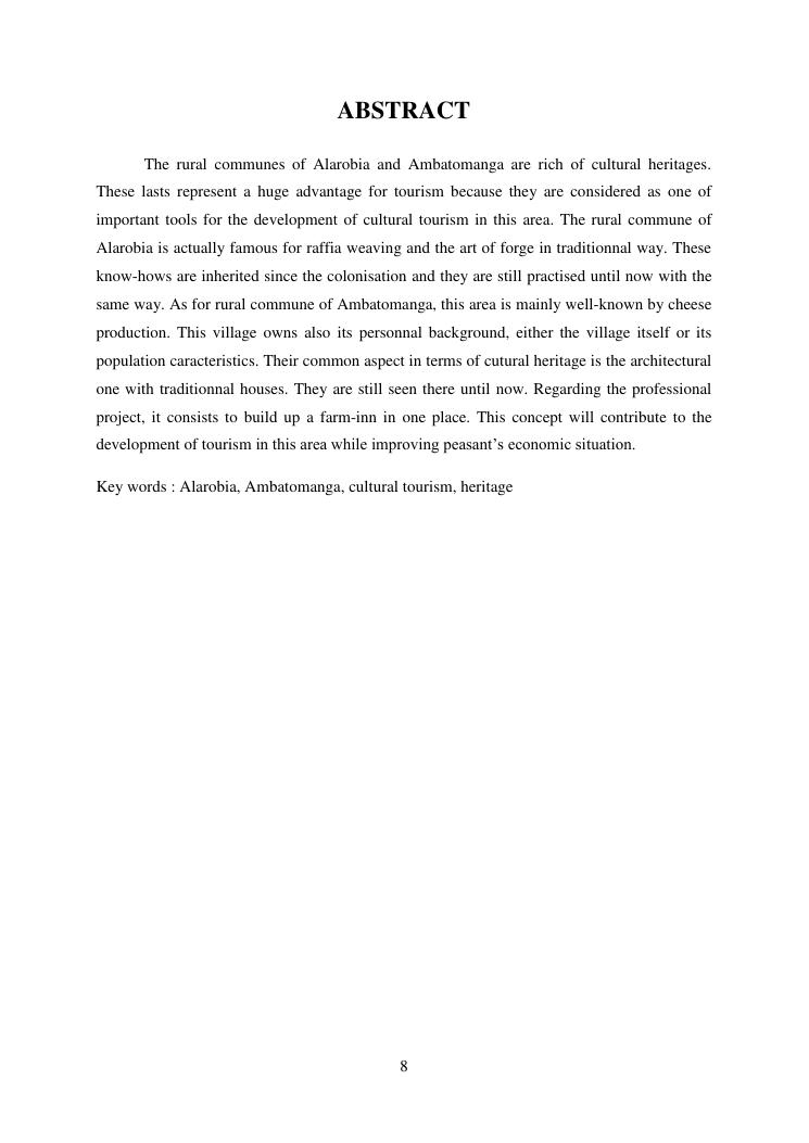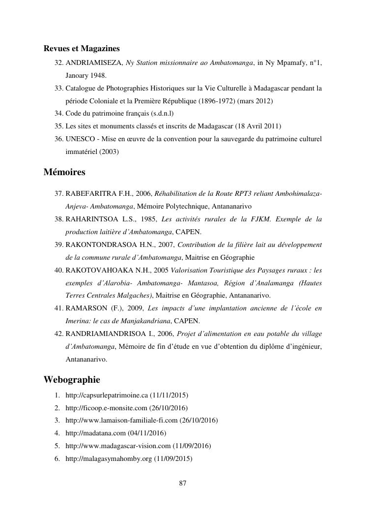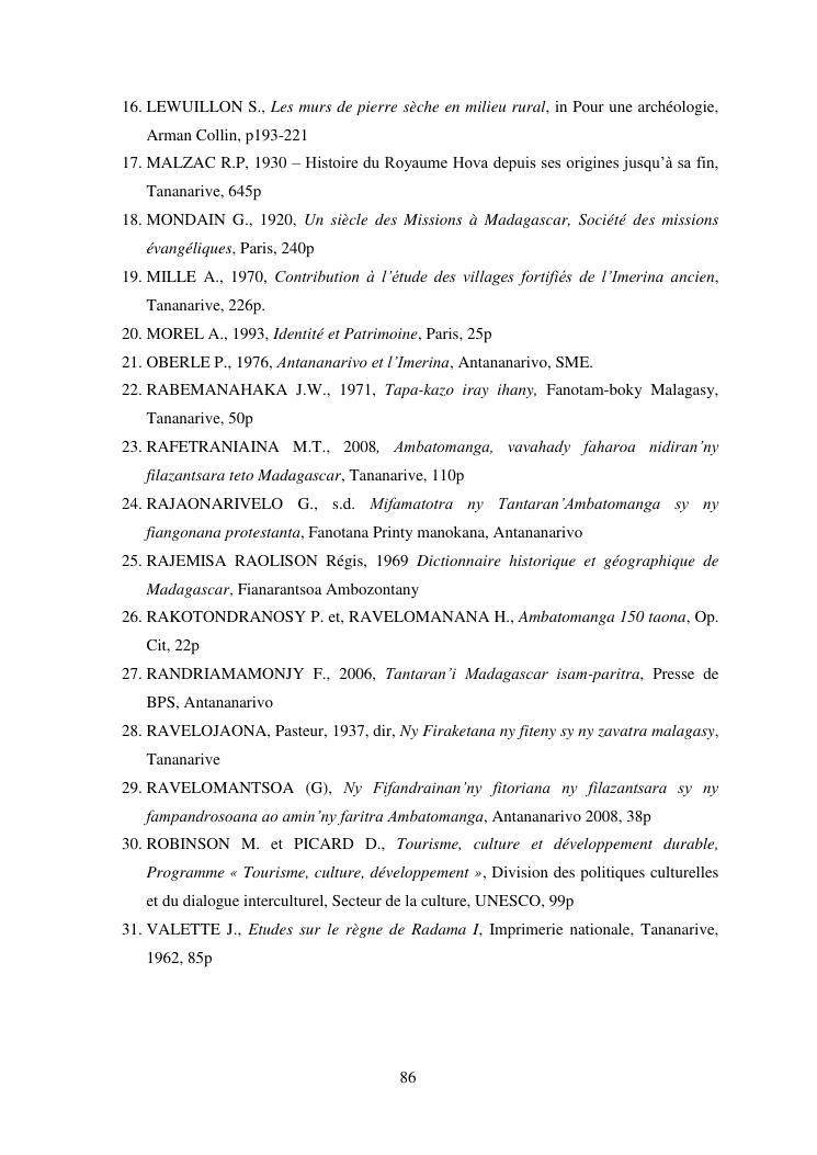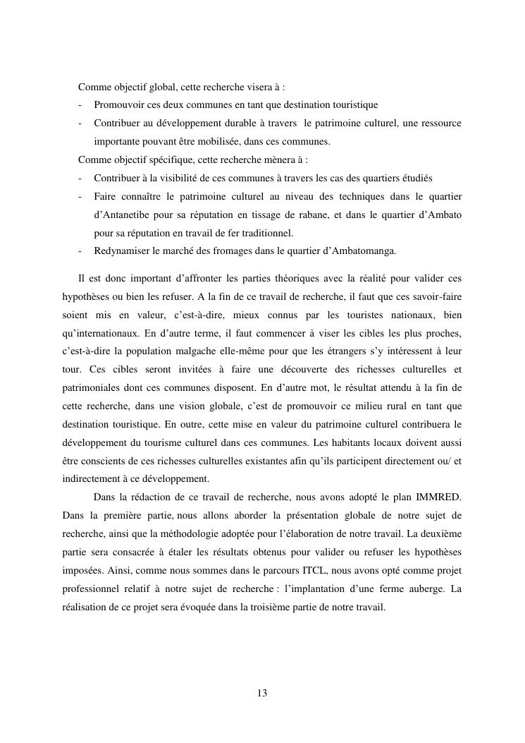 developpement du tourisme et patrimoine culturel : cas des communes rurales d'alarobia et d'ambatomanga