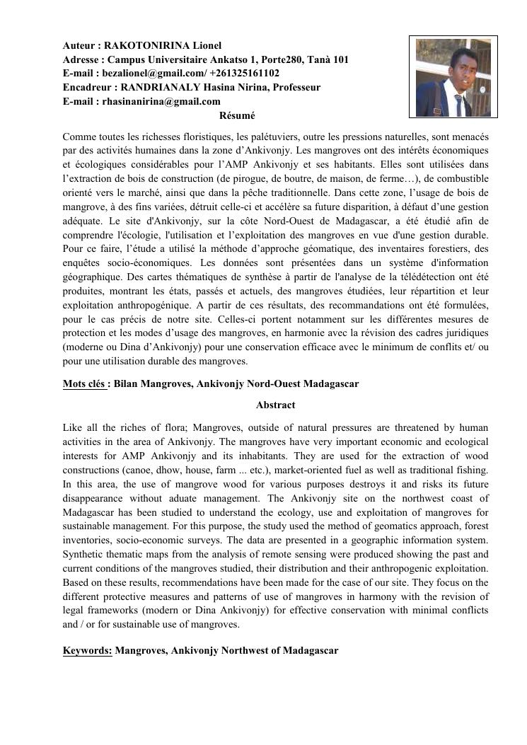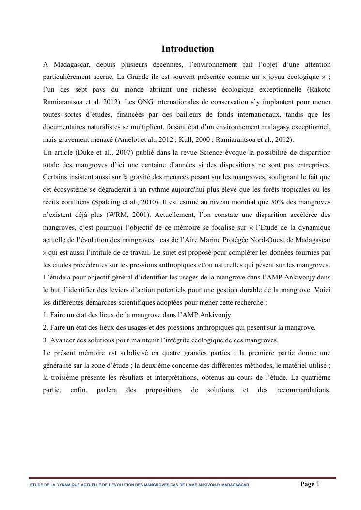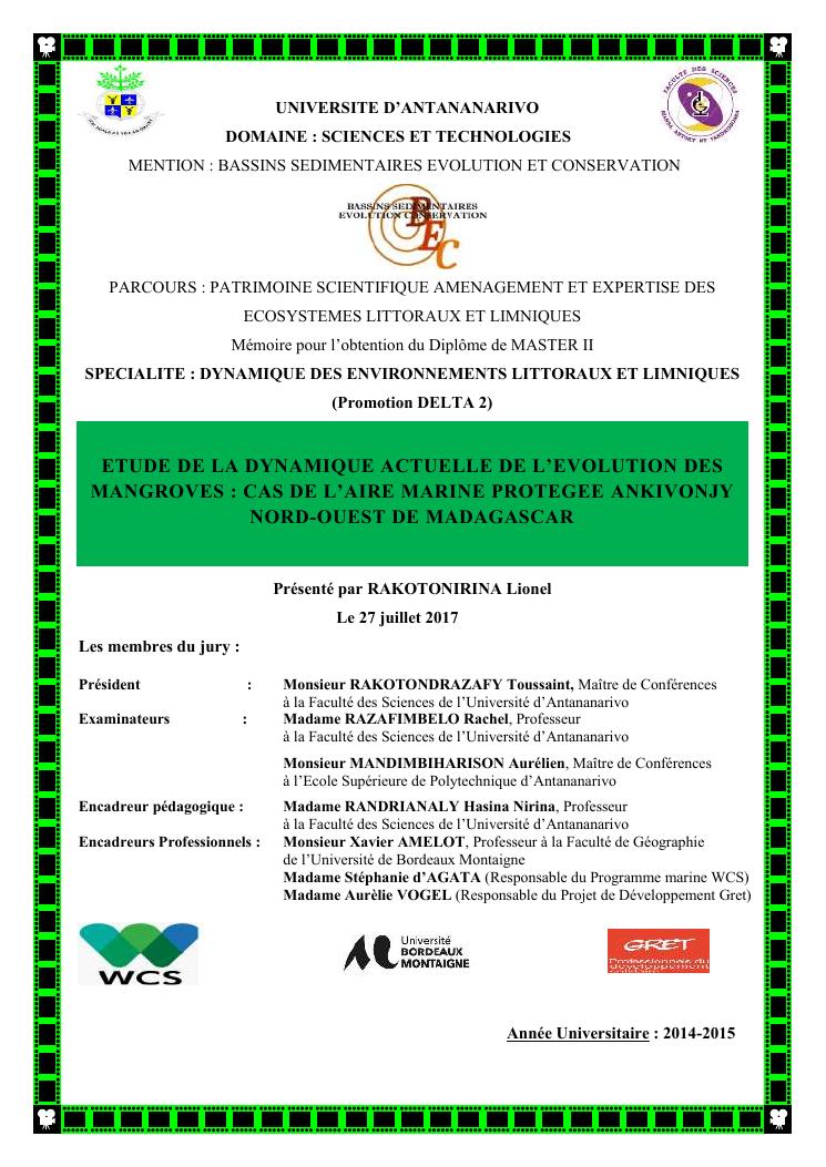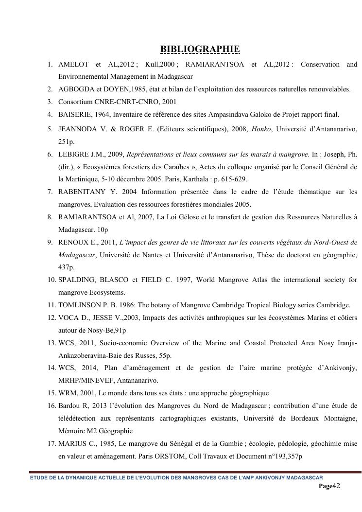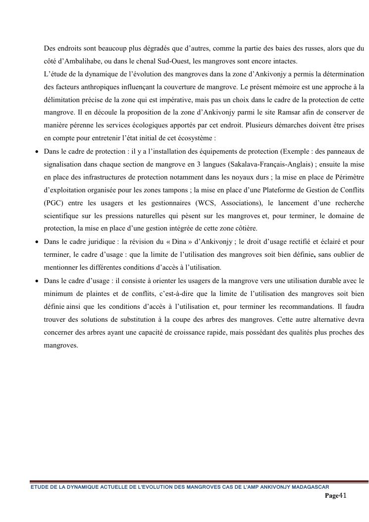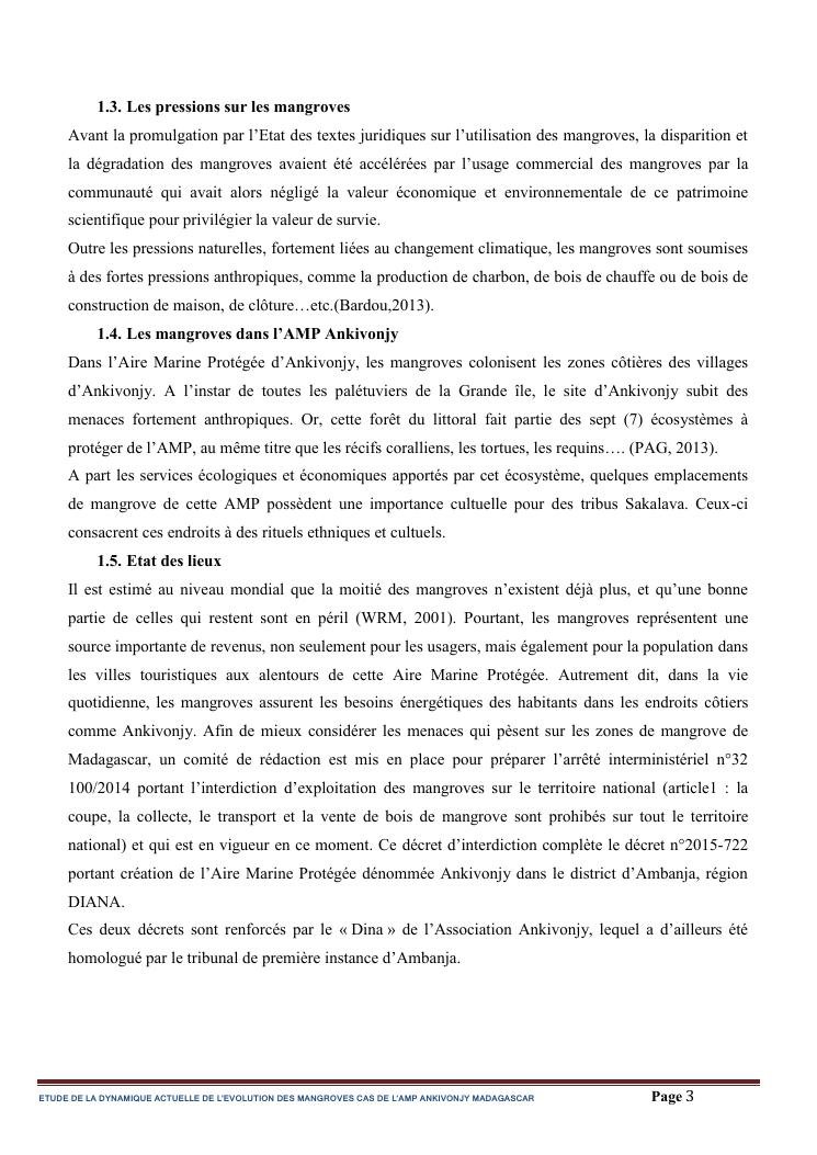 etude de la dynamique actuelle de l'evolution des mangroves : cas de l'aire marine protegee ankivonjy nord-ouest de madagascar
