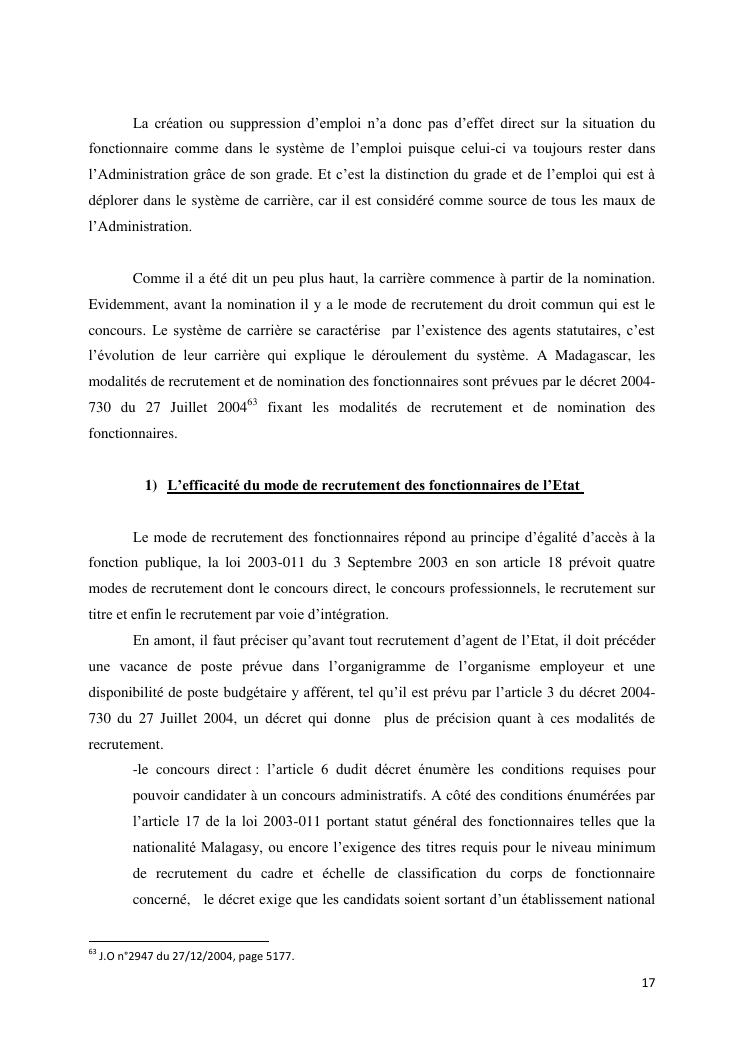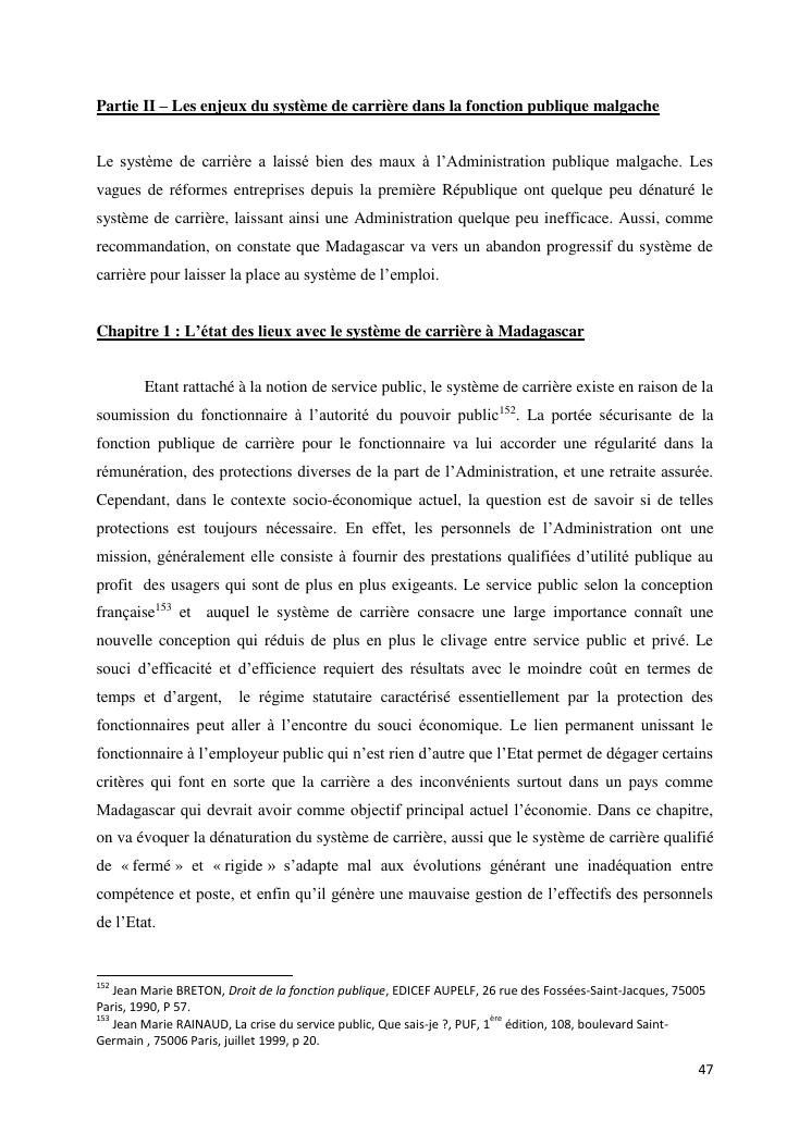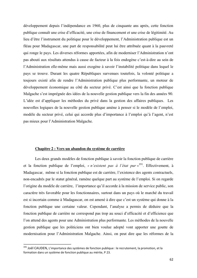 le système de carrière face au souci d'efficacité : le cas de madagascar