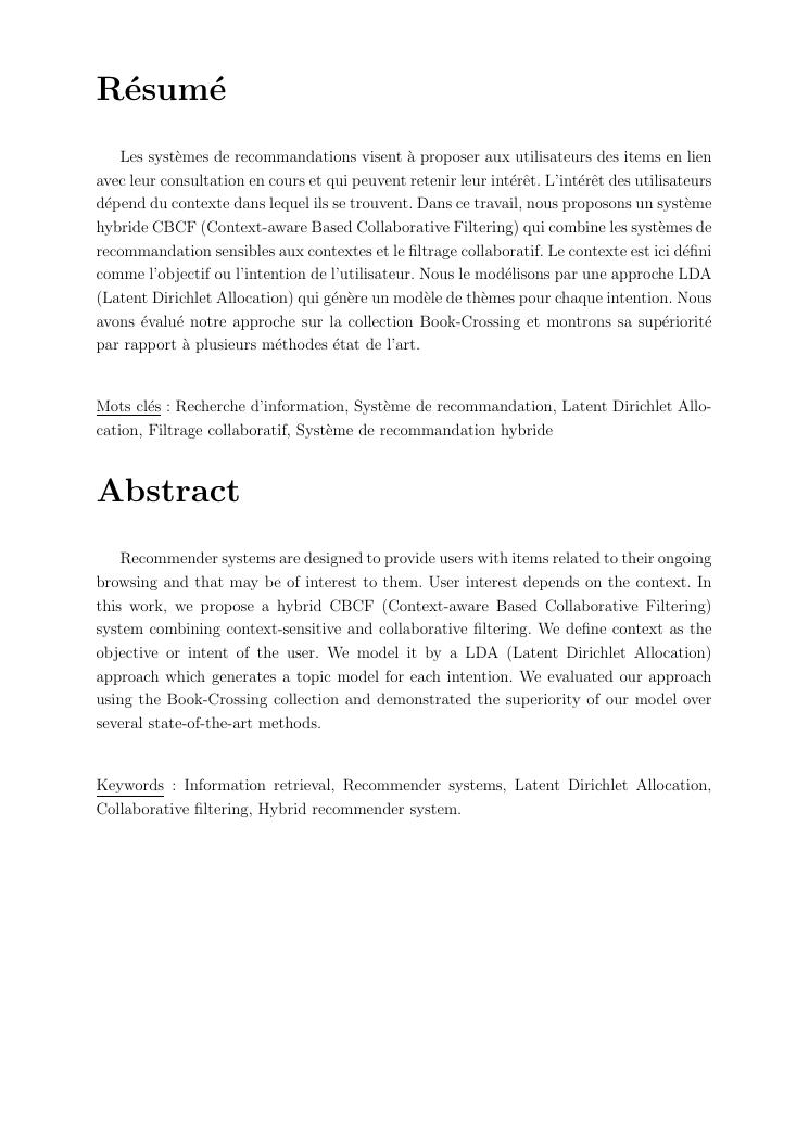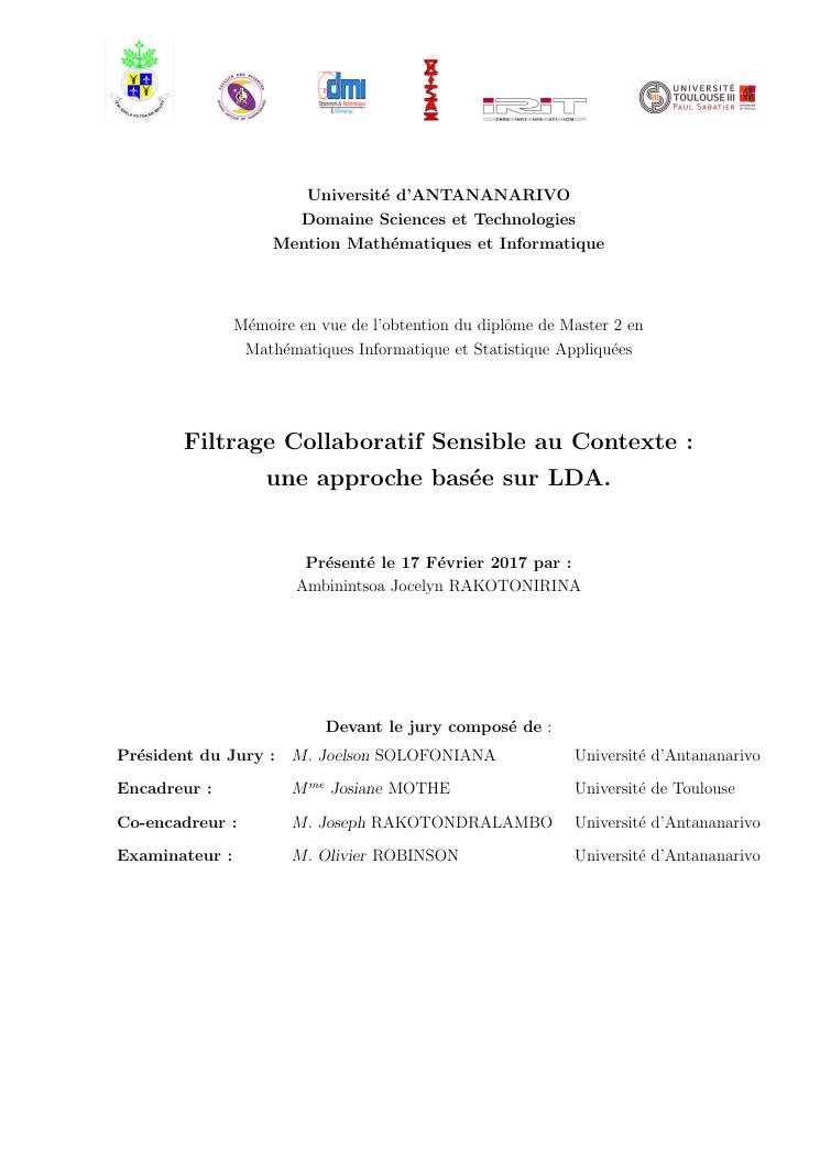 filtrage collaboratif sensible au contexte : une approche basée sur lda