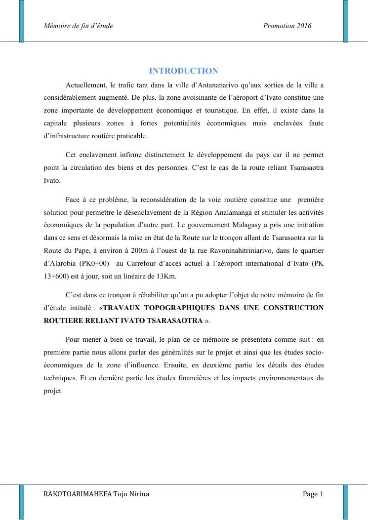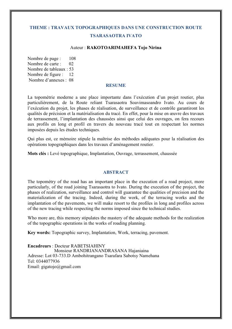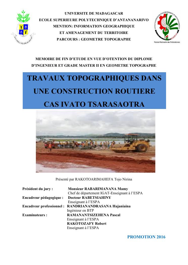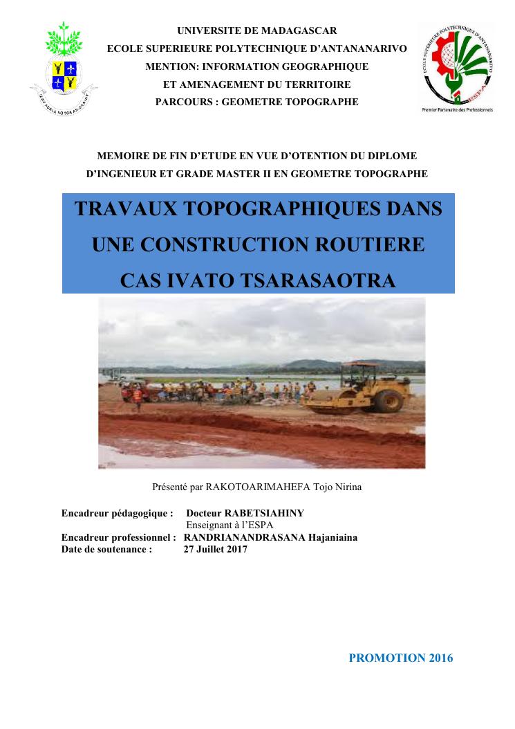 travaux topographiques dans une construction routiere cas ivato tsarasaotra