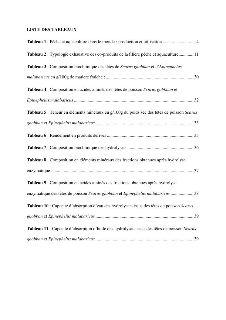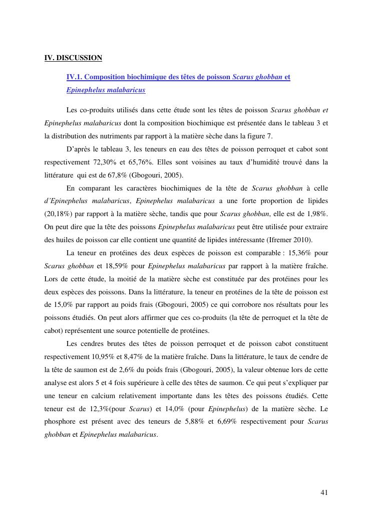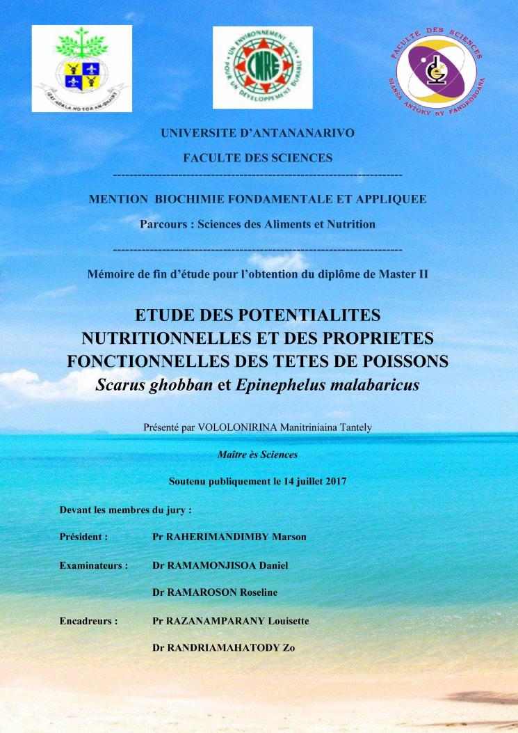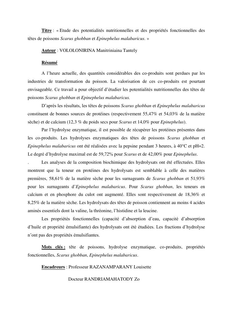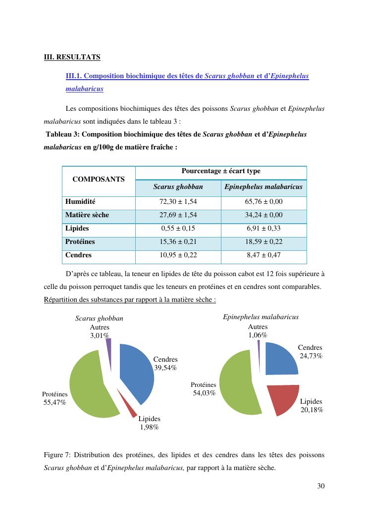 etude des potentialités nutritionnelles et des propriétés fonctionnelles des têtes de poissons scarus ghobban et epinephelus malabaricus