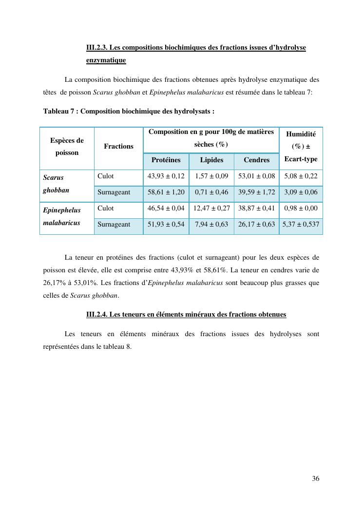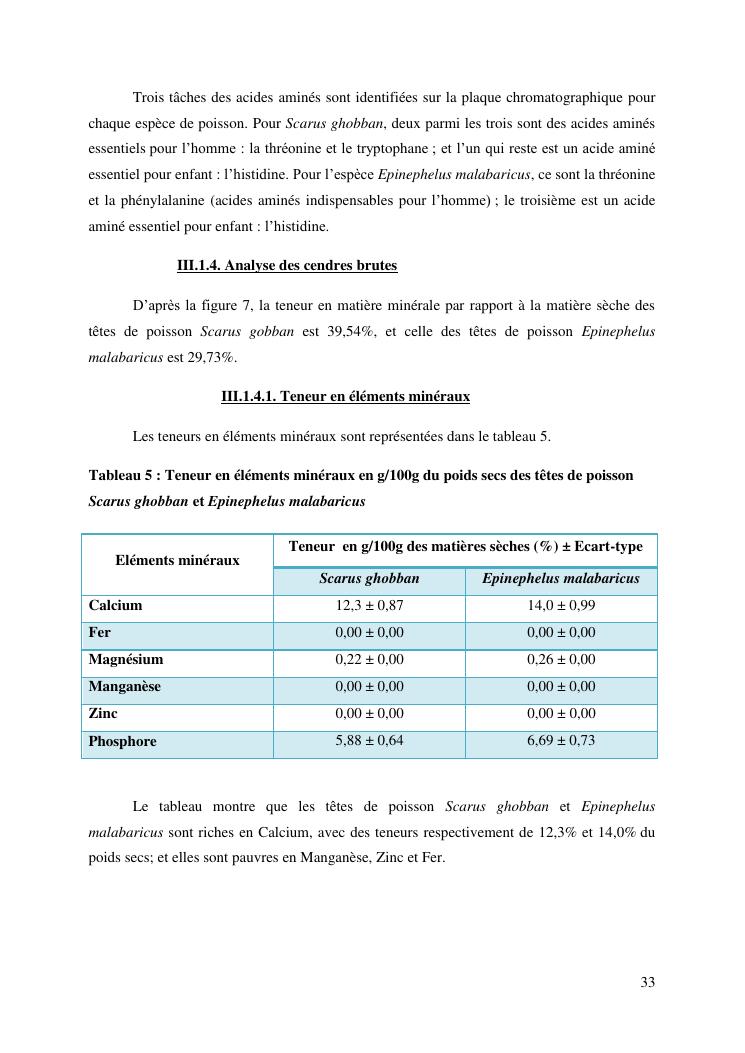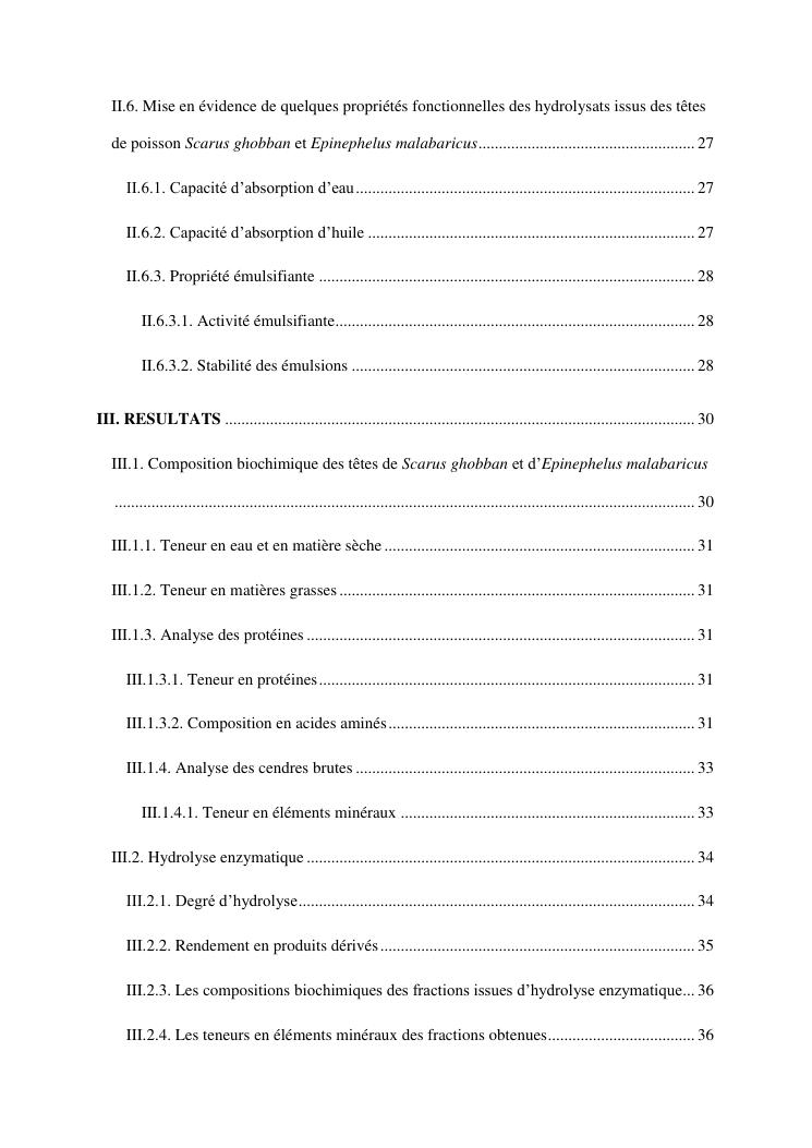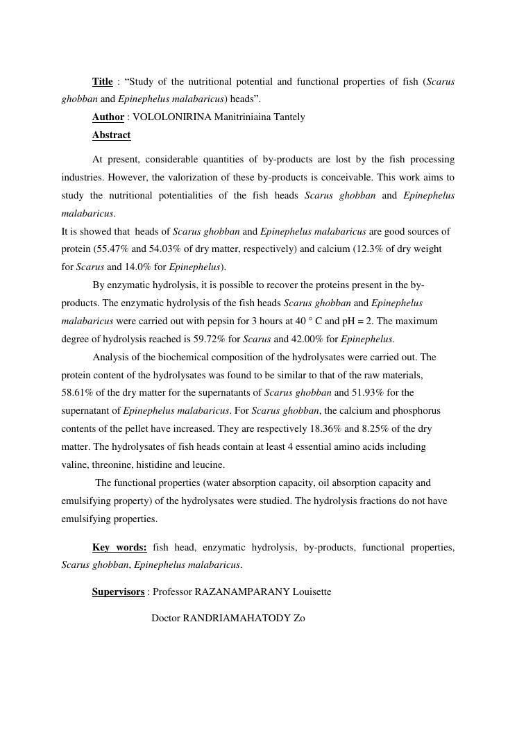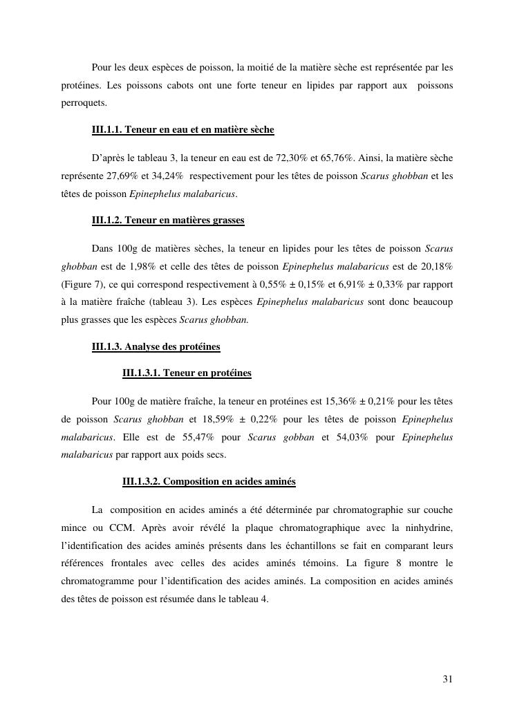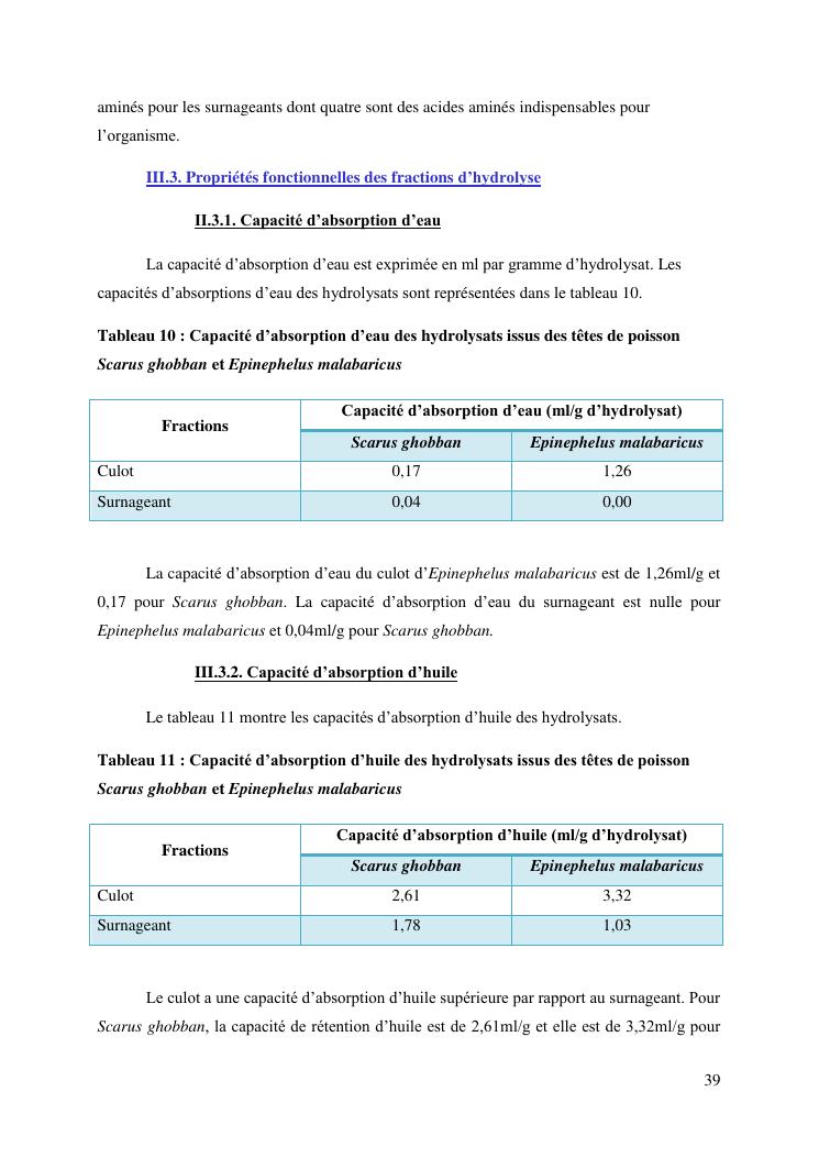etude des potentialités nutritionnelles et des propriétés fonctionnelles des têtes de poissons scarus ghobban et epinephelus malabaricus