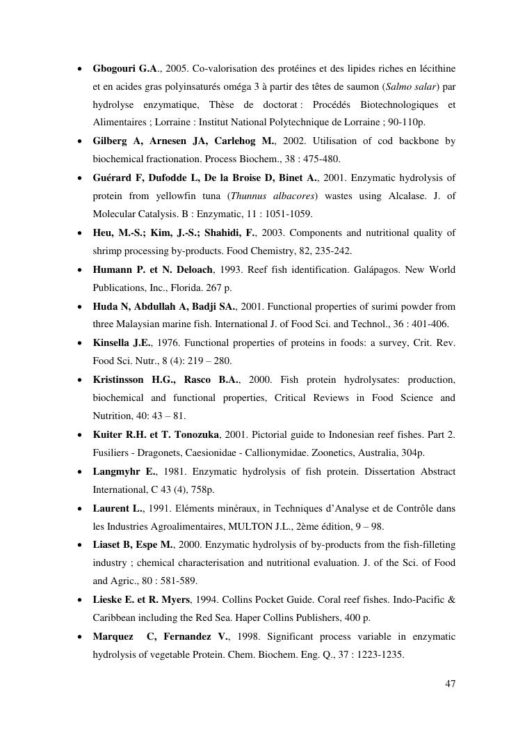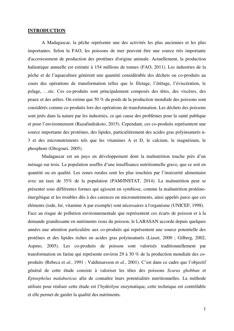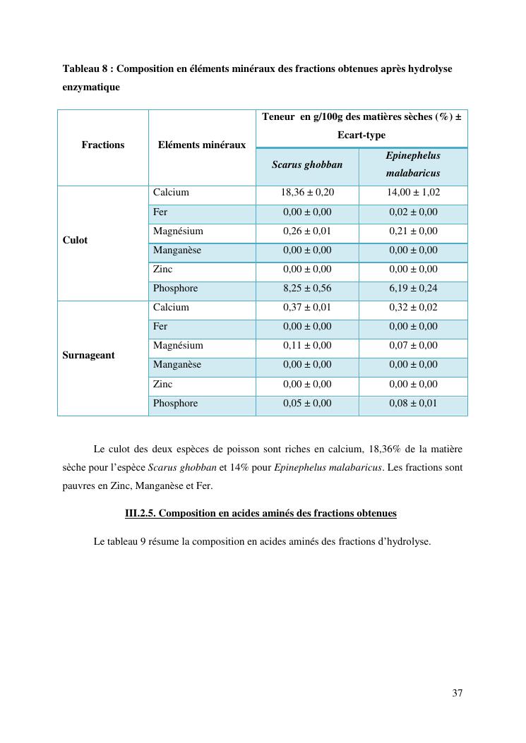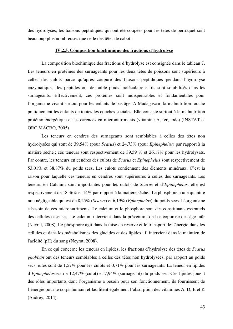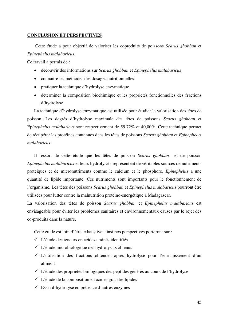 etude des potentialités nutritionnelles et des propriétés fonctionnelles des têtes de poissons scarus ghobban et epinephelus malabaricus