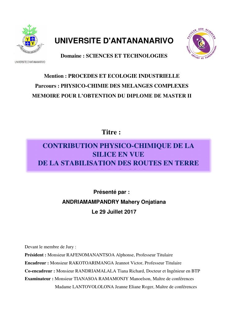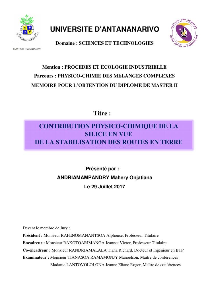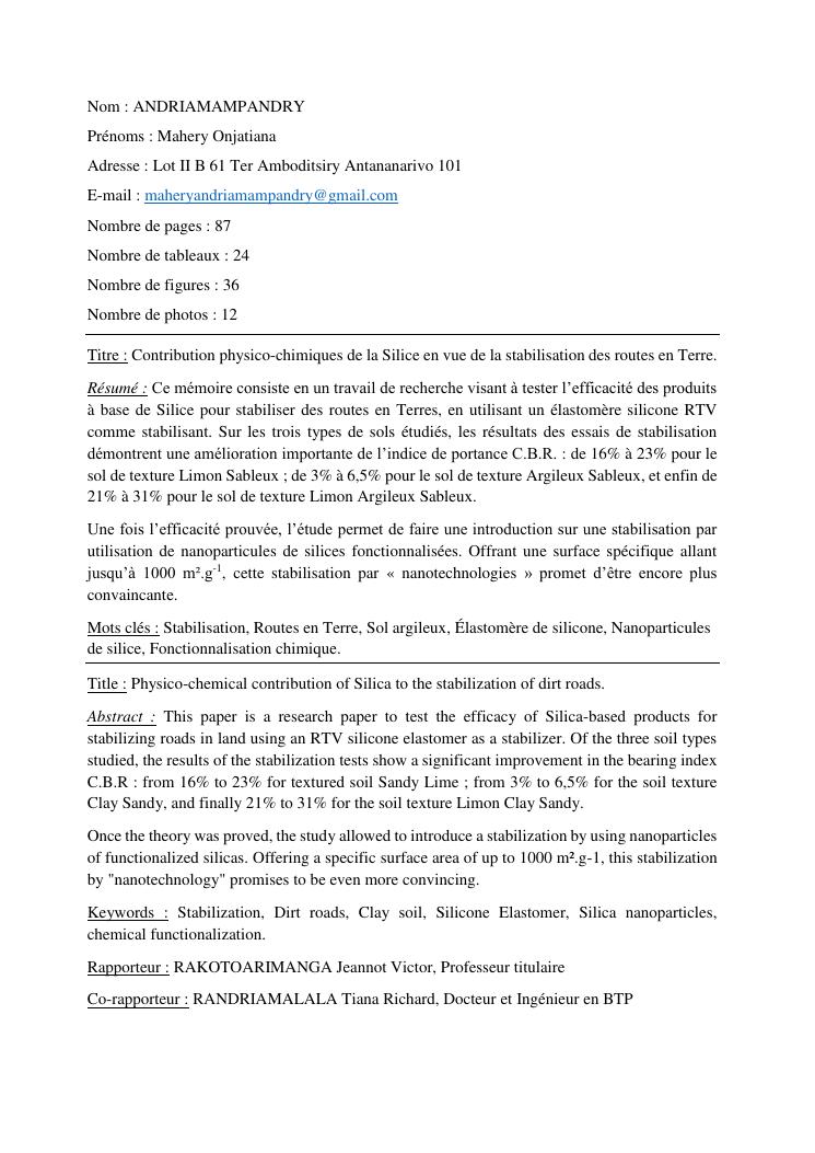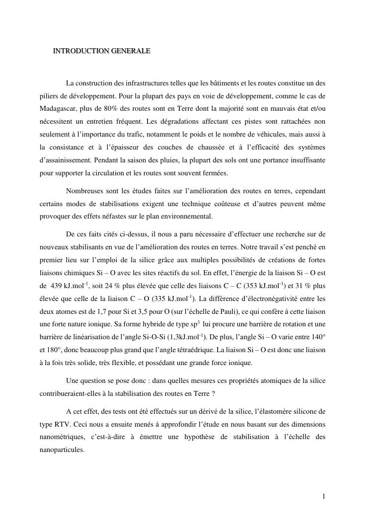 contribution physico-chimique de la silice en vue de la stabilisation des routes en terre