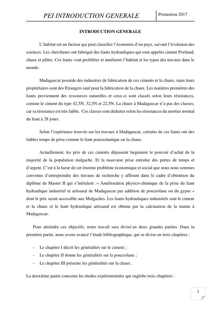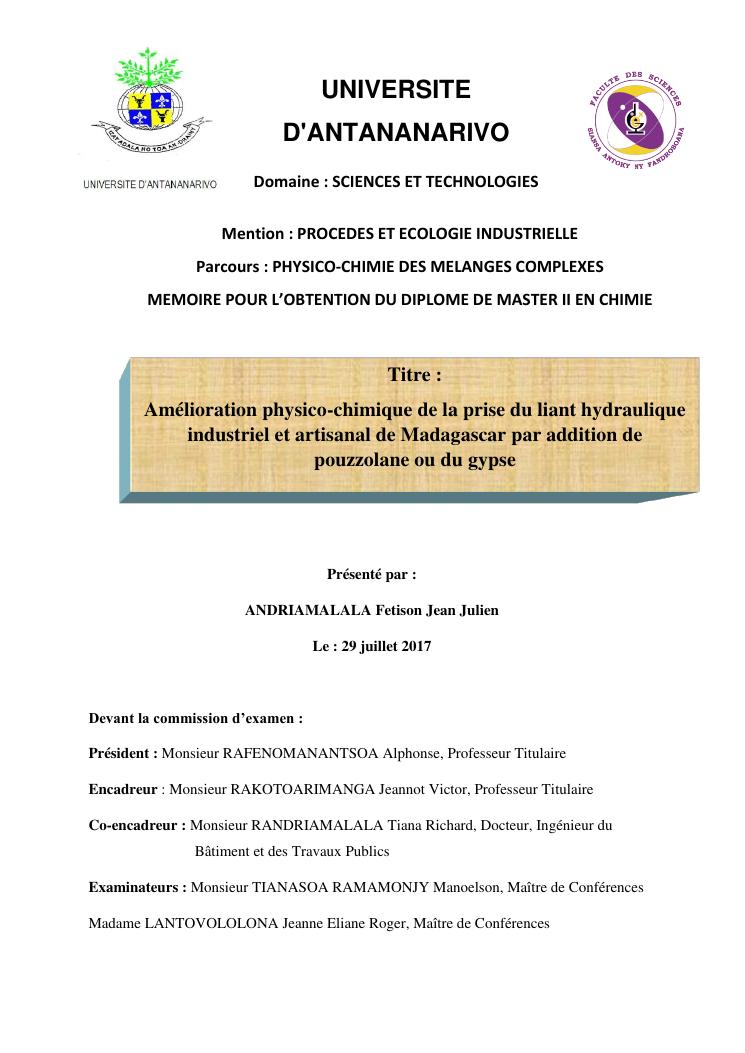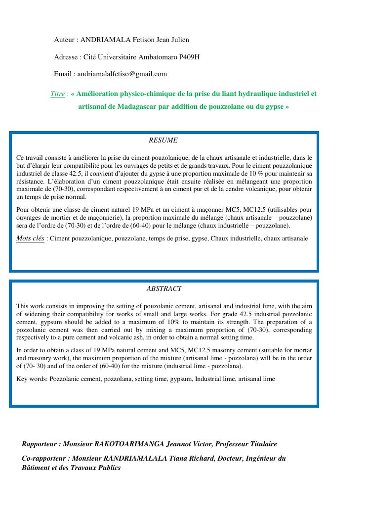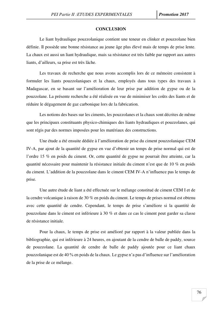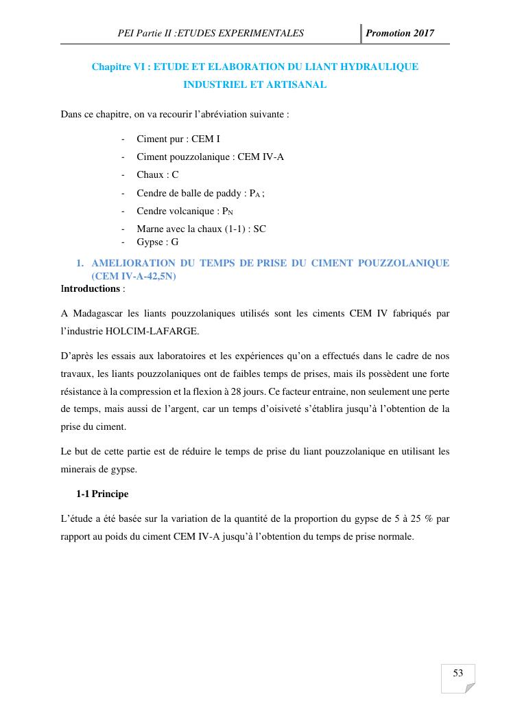 amélioration physico-chimique de la prise du liant hydraulique industriel et artisanal de madagascar par addition de pouzzolane ou du gypse