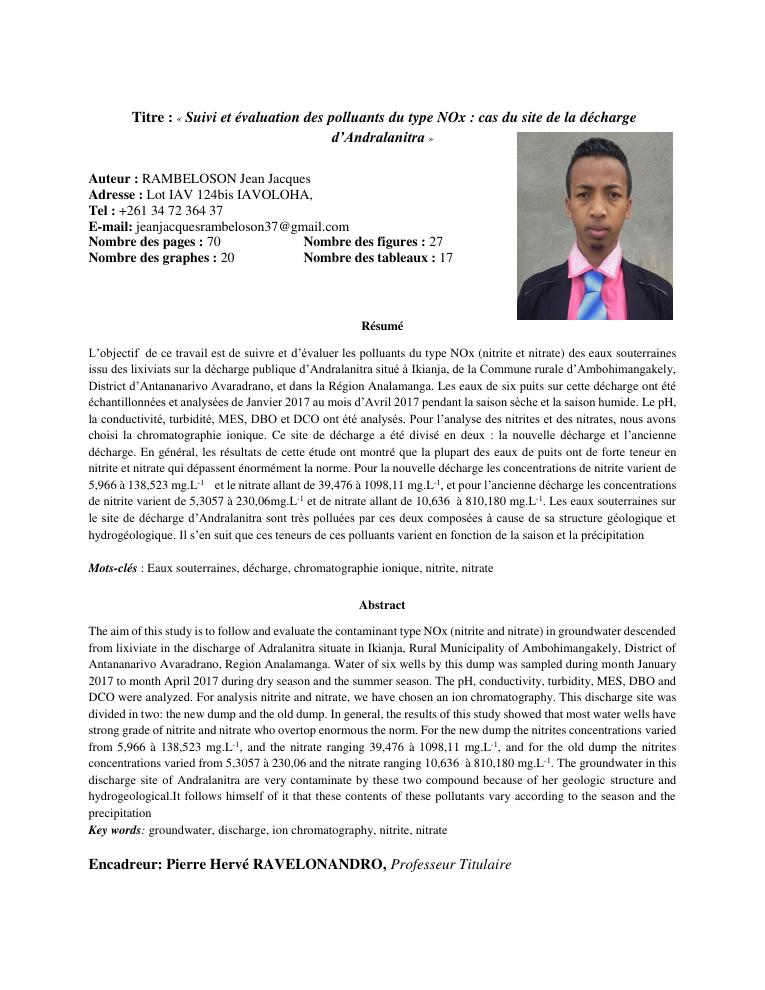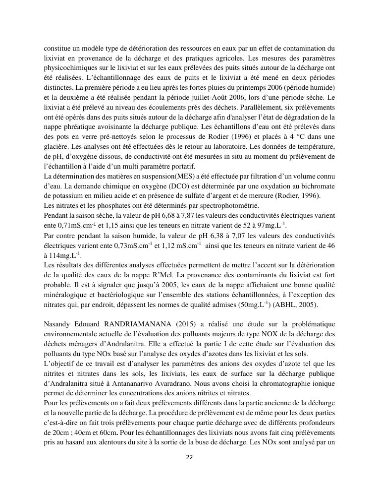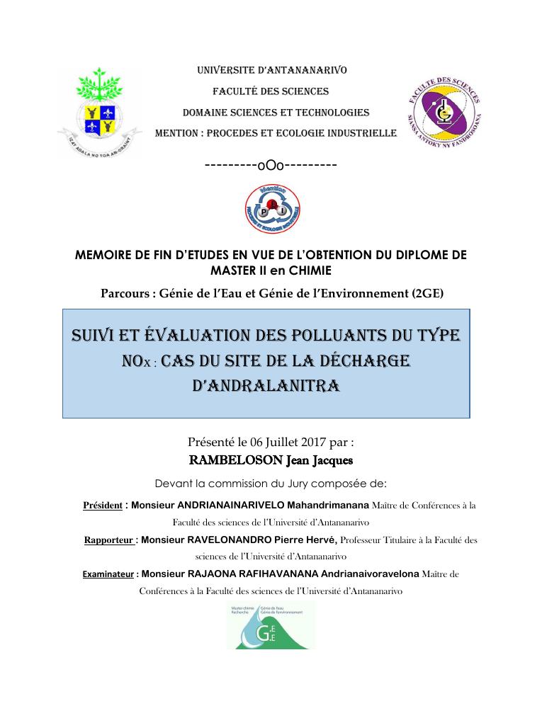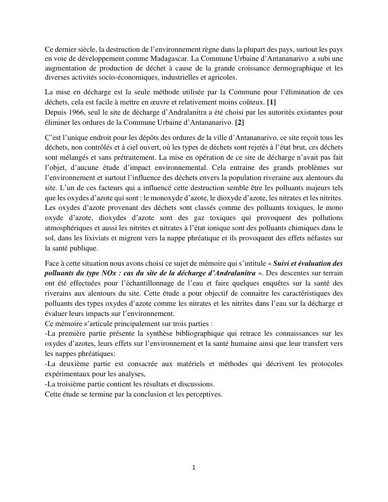suivi et évaluation des polluants du type nox : cas du site de la décharge d'andralanitra