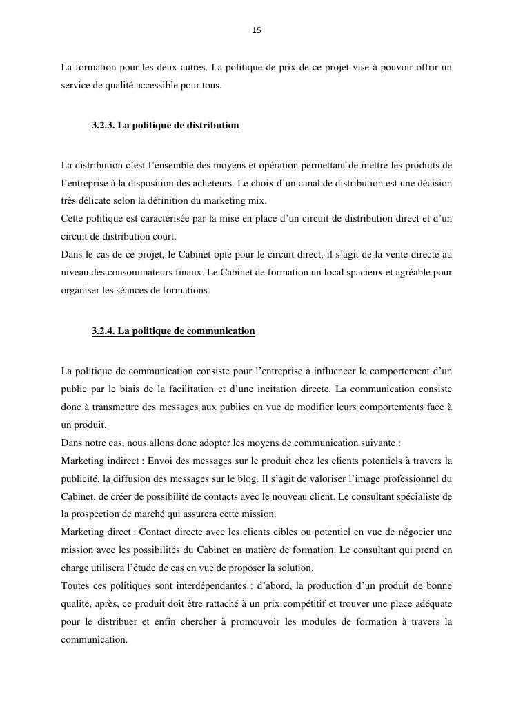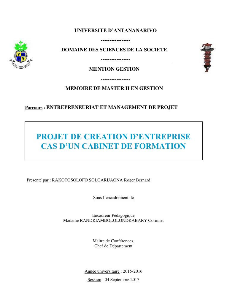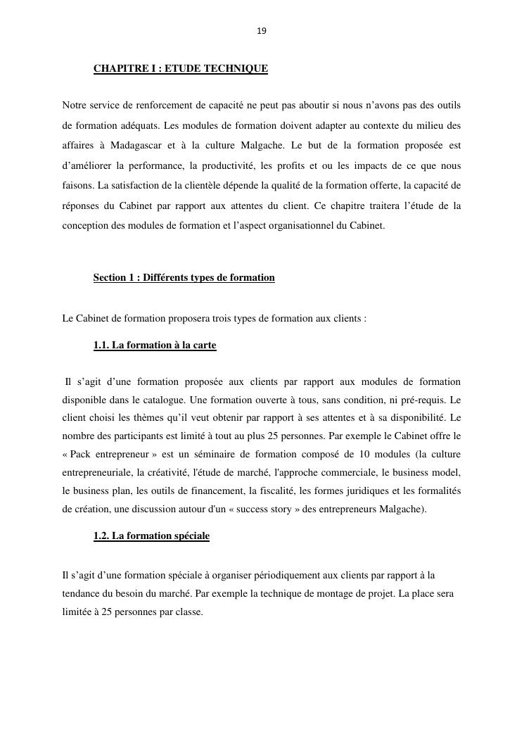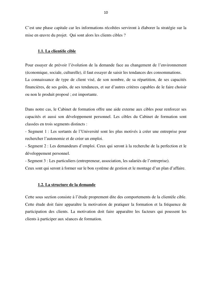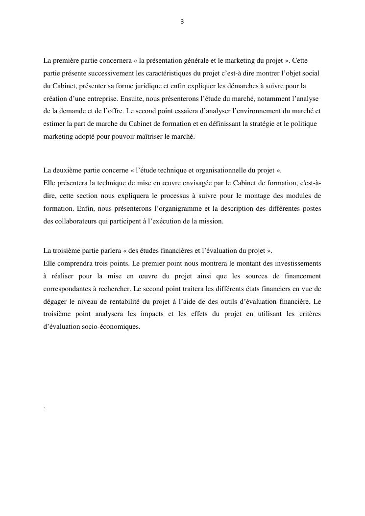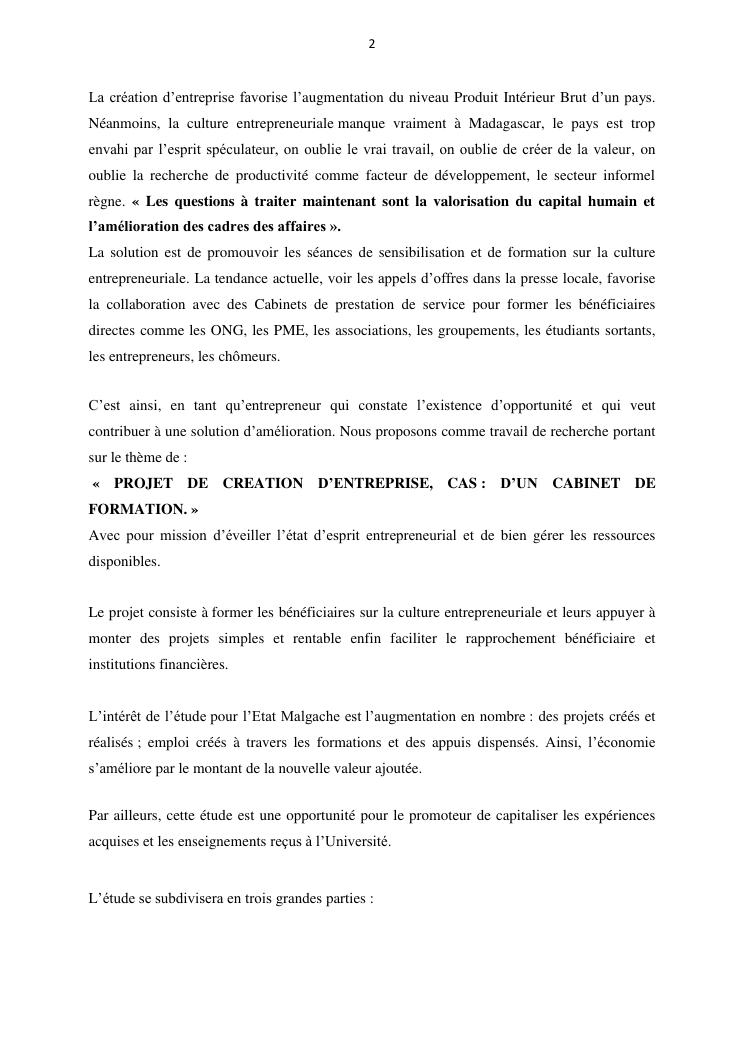 projet de creation d'entreprise cas d'un cabinet de formation