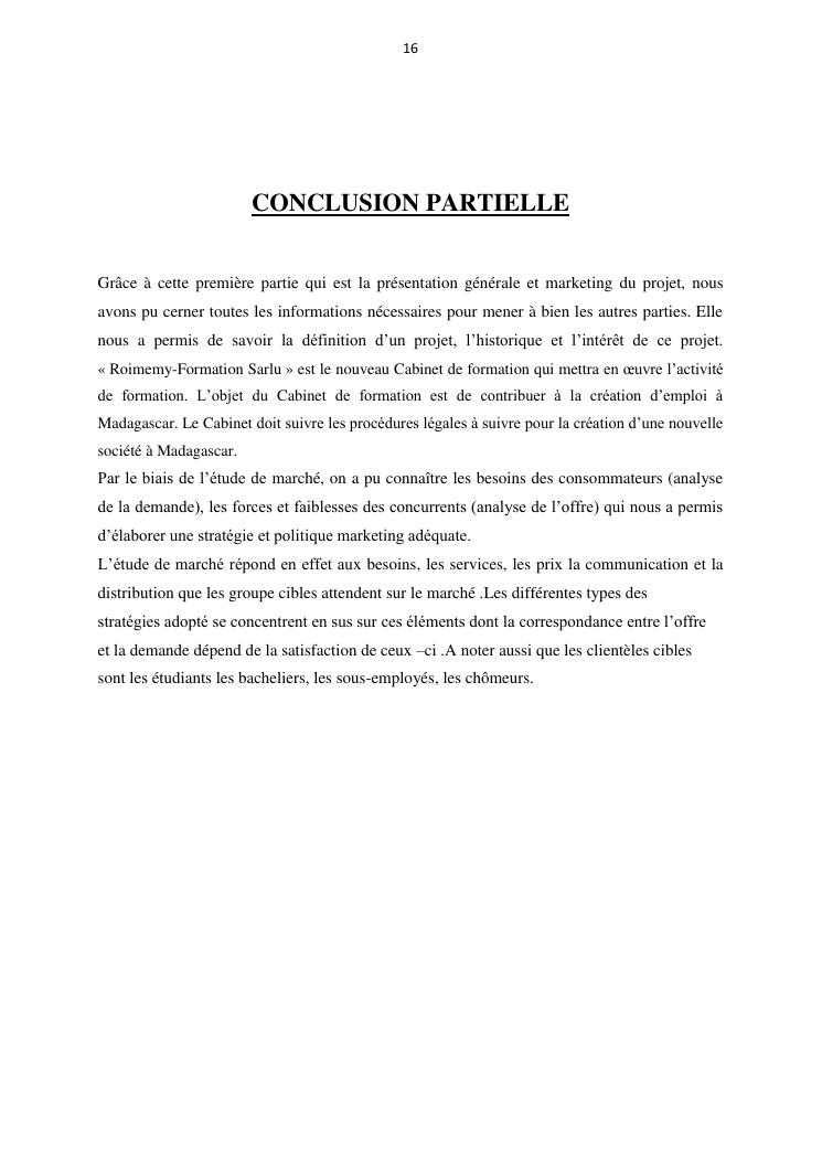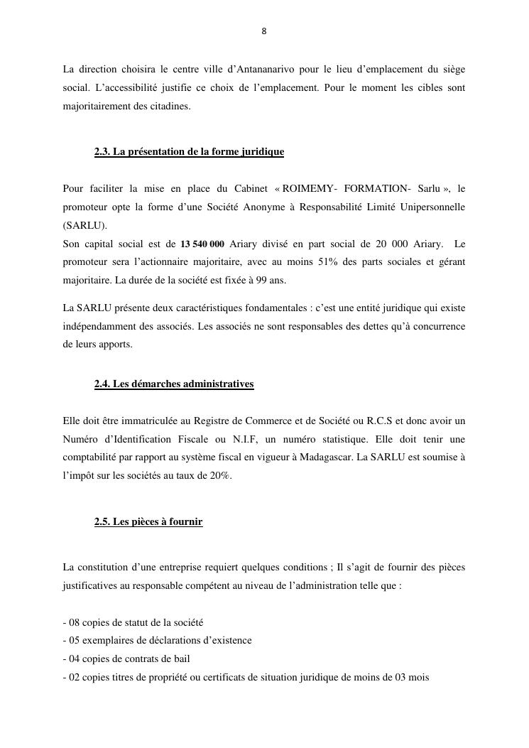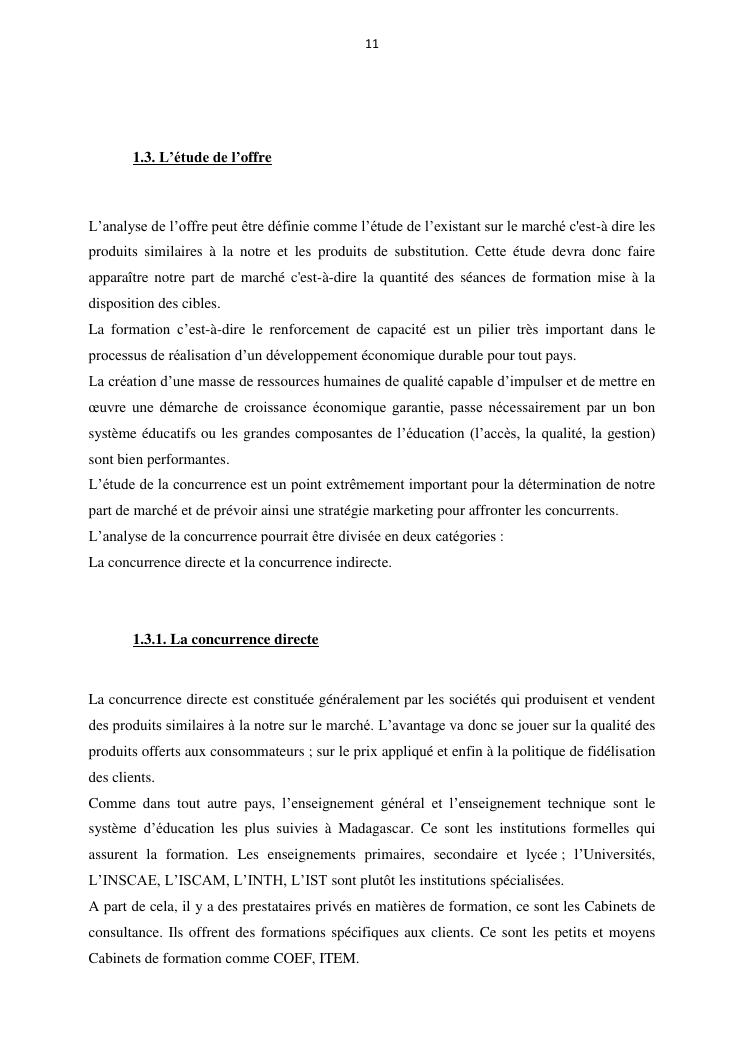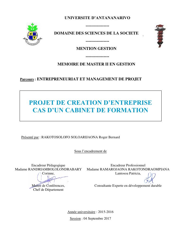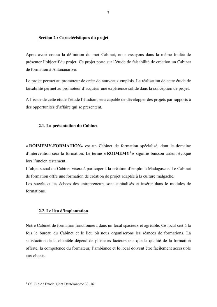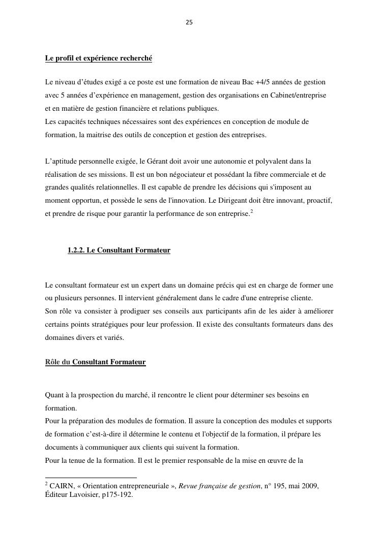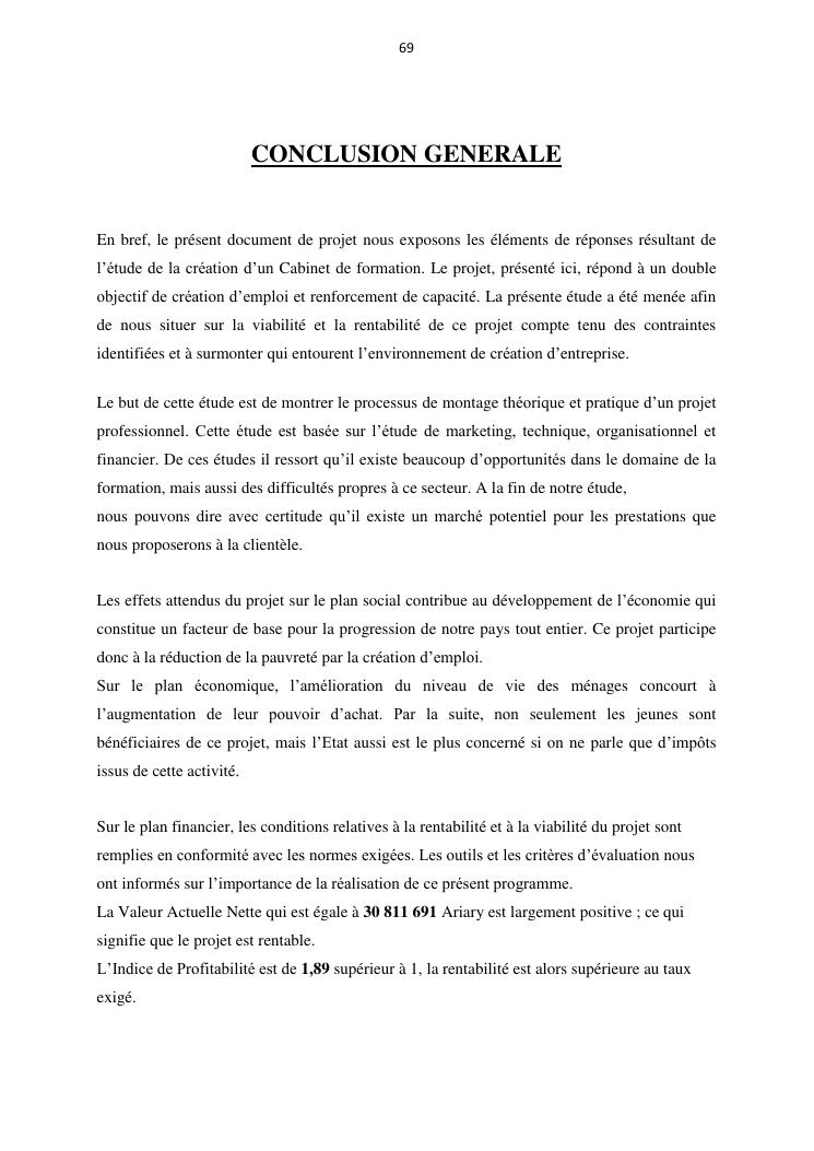 projet de creation d'entreprise cas d'un cabinet de formation