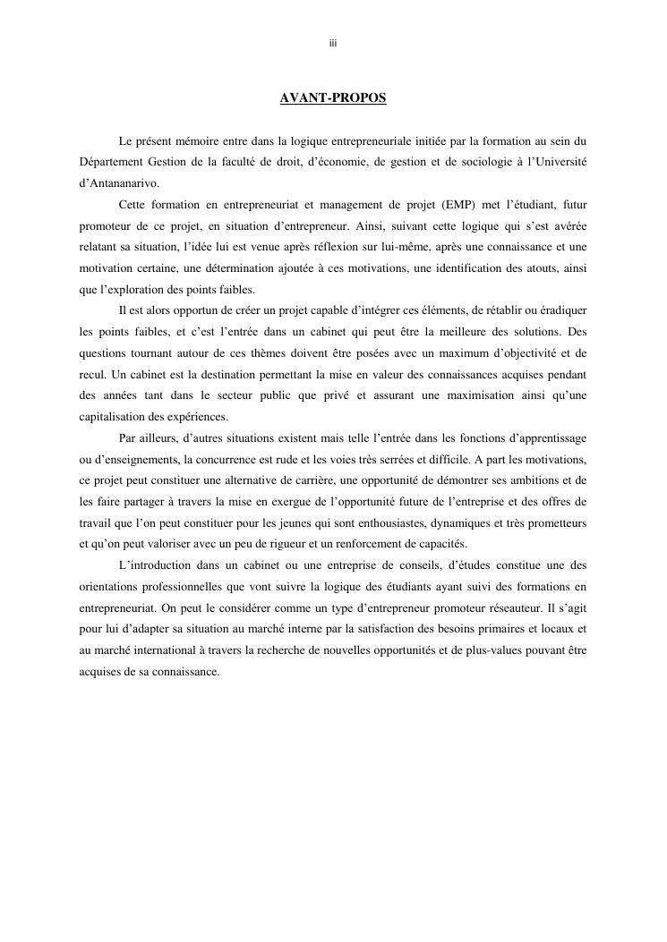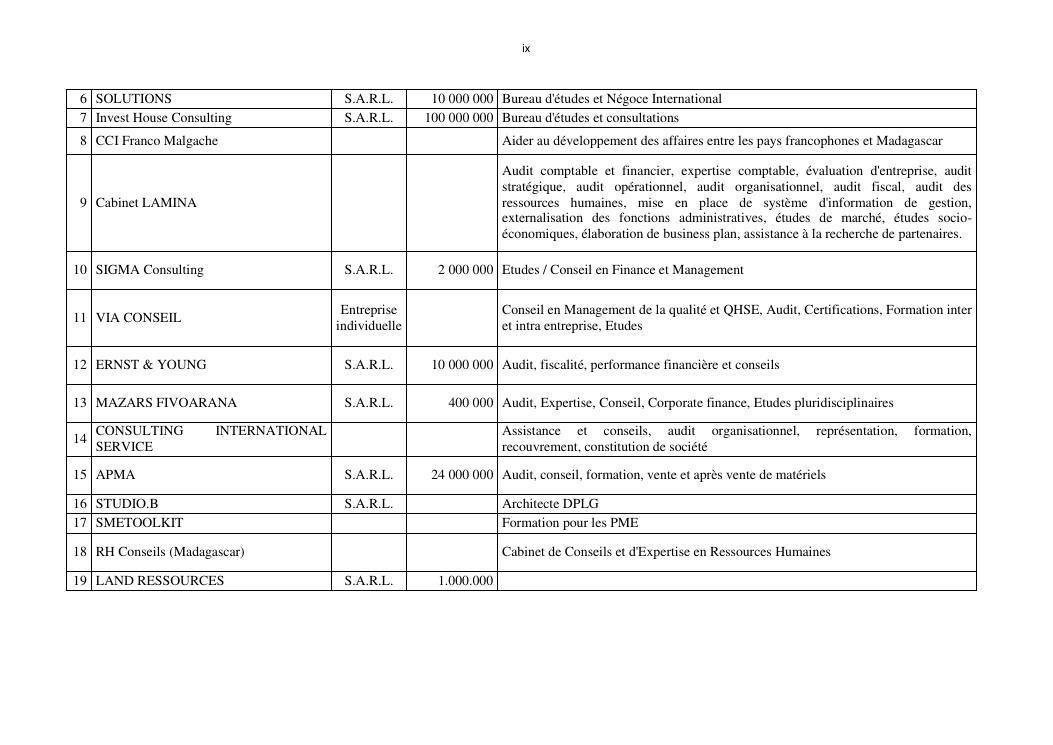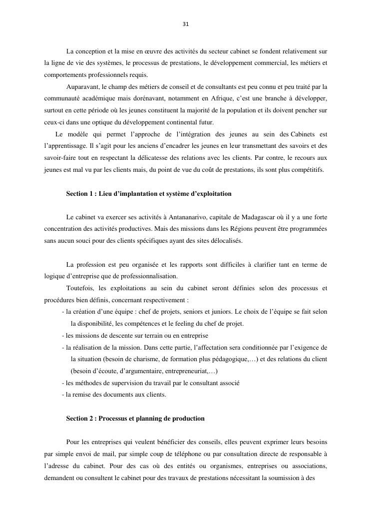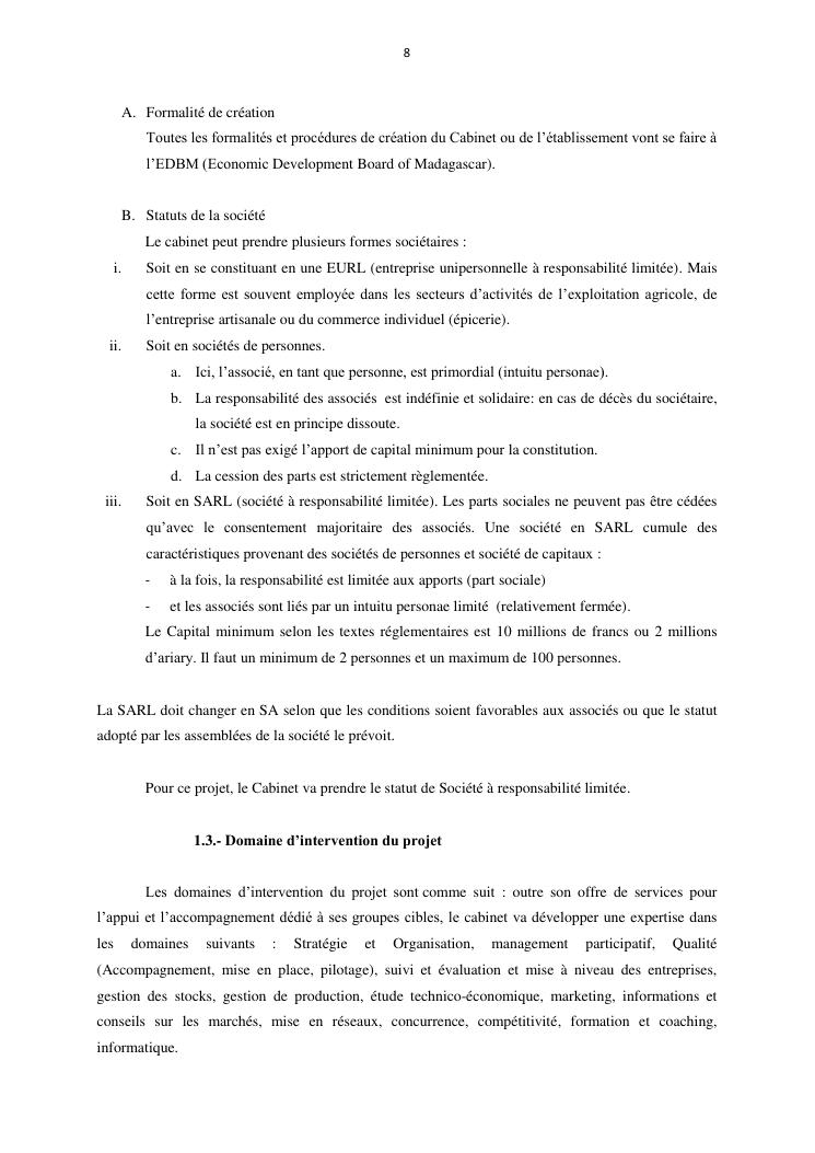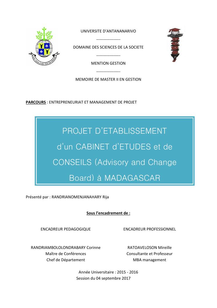 projet d'etablissement d'un cabinet d'etudes et de conseils (advisory and change board) à madagascar