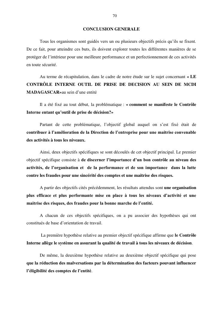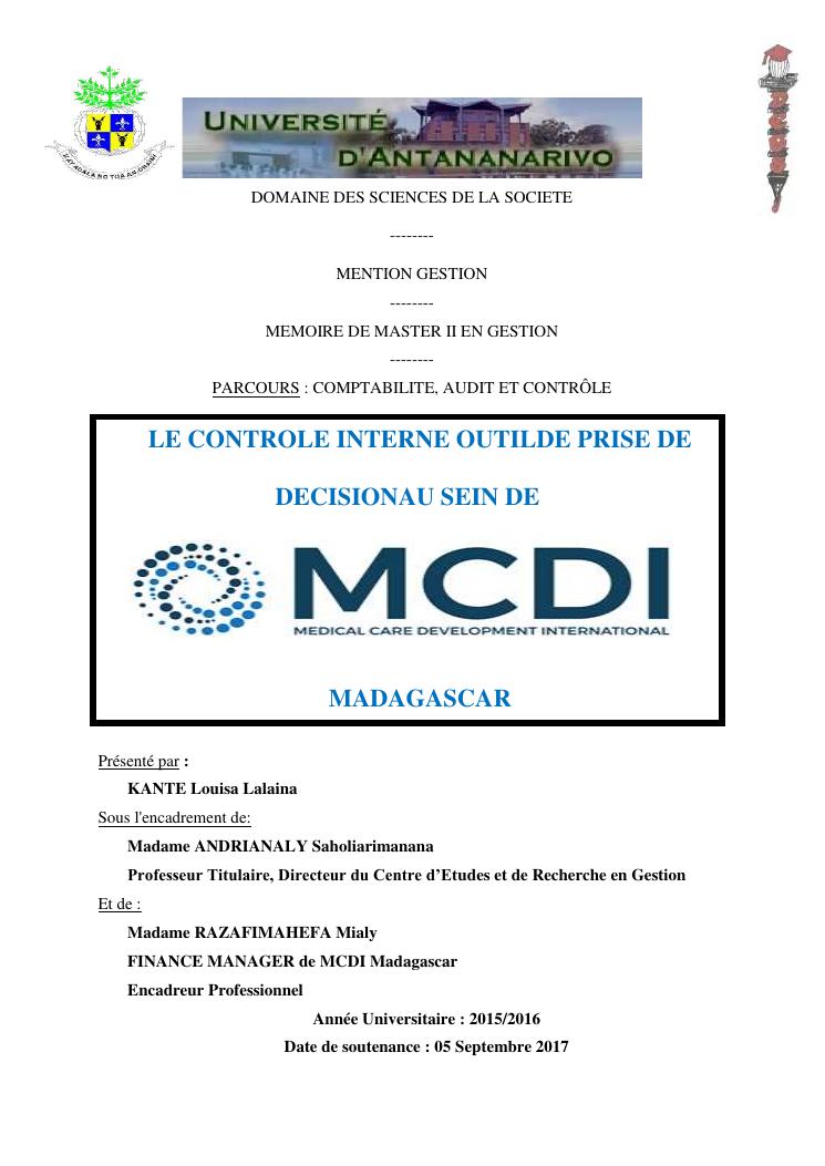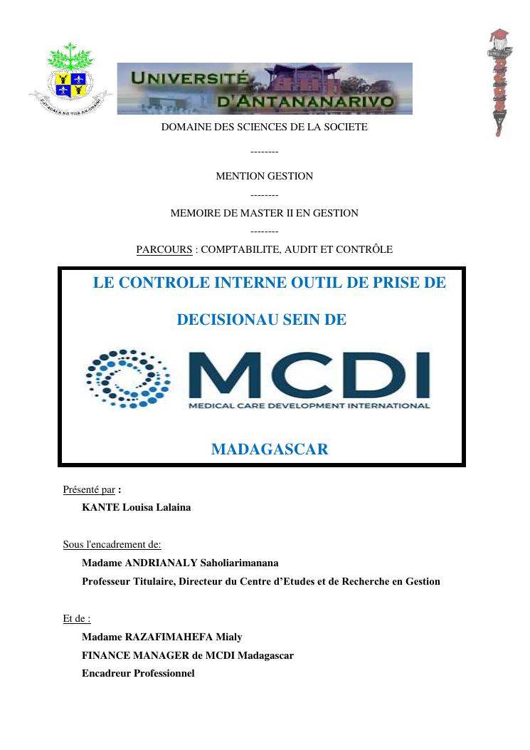 le controle interne outilde prise de decision au sein de medical care development international mcdi madagascar