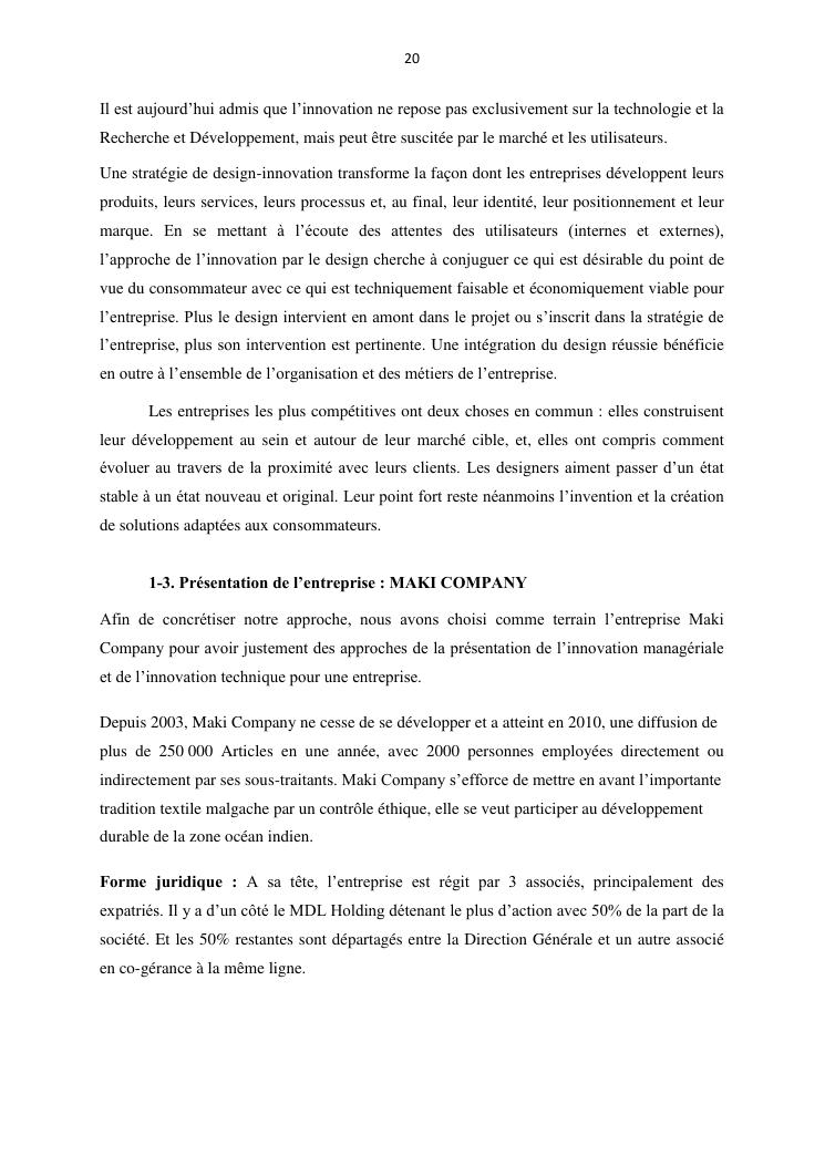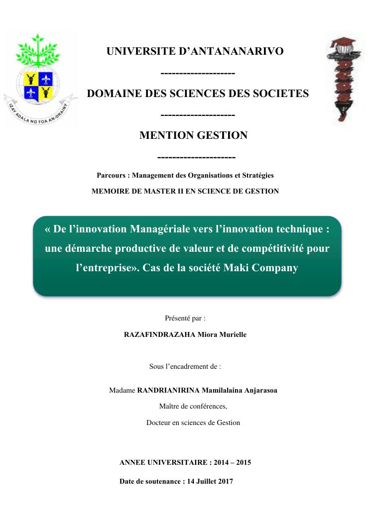 de l'innovation managériale vers l'innovation technique : une démarche productive de valeur et de compétitivité pour l'entreprise. cas de la société maki company