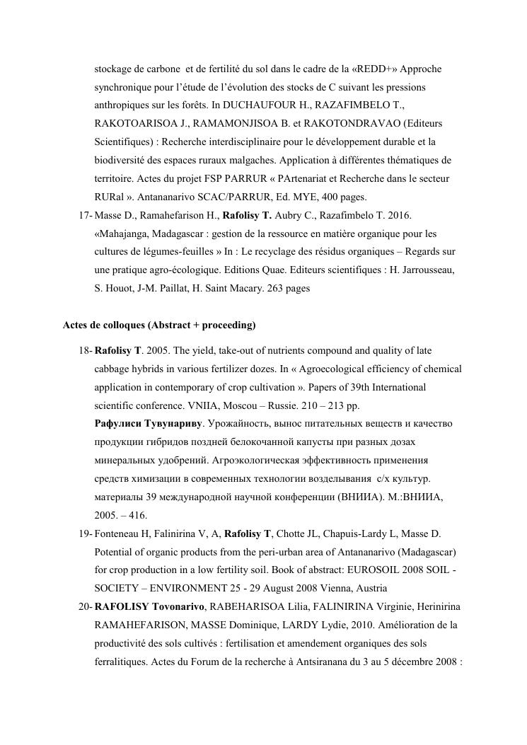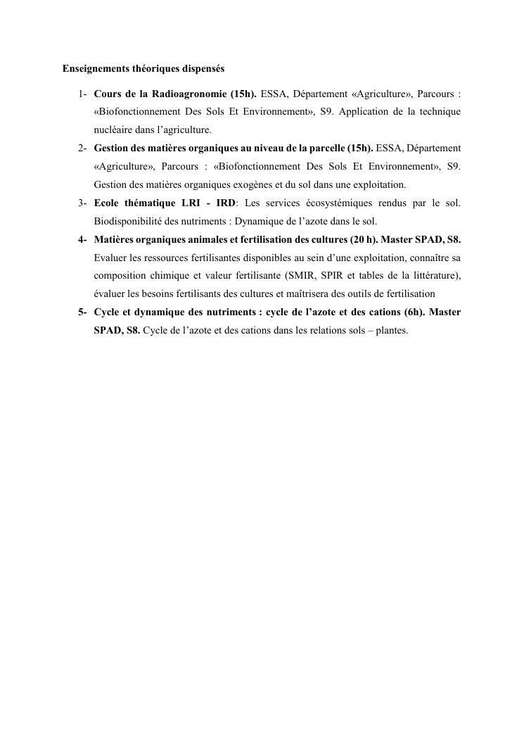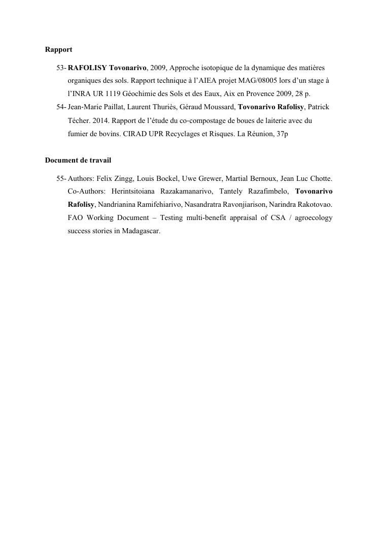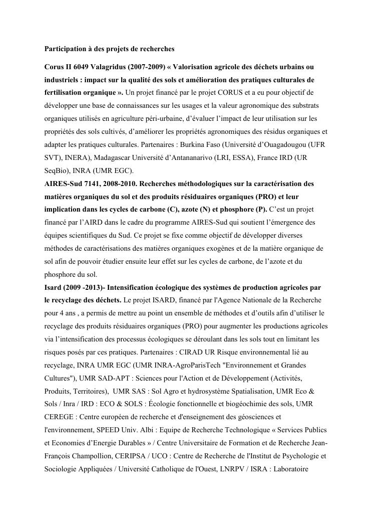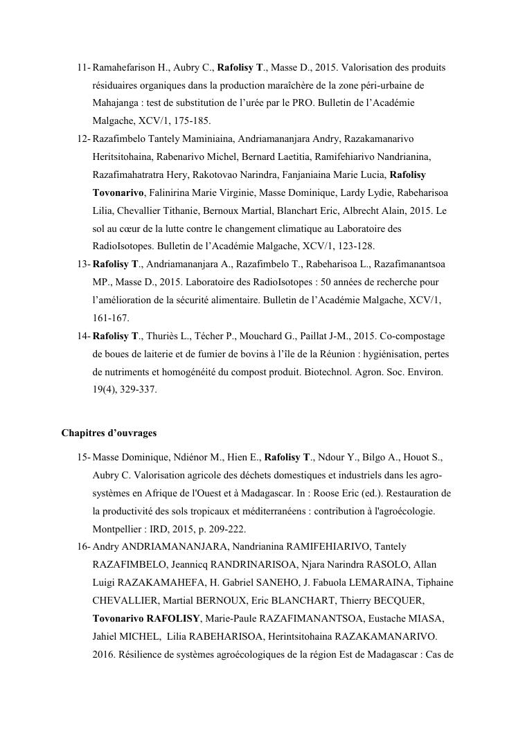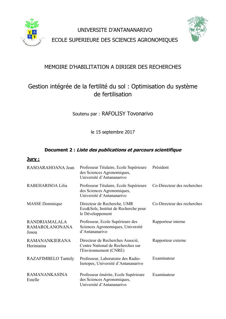 gestion intégrée de la fertilité du sol : optimisation du système de fertilisation. document 2 : liste des publications et parcours scientifique