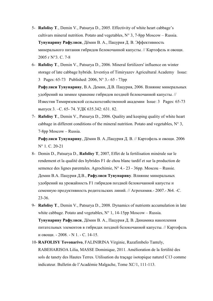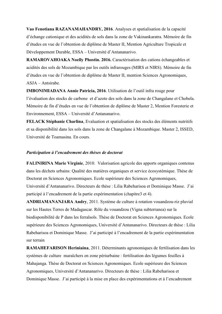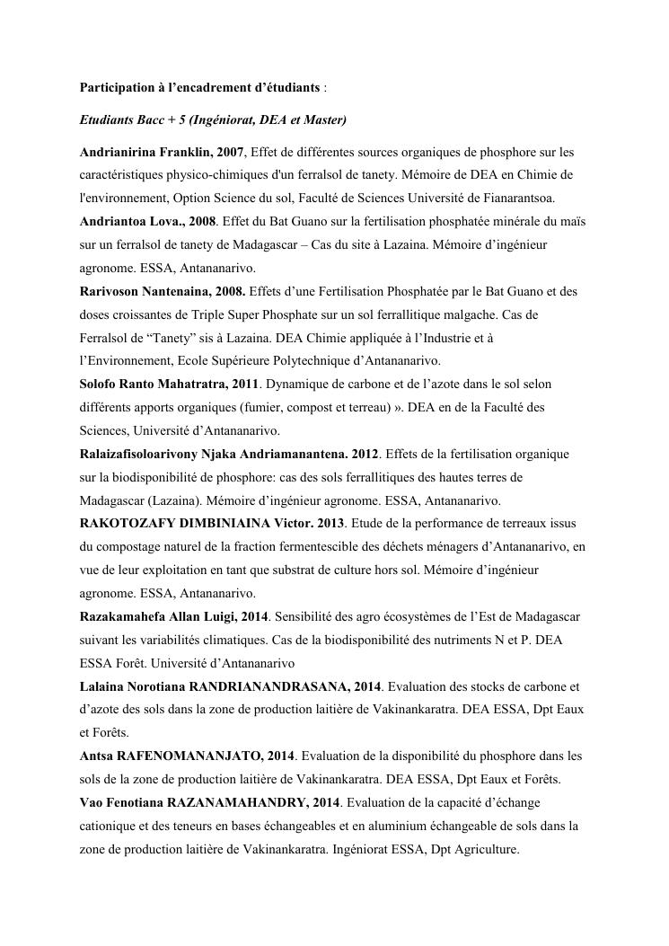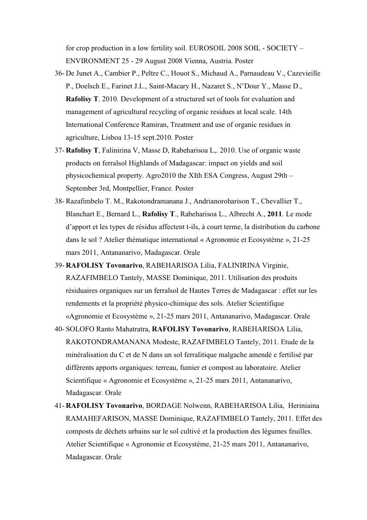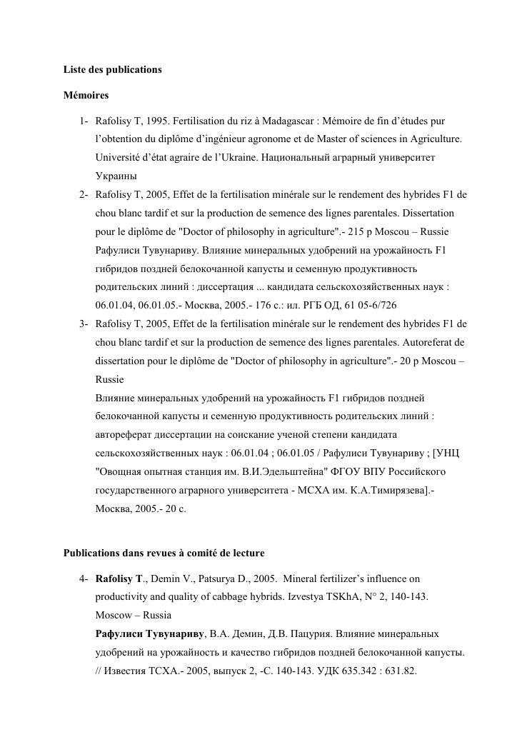 gestion intégrée de la fertilité du sol : optimisation du système de fertilisation. document 2 : liste des publications et parcours scientifique