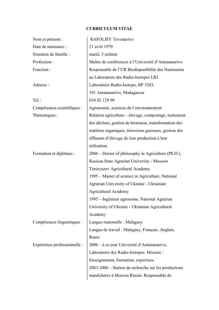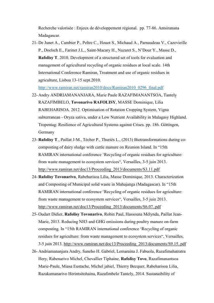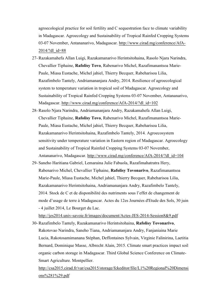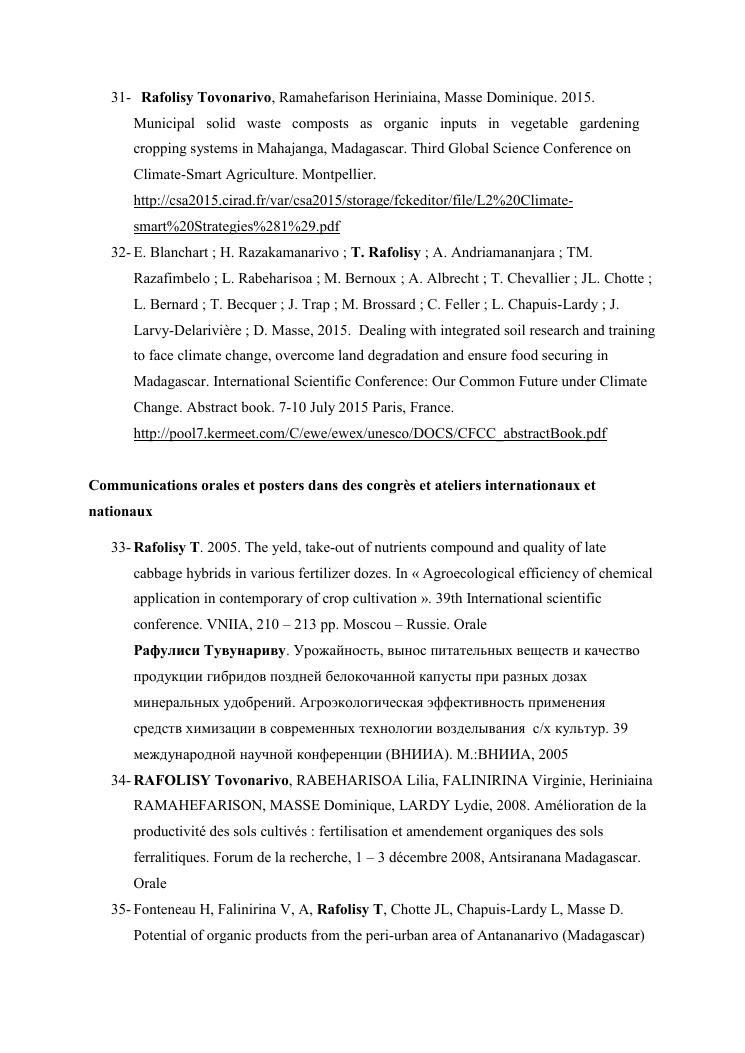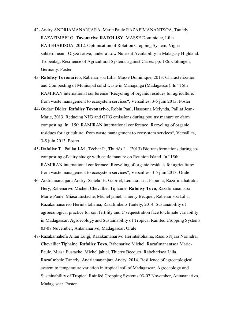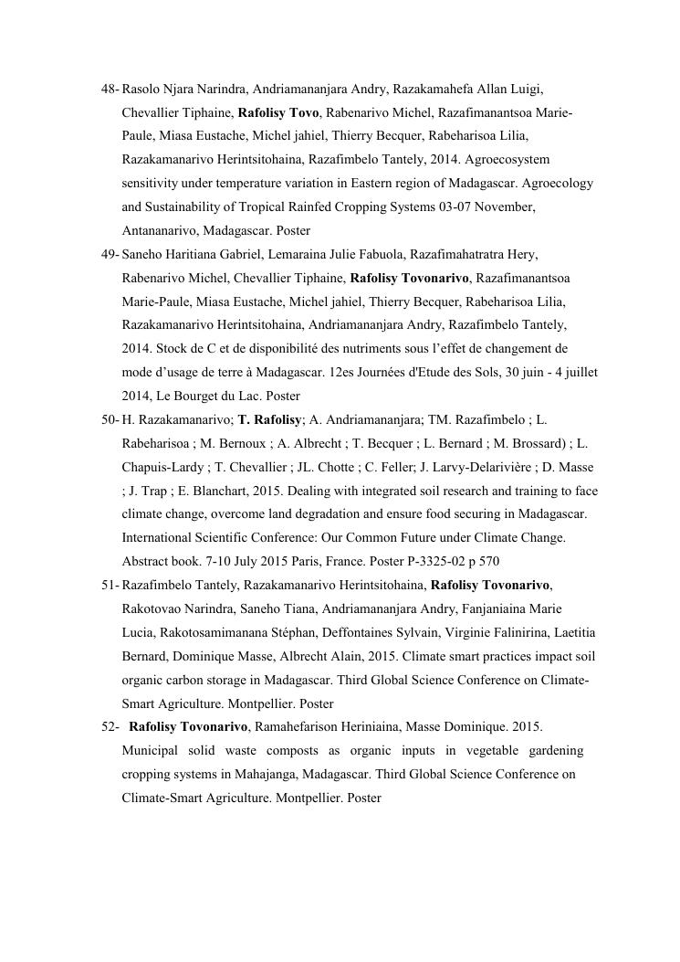 gestion intégrée de la fertilité du sol : optimisation du système de fertilisation. document 2 : liste des publications et parcours scientifique