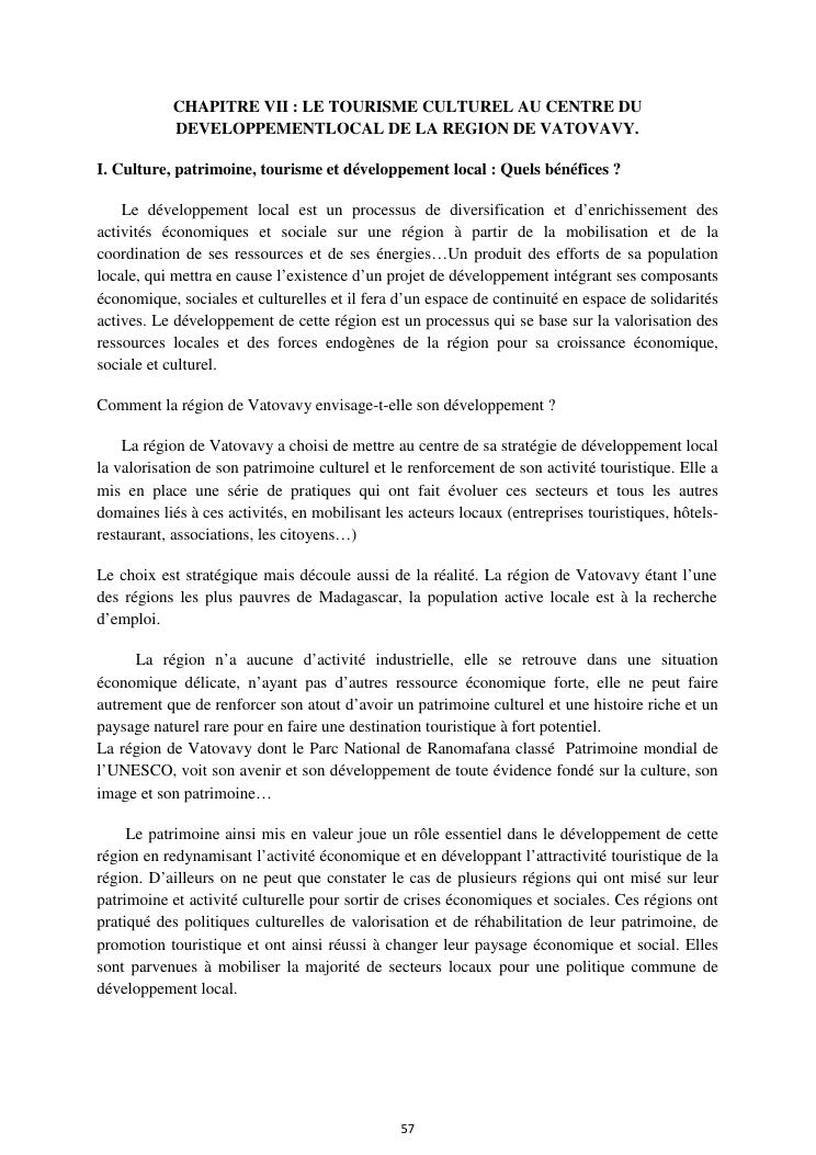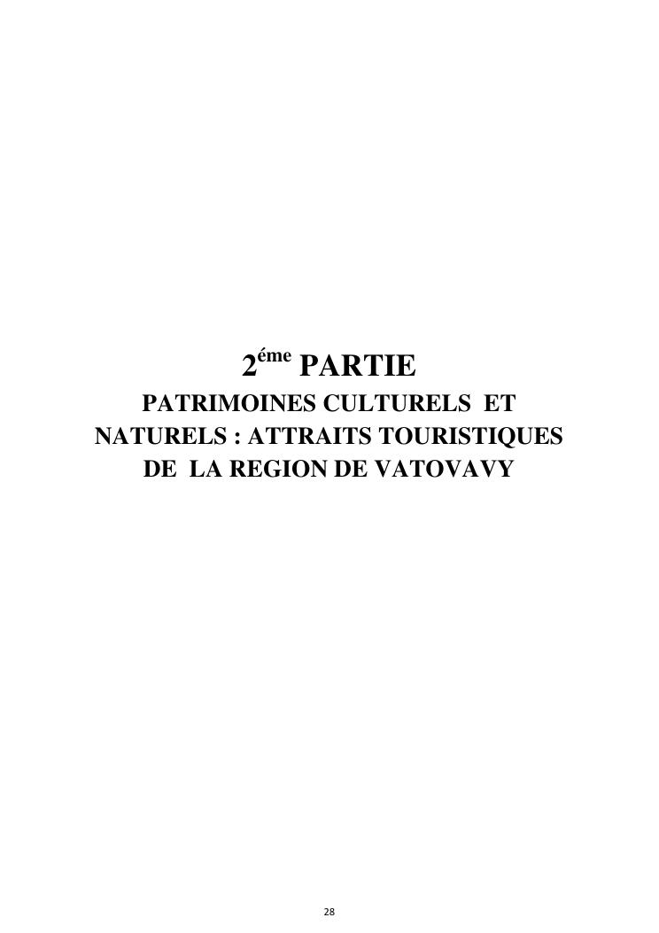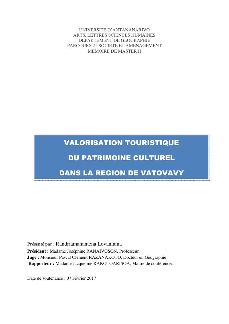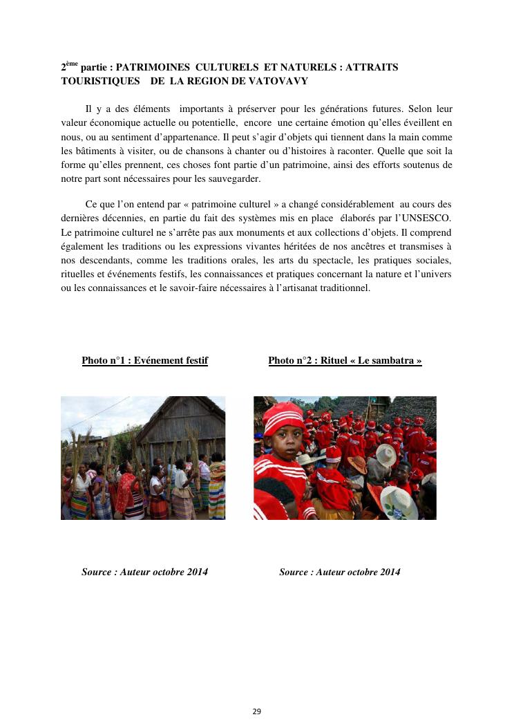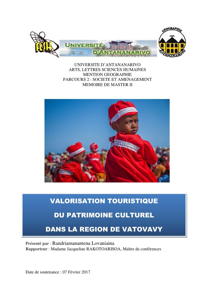 valorisation touristique du patrimoine culturel dans la region de vatovavy
