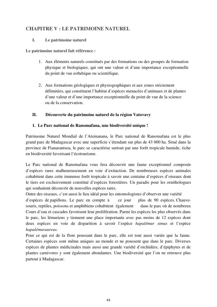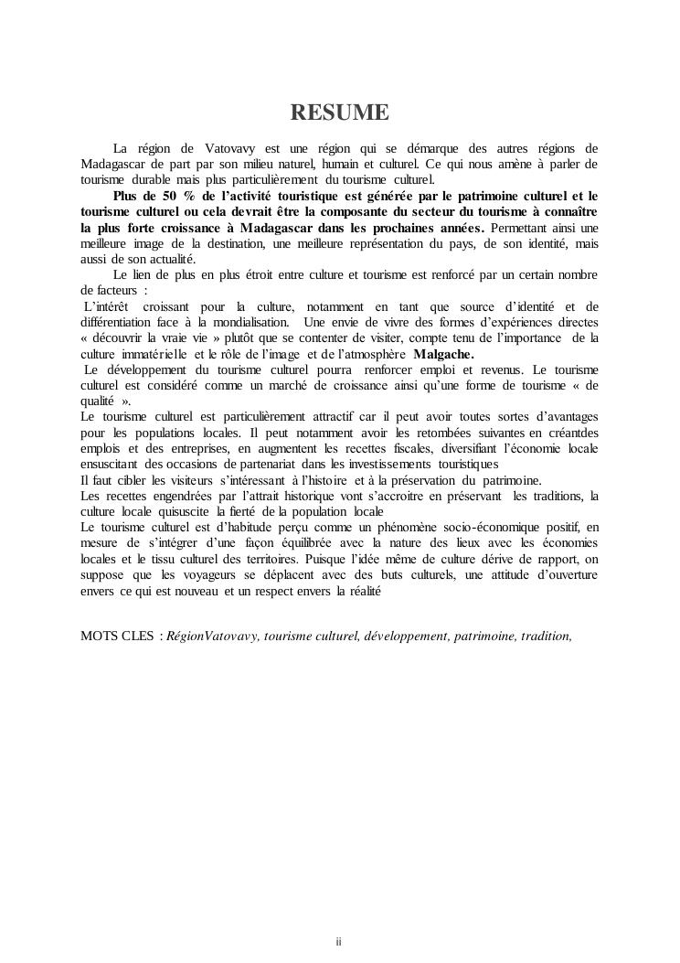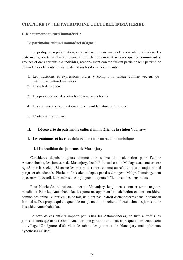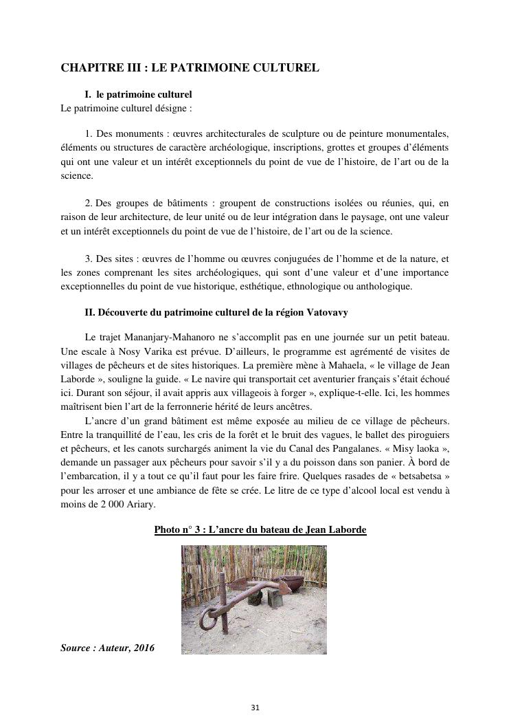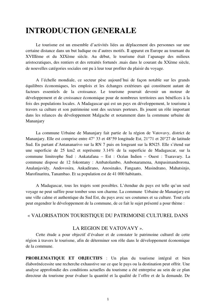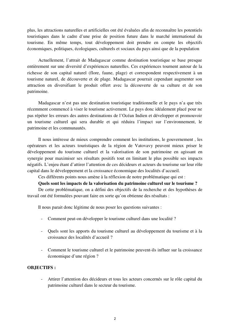 valorisation touristique du patrimoine culturel dans la region de vatovavy