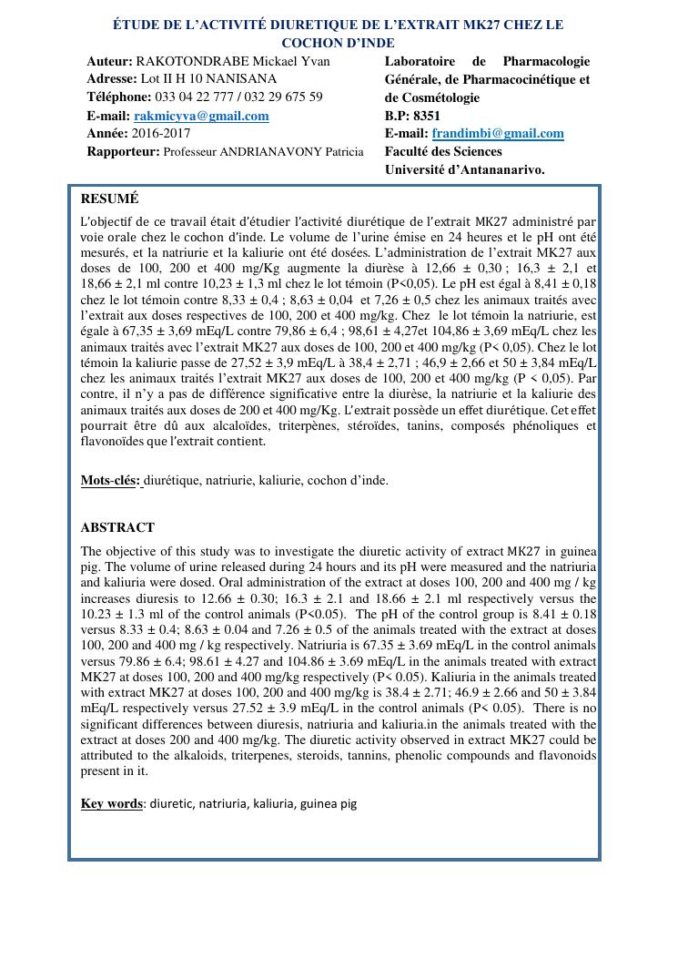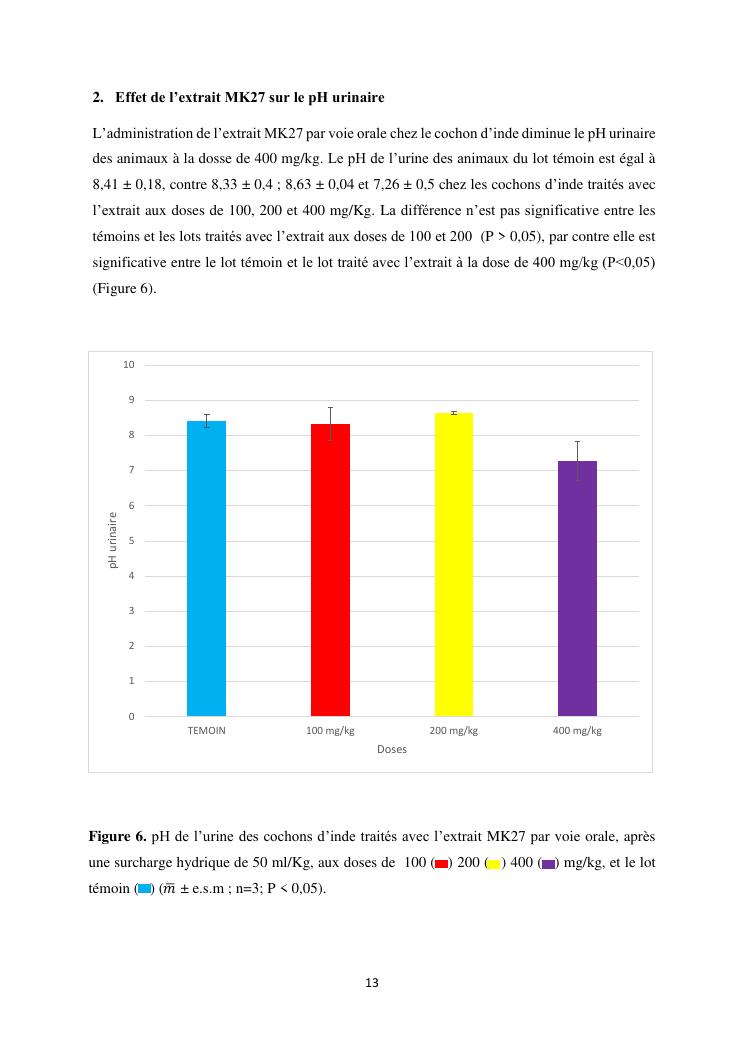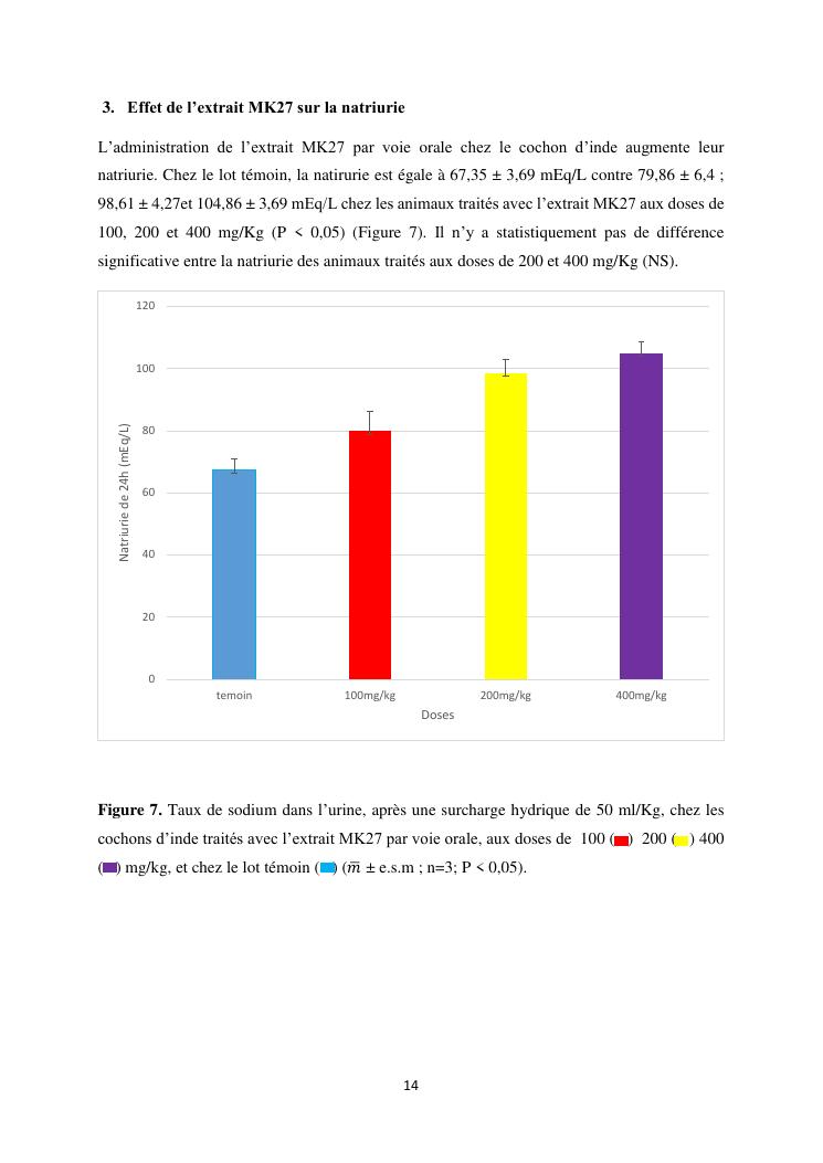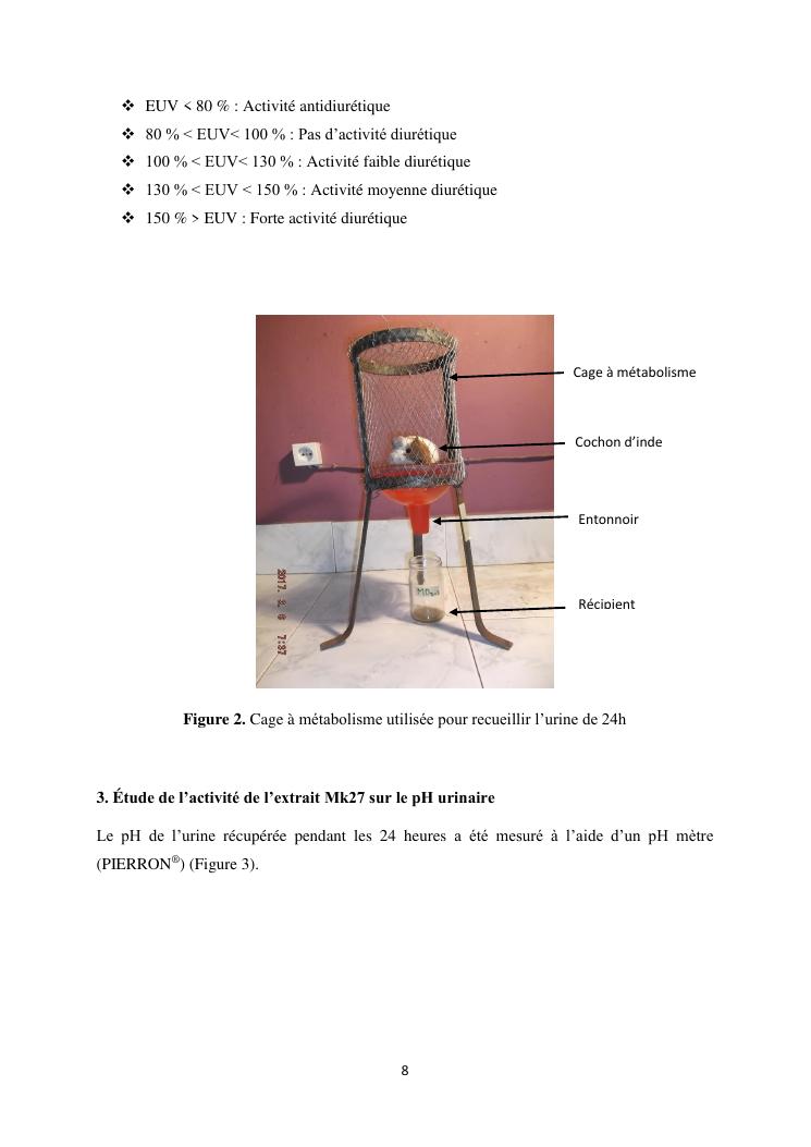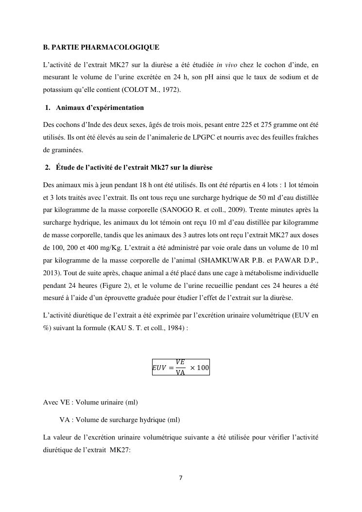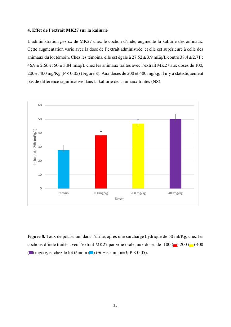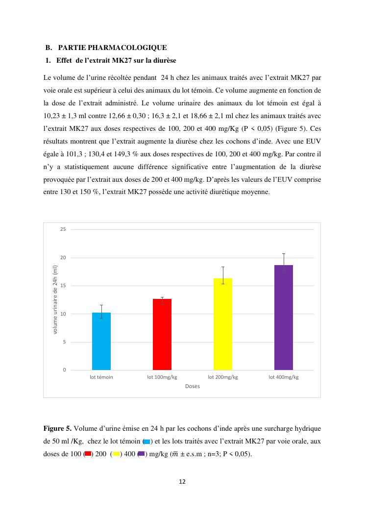 étude de l'activité diurétique de l'extrait mk27 chez le cochon d'inde