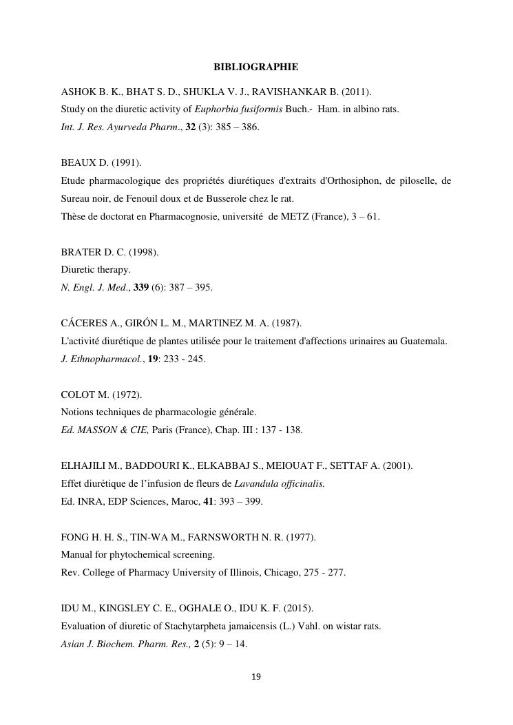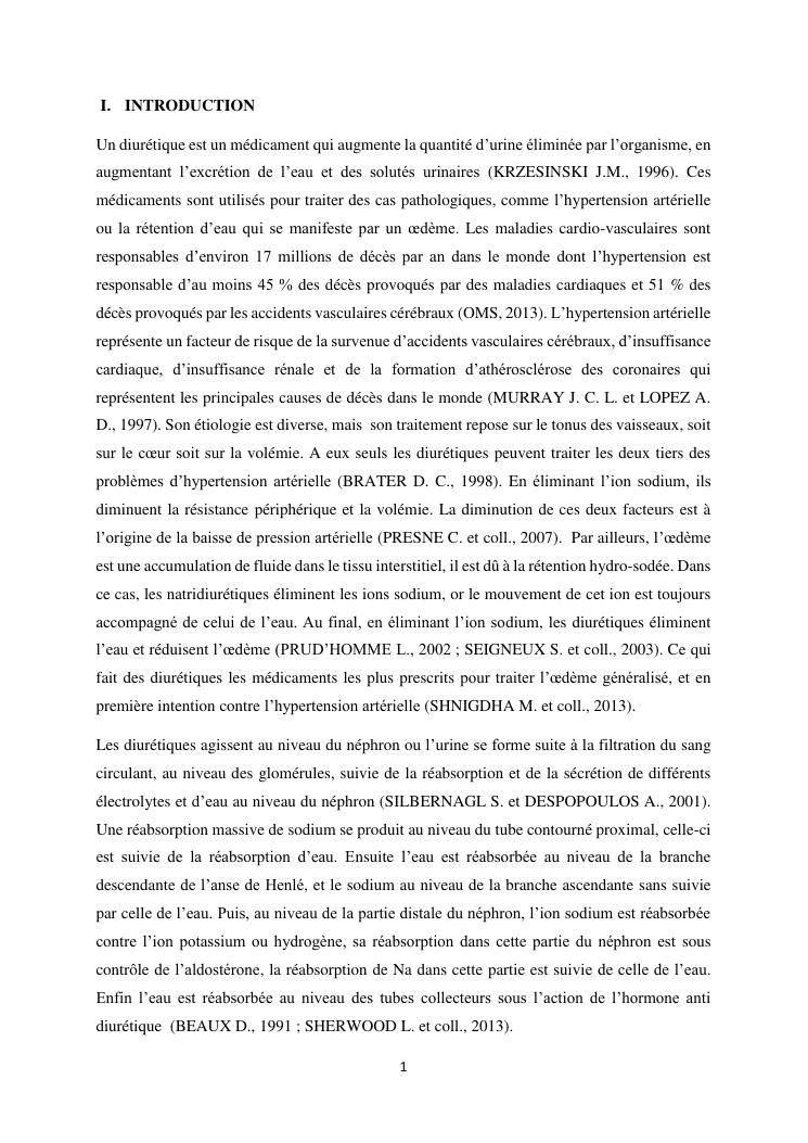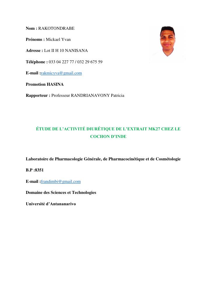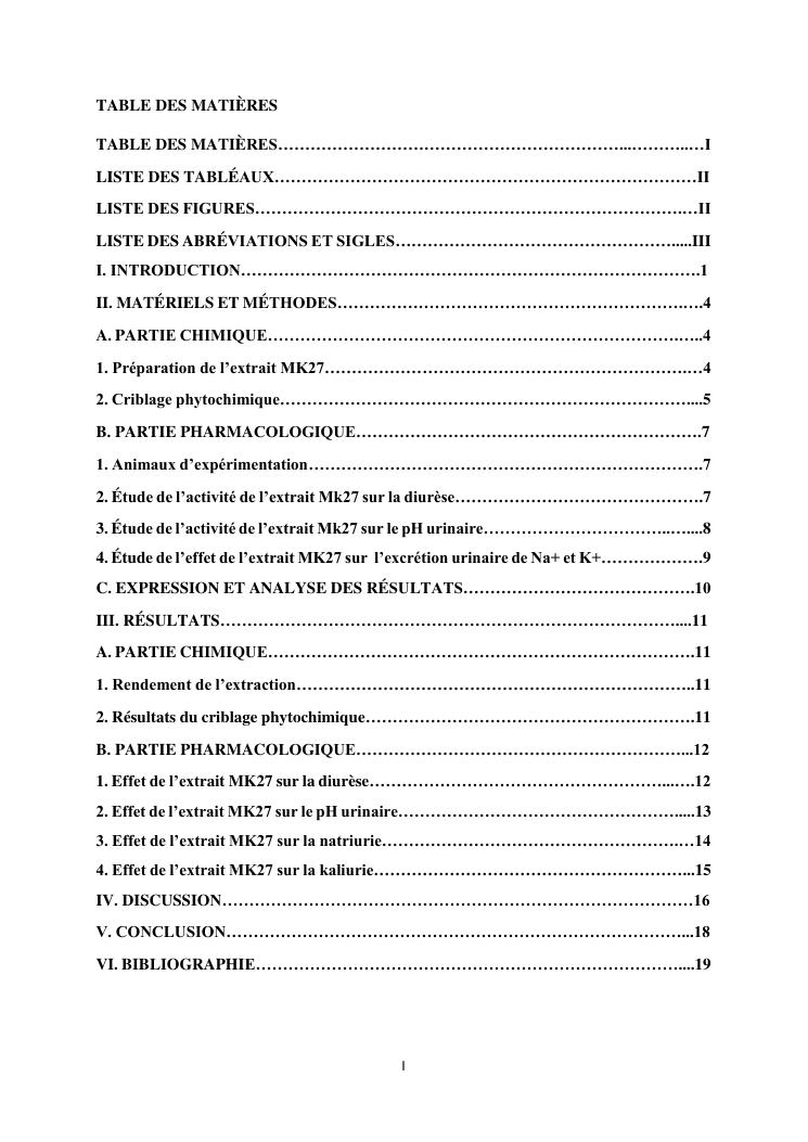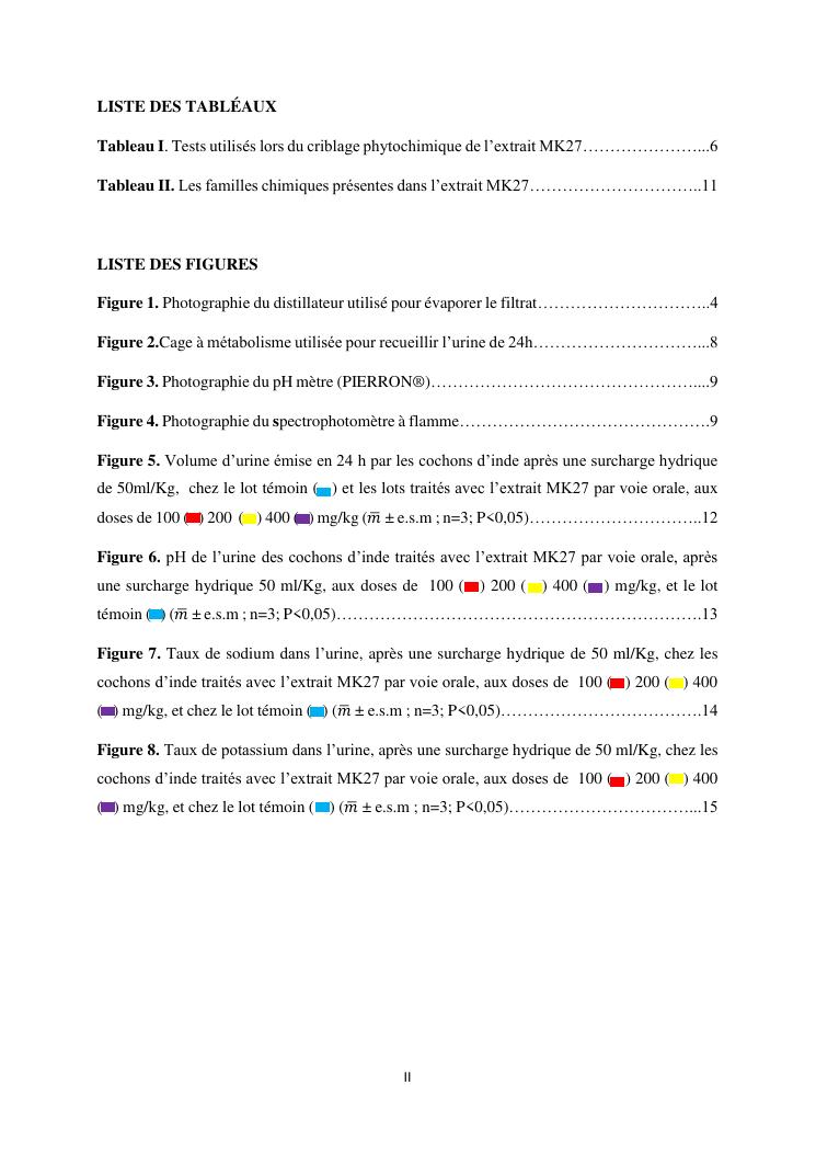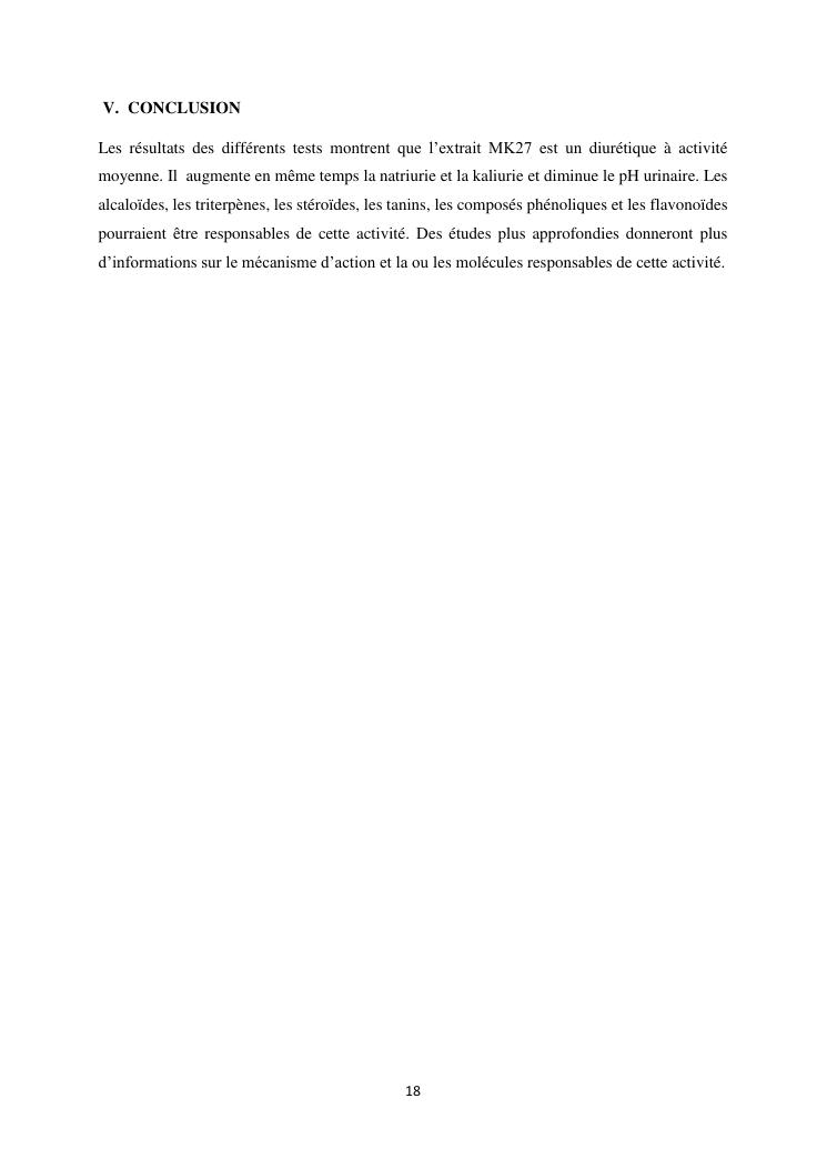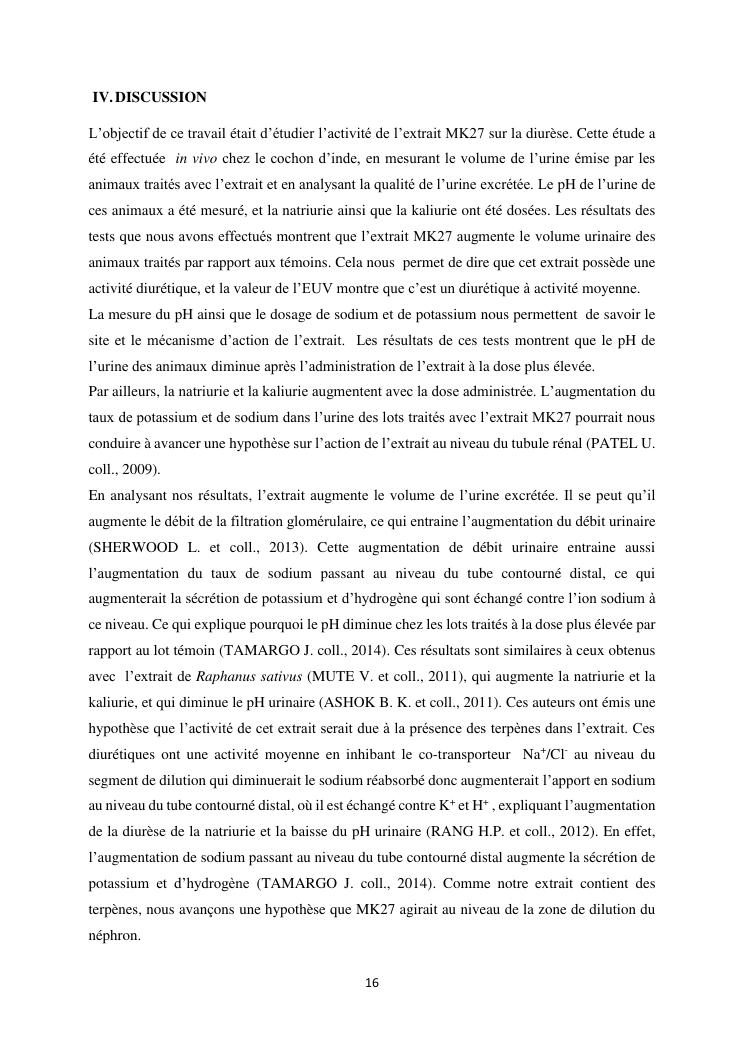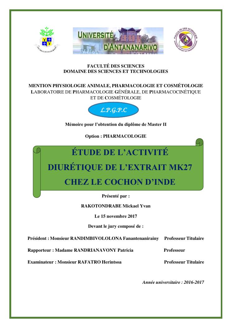 étude de l'activité diurétique de l'extrait mk27 chez le cochon d'inde