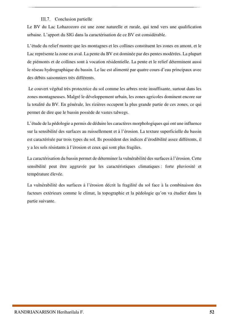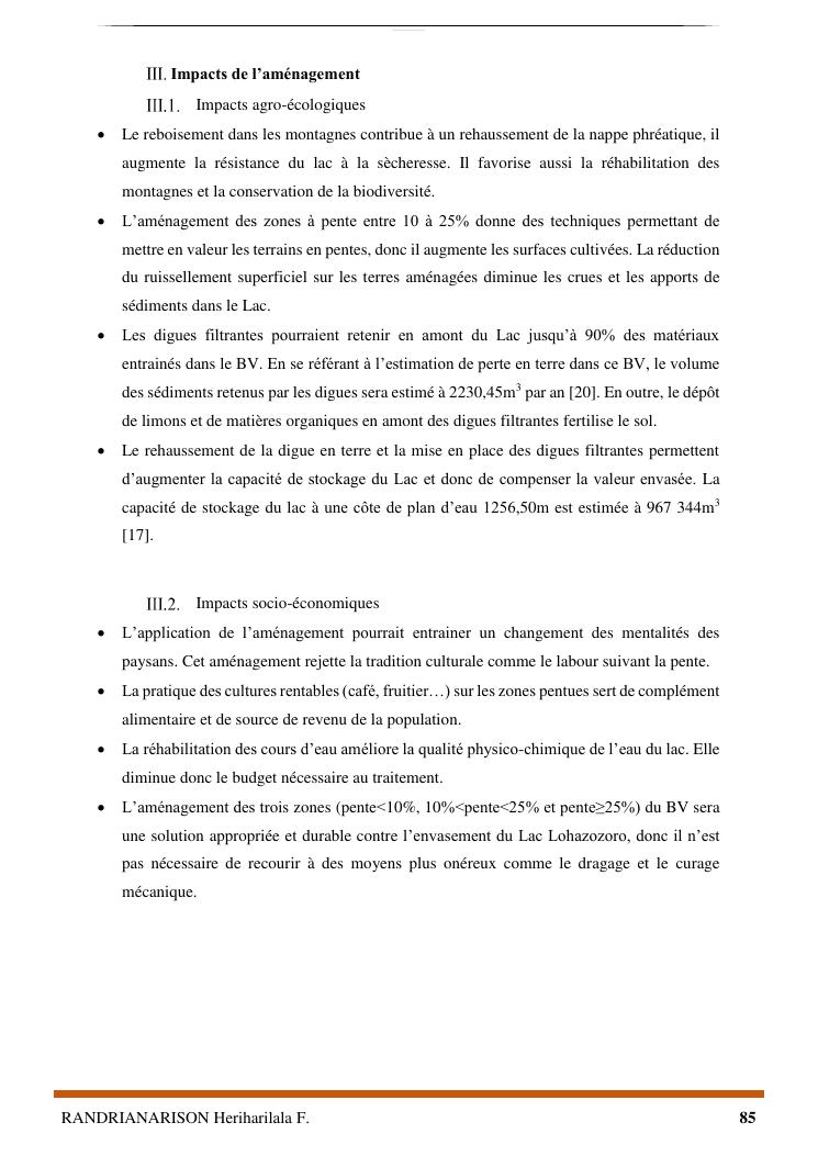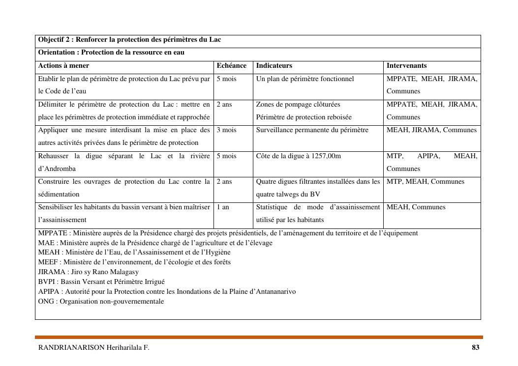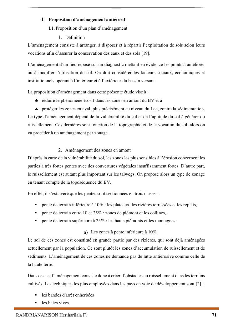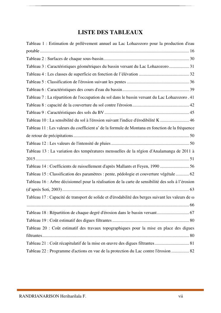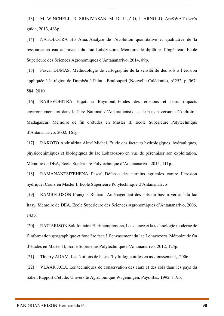 proposition de programme d'actions en vue de la protection du lac lohazozoro de vontovorona contre l'érosion